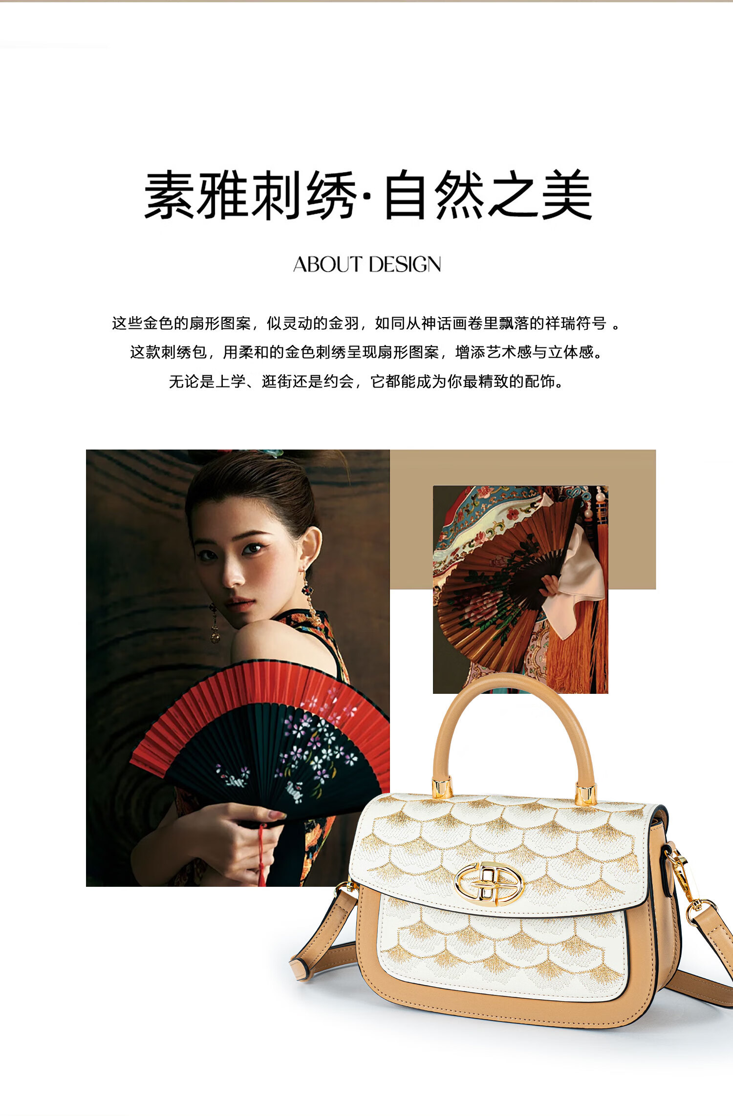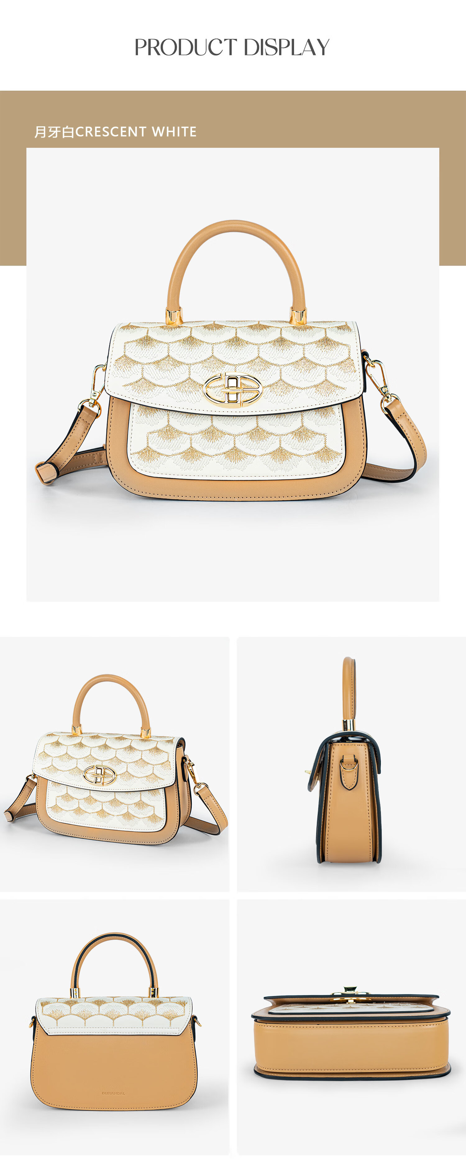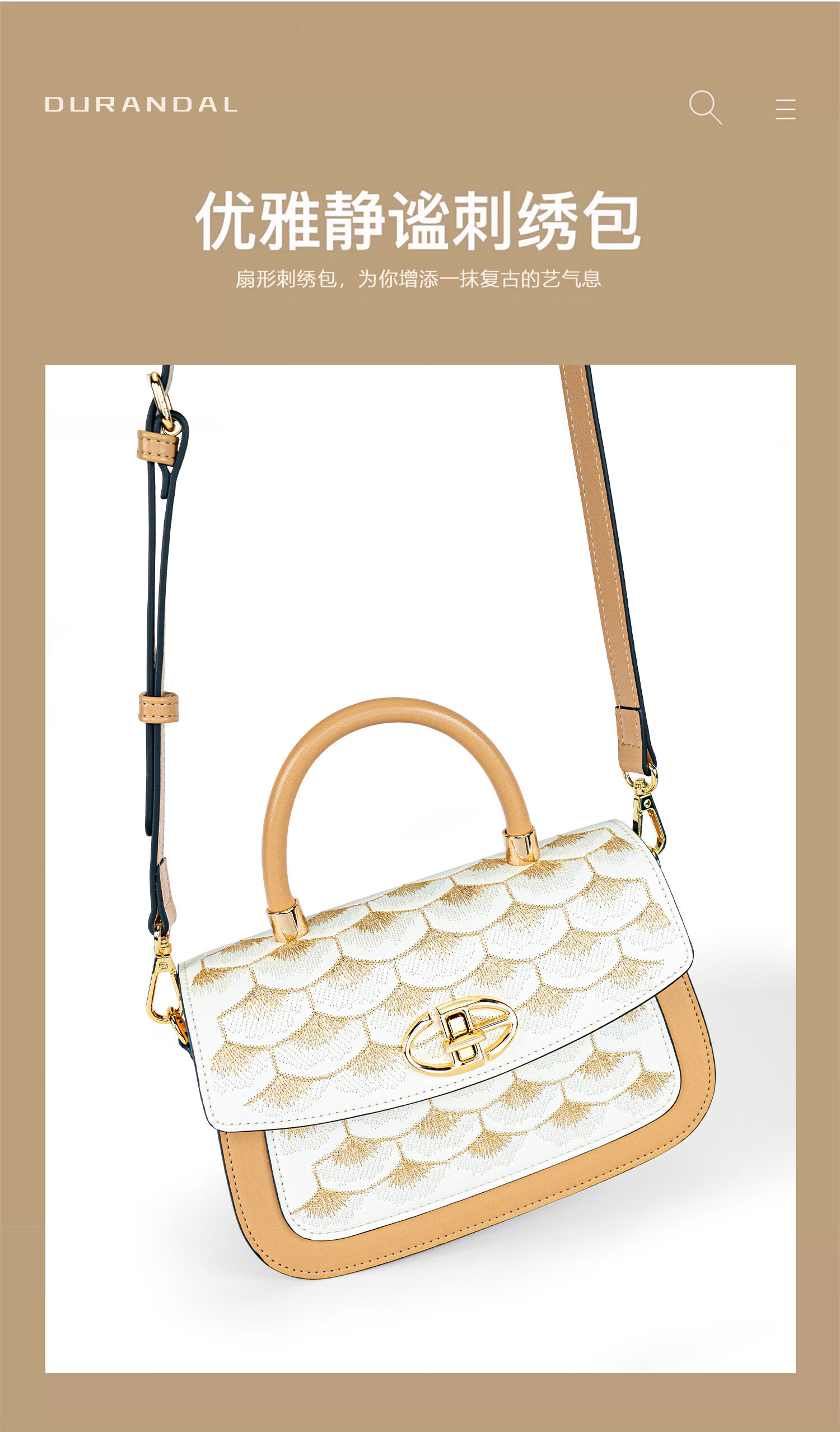 迪兰达尔【元旦好礼】轻奢中式龙鳞纹刺绣女包,原创单肩斜挎包 白色