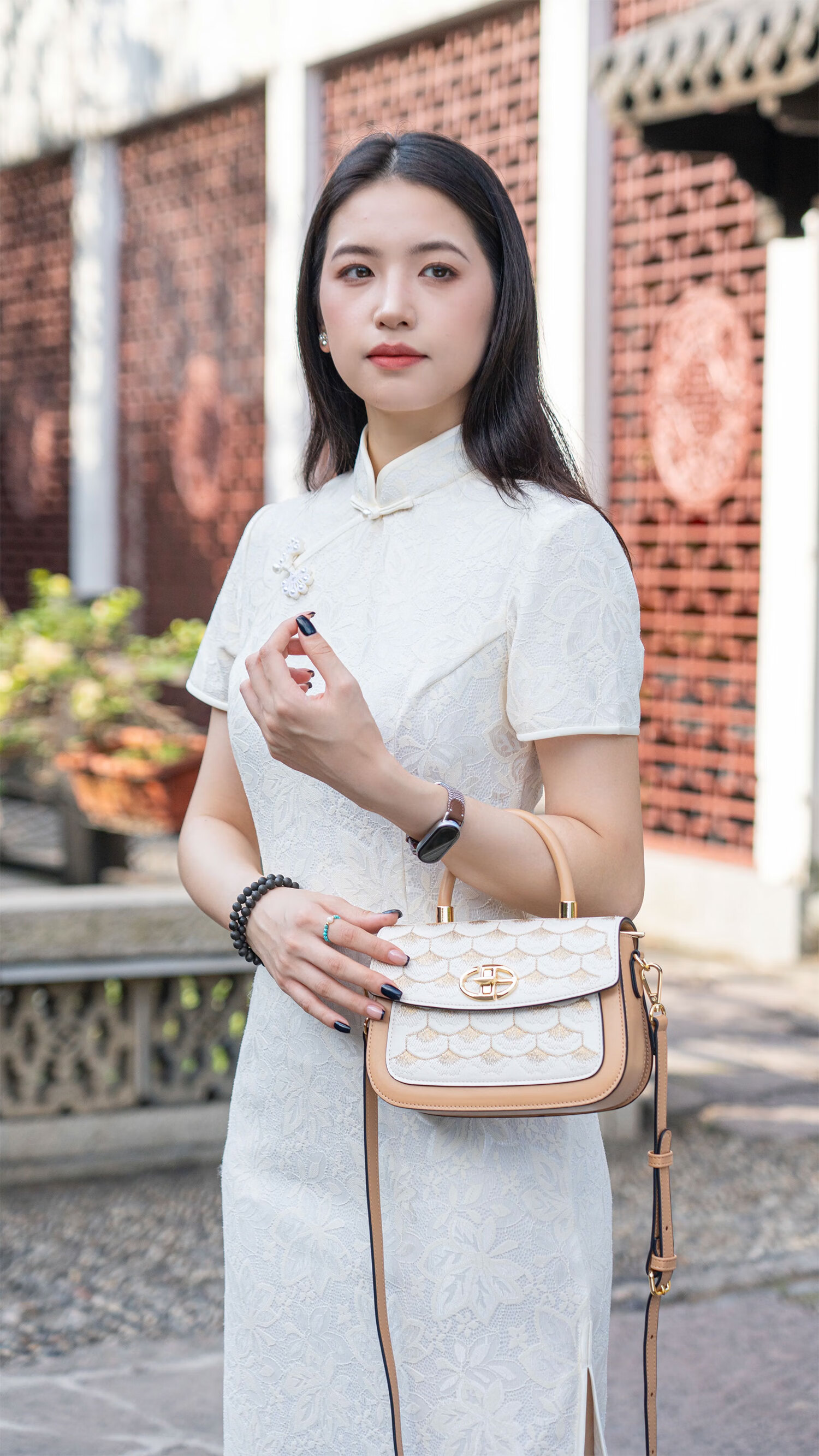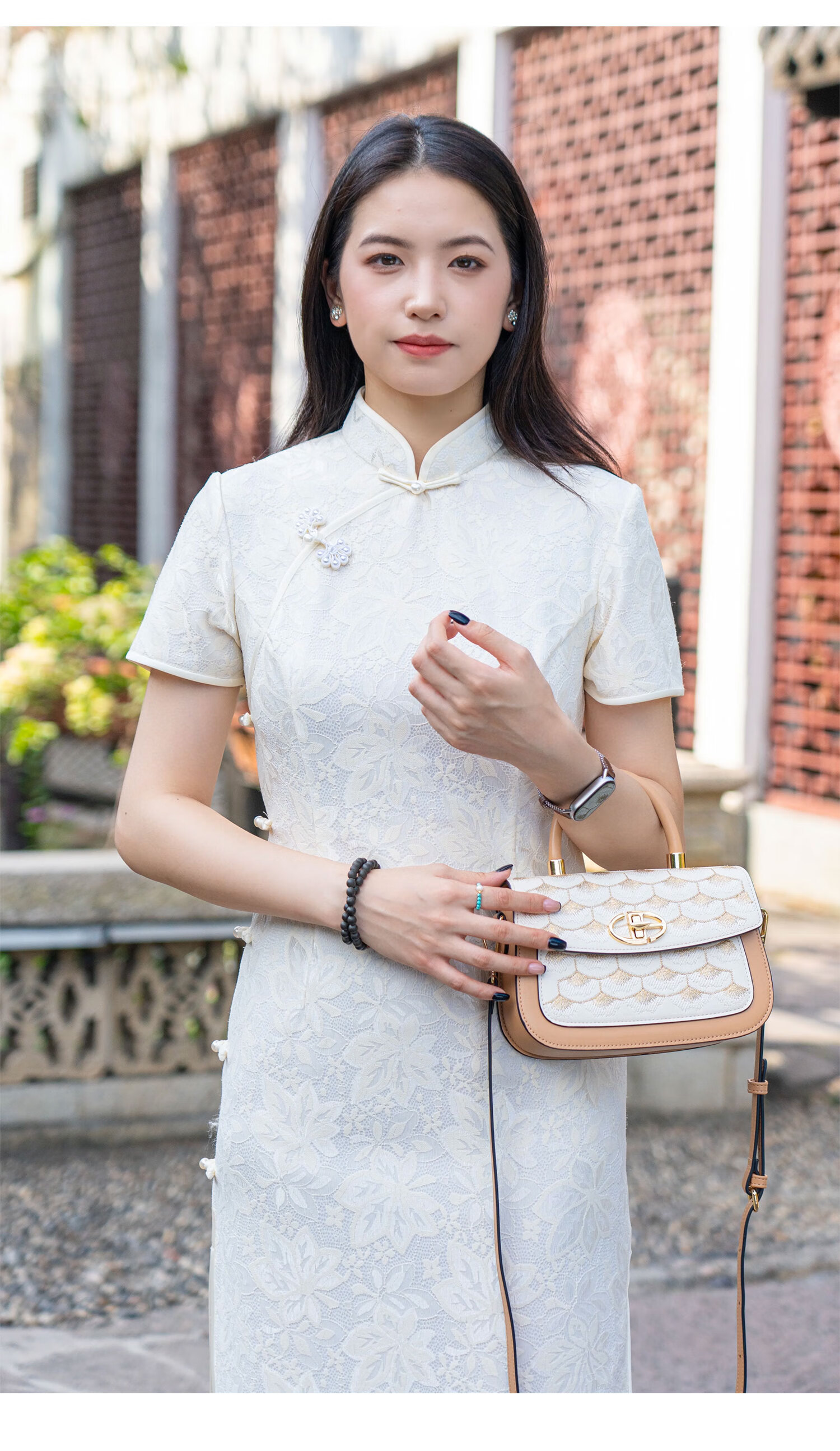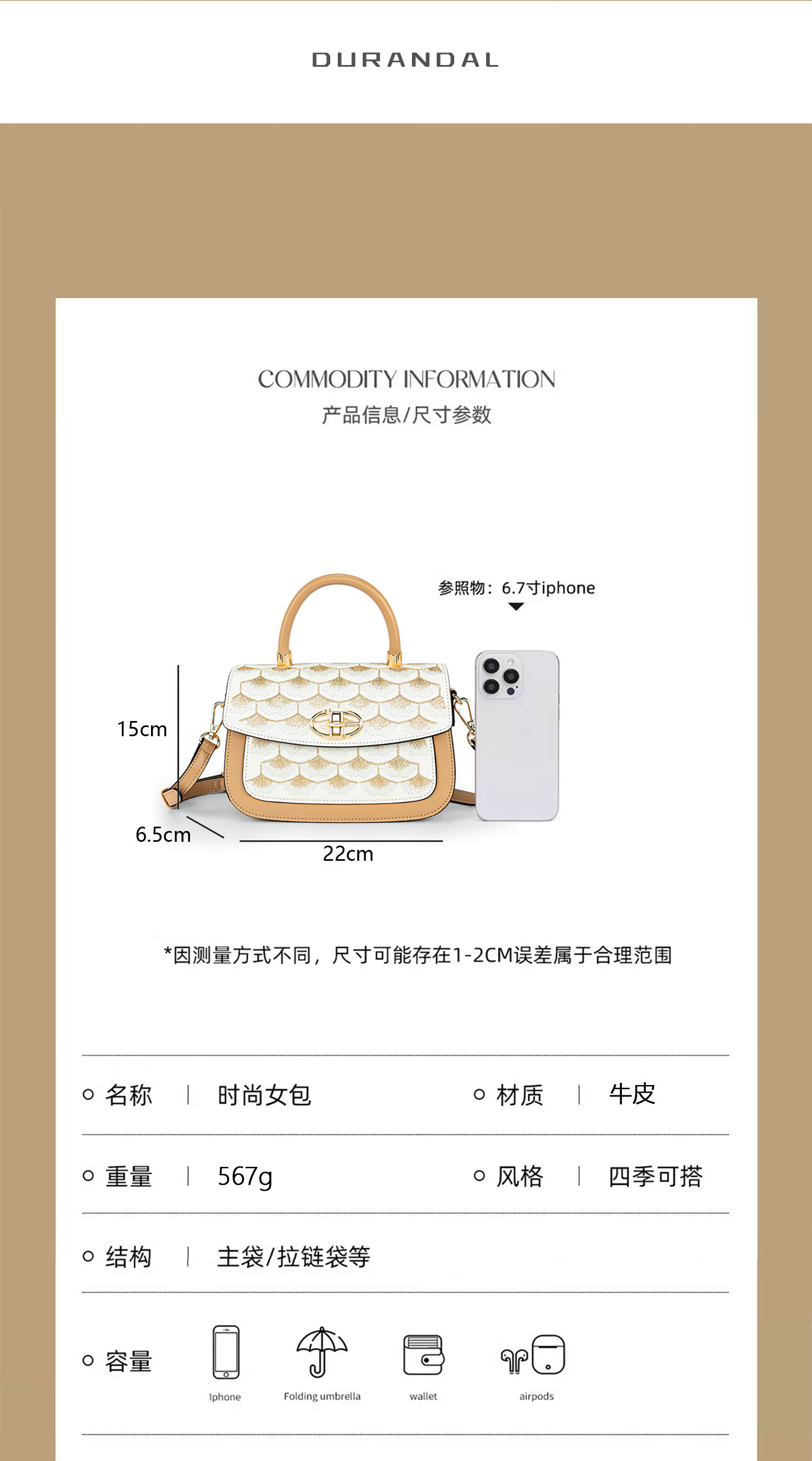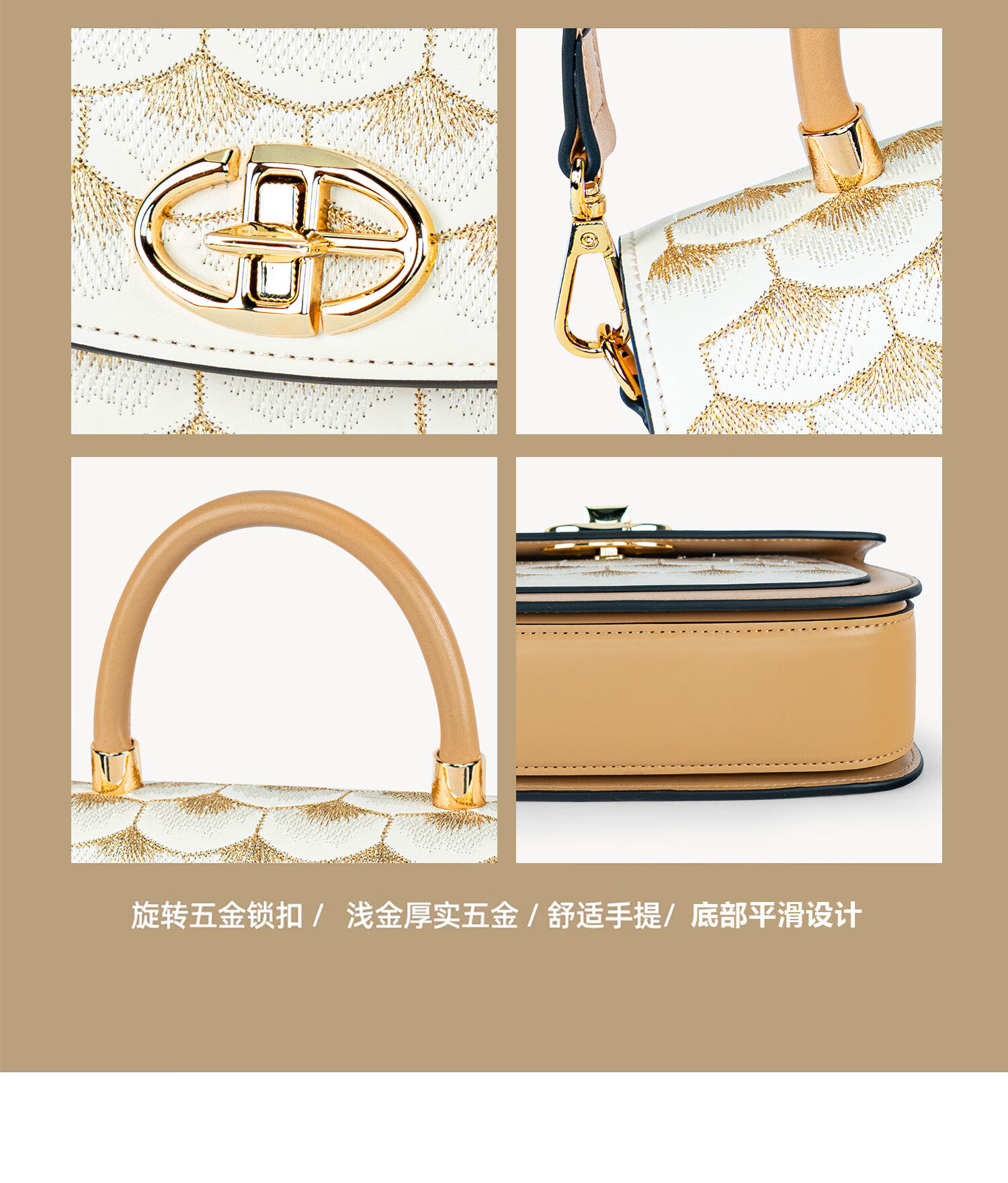 迪兰达尔【元旦好礼】轻奢中式龙鳞纹刺绣女包,原创单肩斜挎包 白色