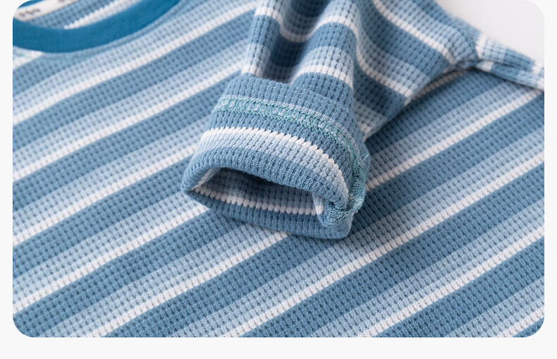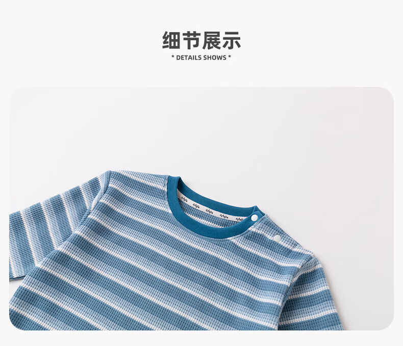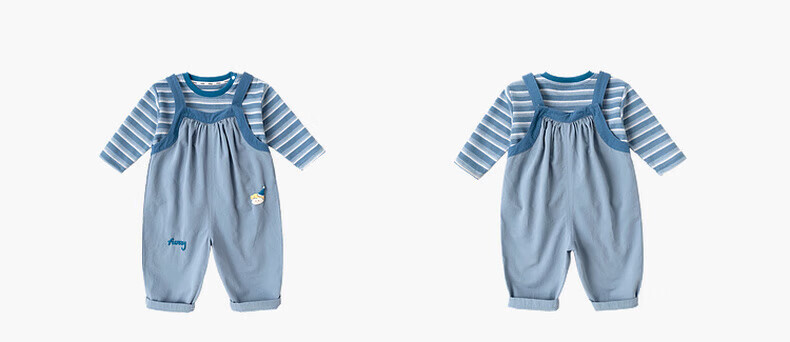 嘟嘟家儿童背带裤套装 2025春秋宝宝条纹长袖T恤 男女童裤子两件套 蓝色 110