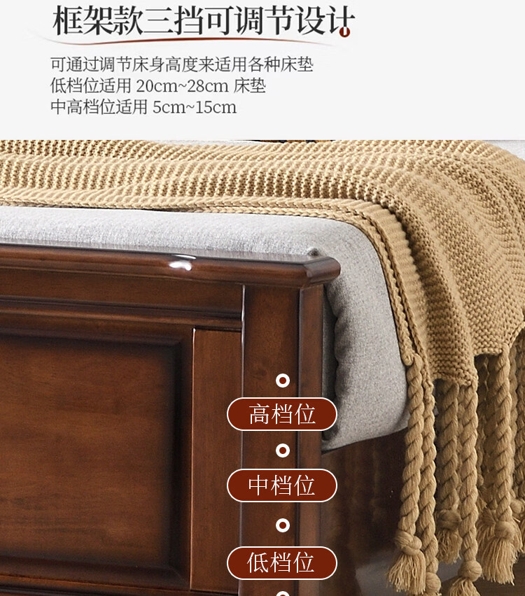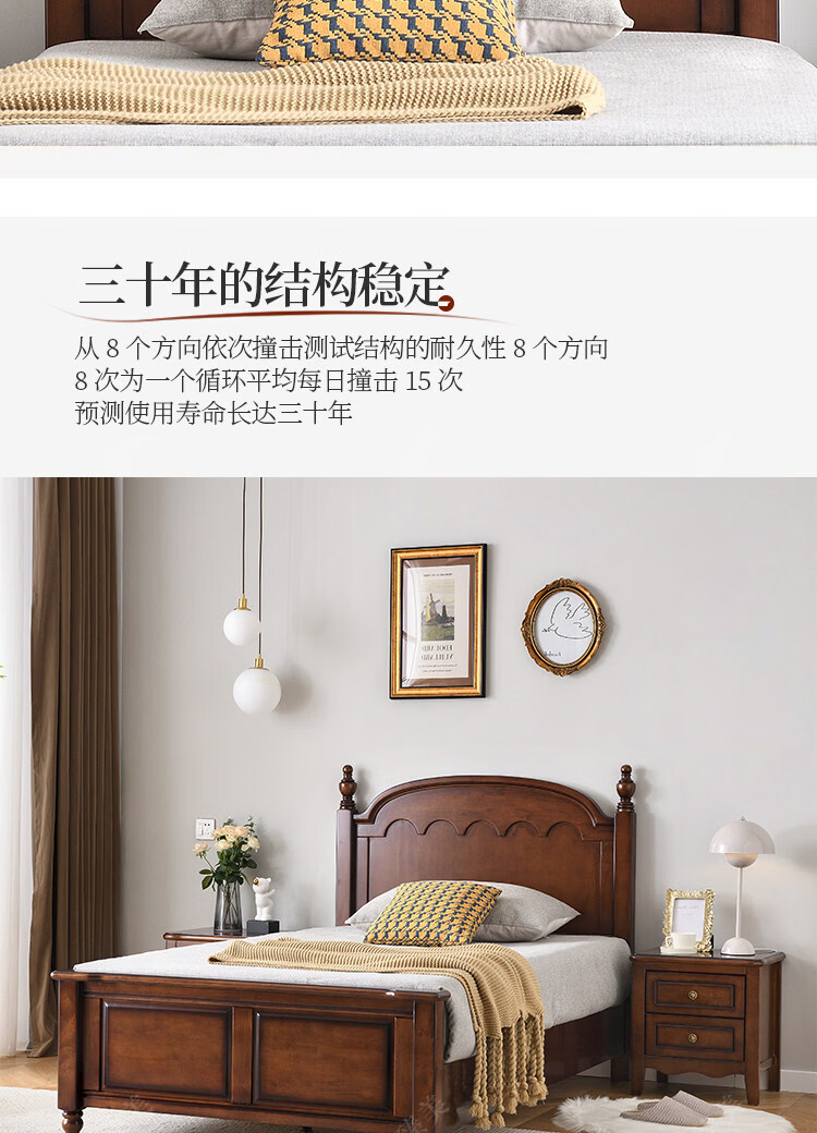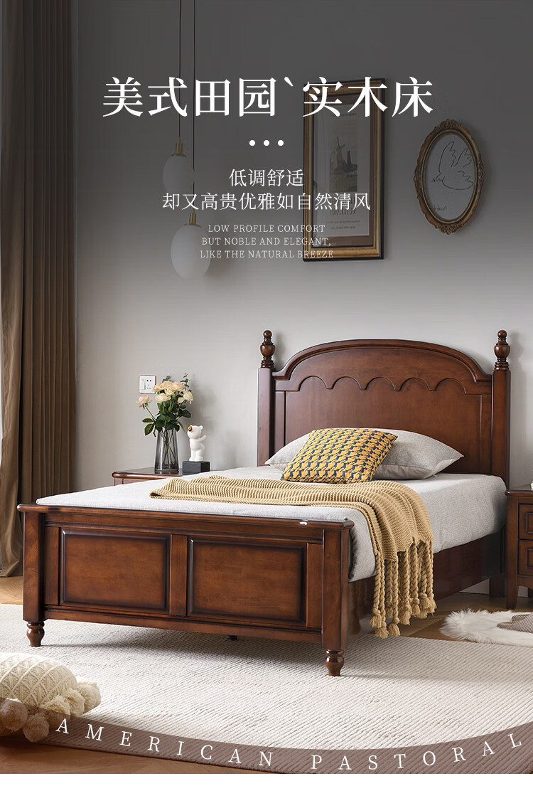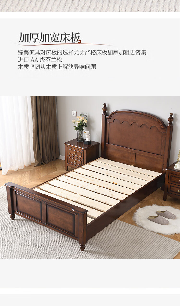 全友(QUANU)【迷瞪清仓货盘】法式实木床主卧室单双人床家用床头软包高脚床 软包床|单床 1.8米