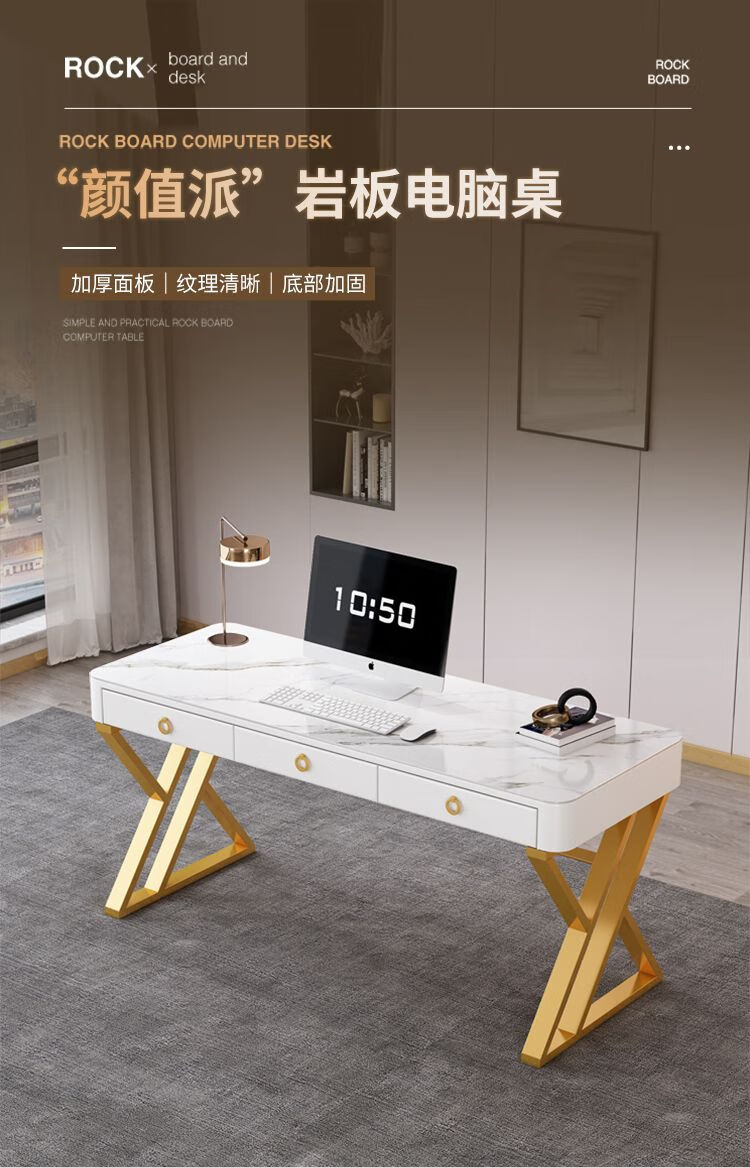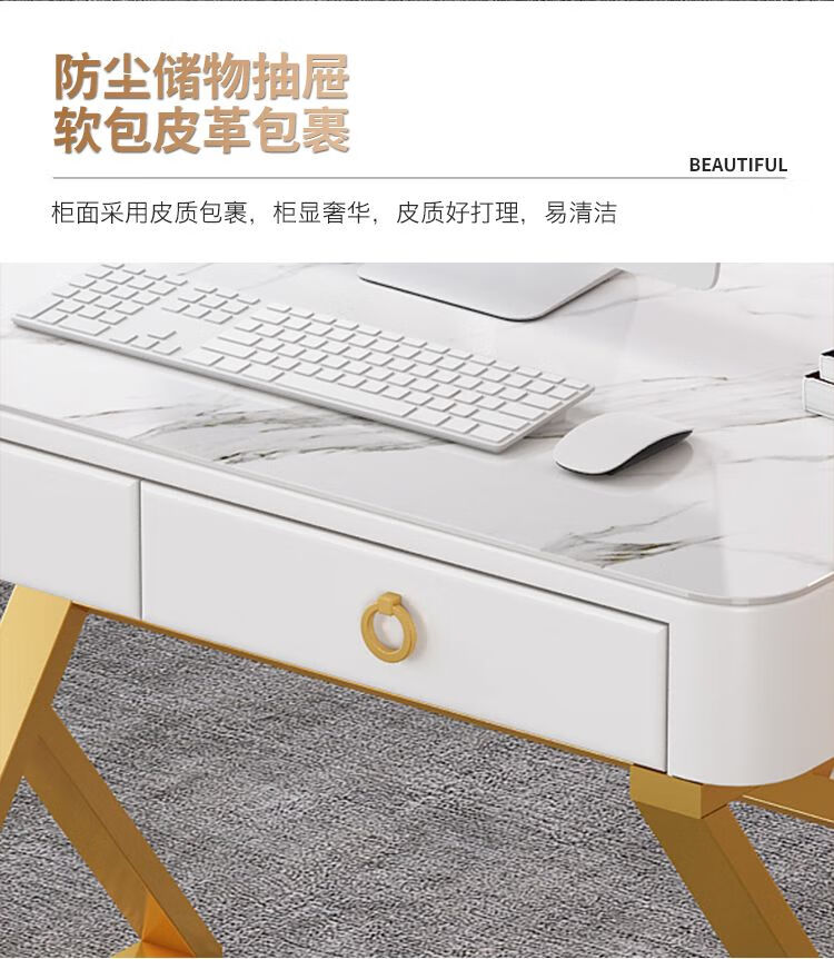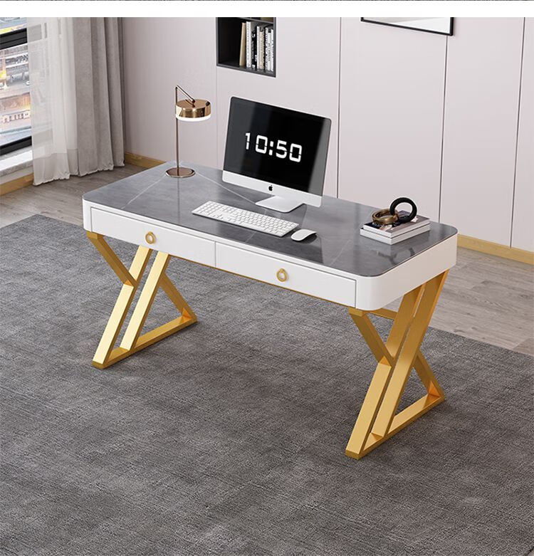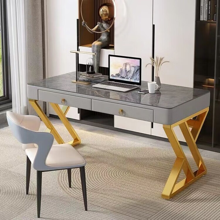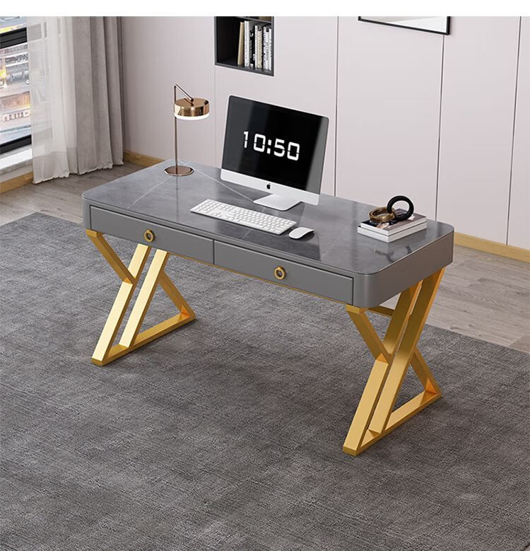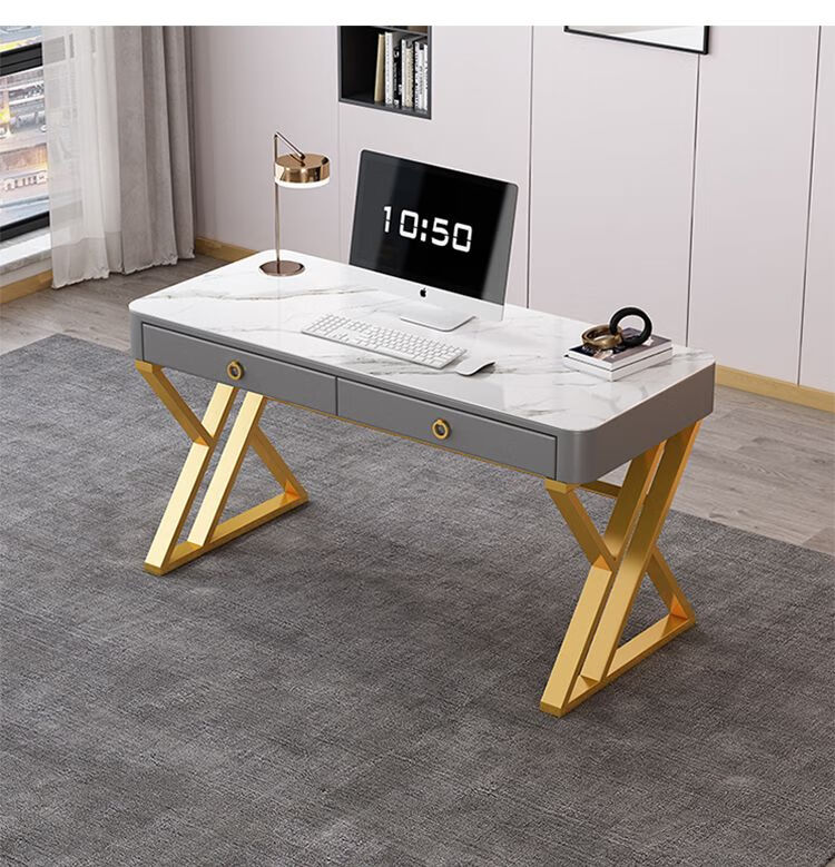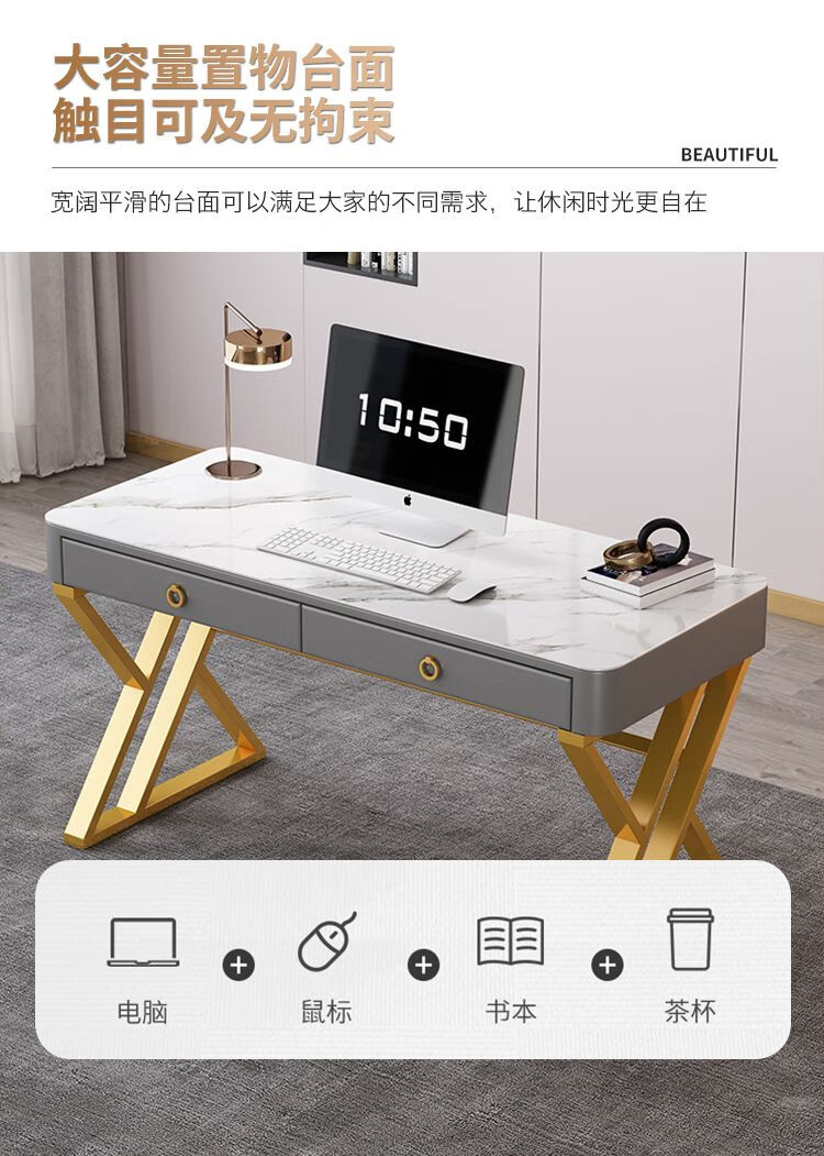 欣慕雅岩板书桌轻奢现代意式电脑台式桌家用简易办公桌卧室工作台学习桌 【金架灰柜白岩板】100cm 岩板电脑桌