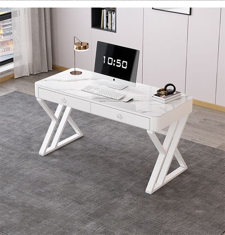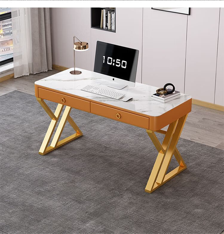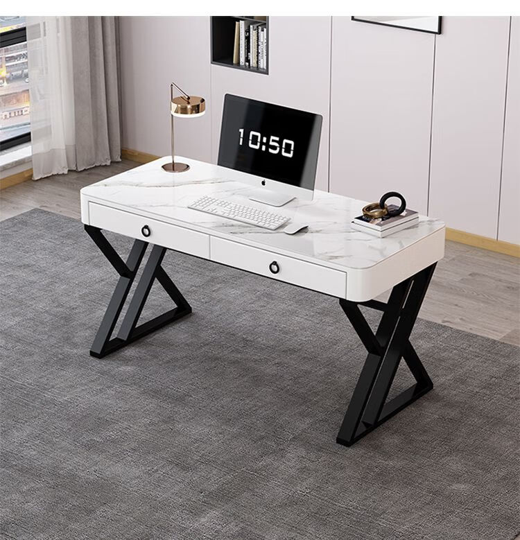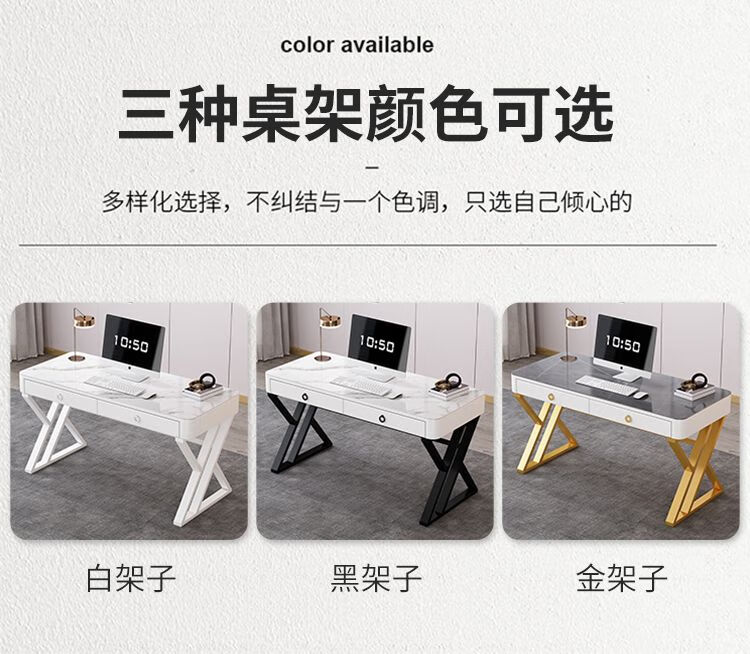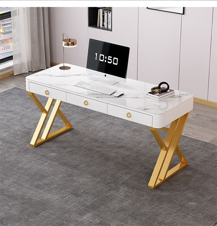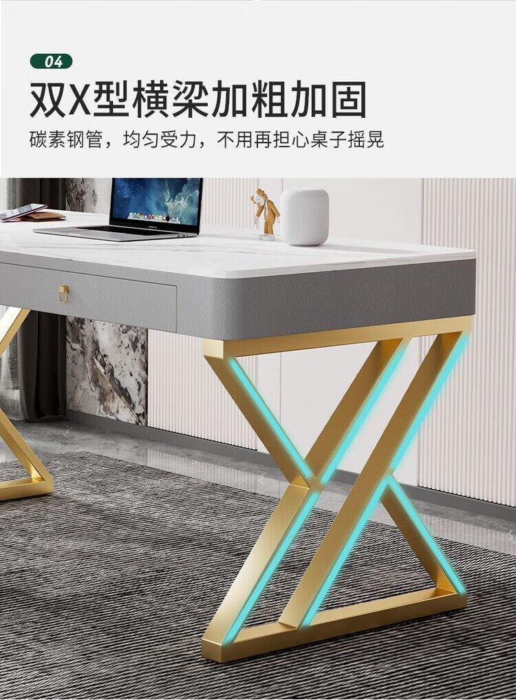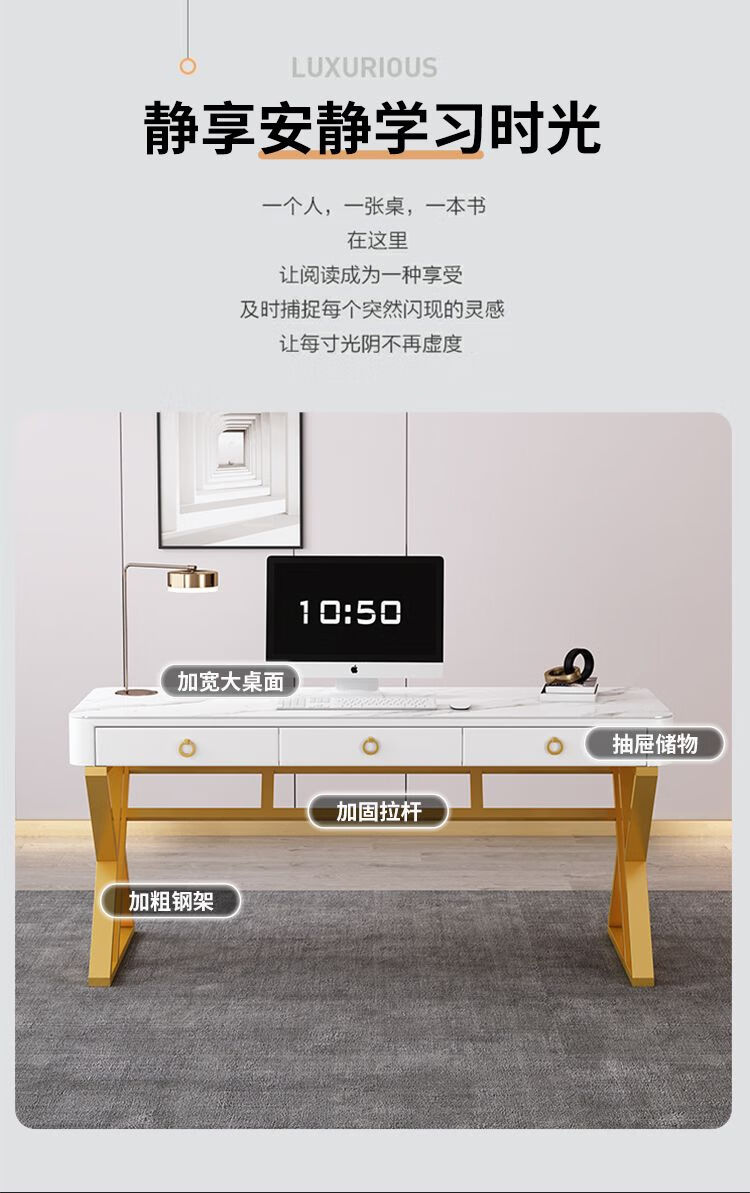 欣慕雅岩板书桌轻奢现代意式电脑台式桌家用简易办公桌卧室工作台学习桌 【金架灰柜白岩板】100cm 岩板电脑桌