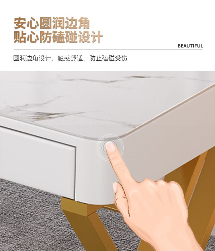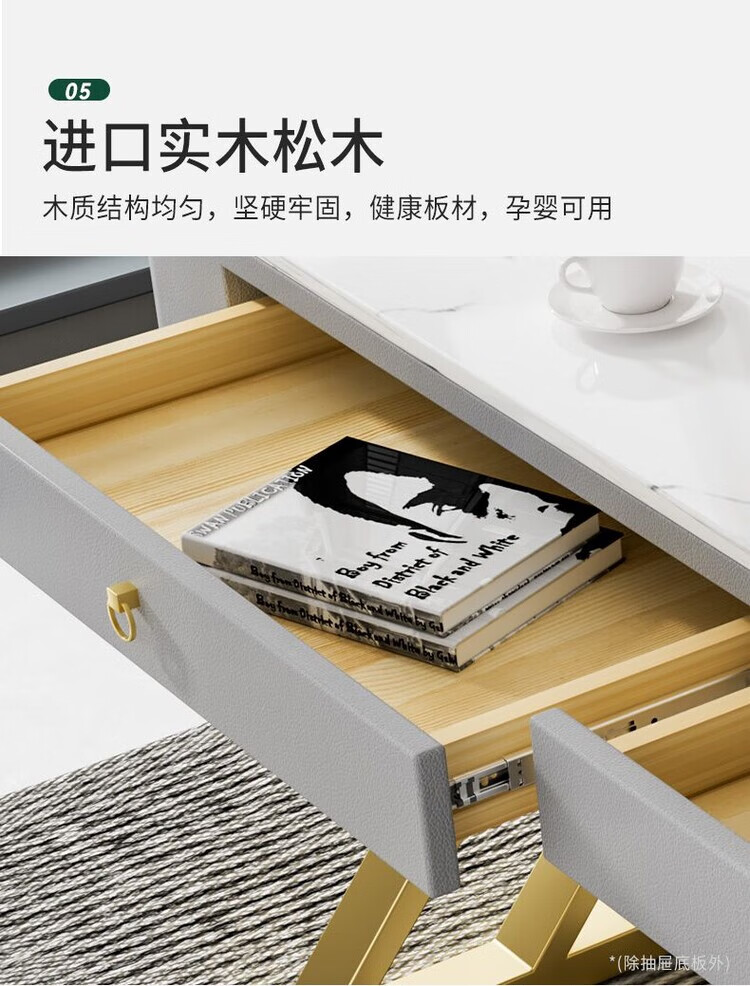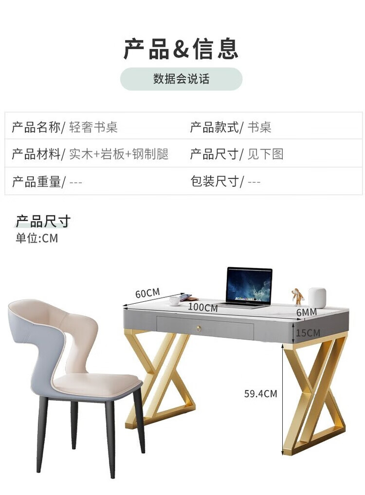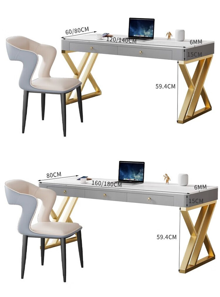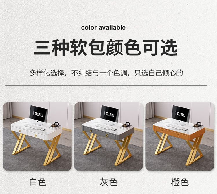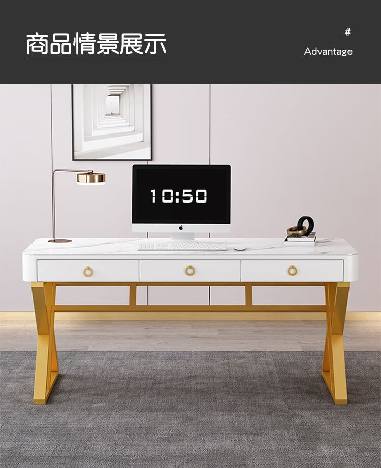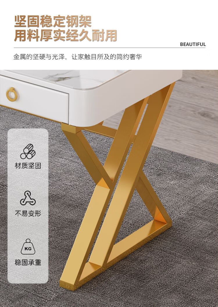 欣慕雅岩板书桌轻奢现代意式电脑台式桌家用简易办公桌卧室工作台学习桌 【金架灰柜白岩板】100cm 岩板电脑桌