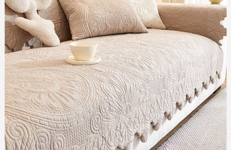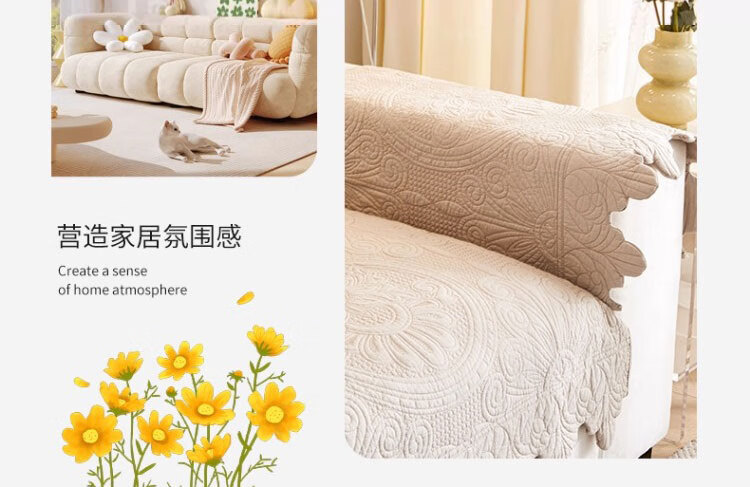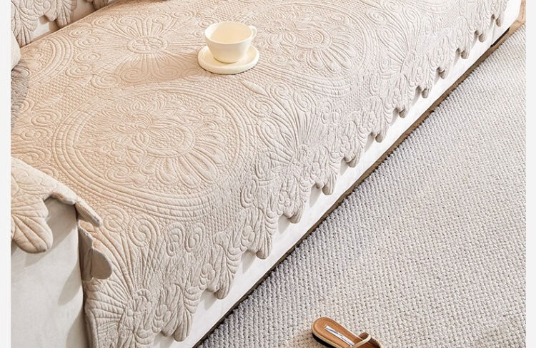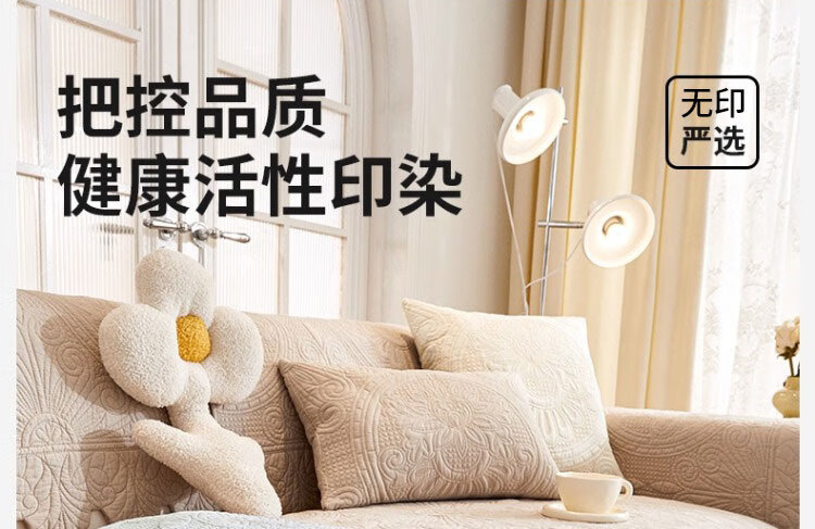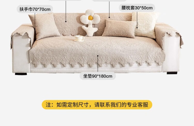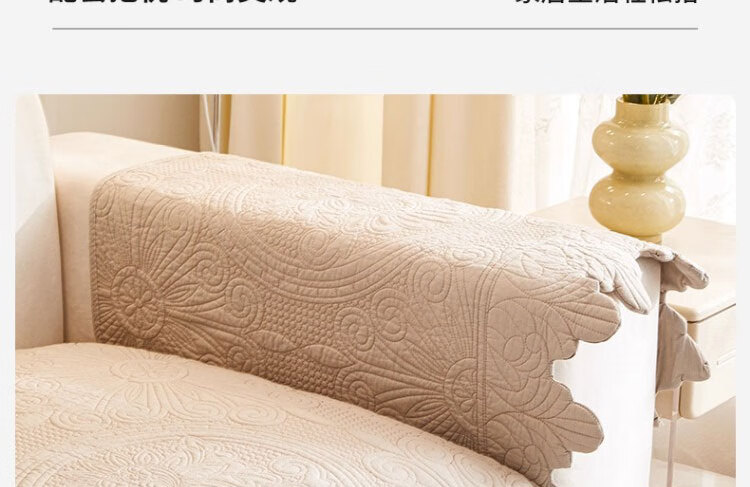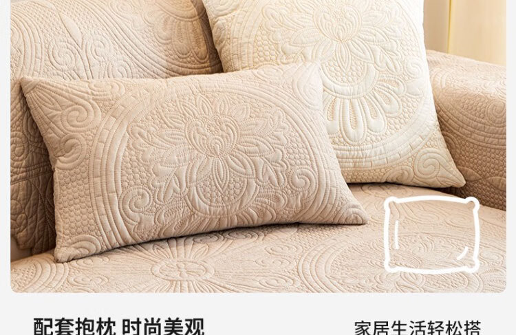 无印良品沙发垫纯棉加厚沙发座垫固定防滑全棉坐垫沙发套罩四季通用 花开-富贵咖色【100%纯棉 环保亲肤不致敏】 70*180【适合长度160-180cm的沙发】