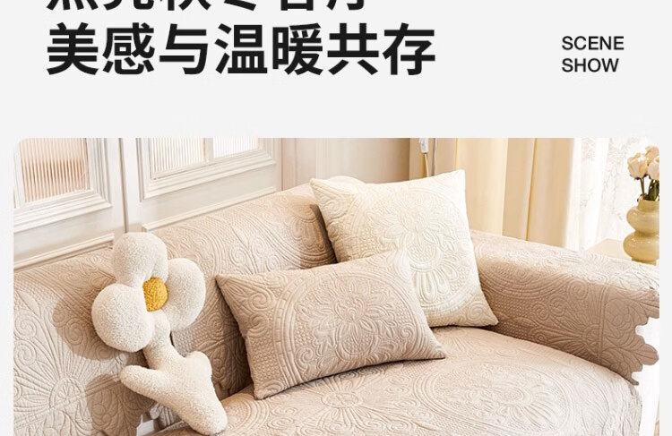 无印良品兔毛绒沙发垫冬季2025新款加厚毛绒防滑奶油风不掉毛皮沙发坐垫子 瑞比特-白色 【冬季毛绒 防静电】 90*240cm (三人位/小四人位)