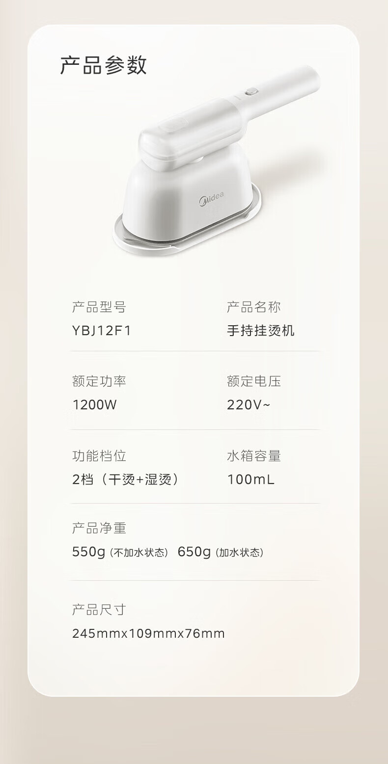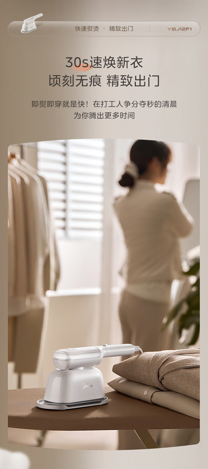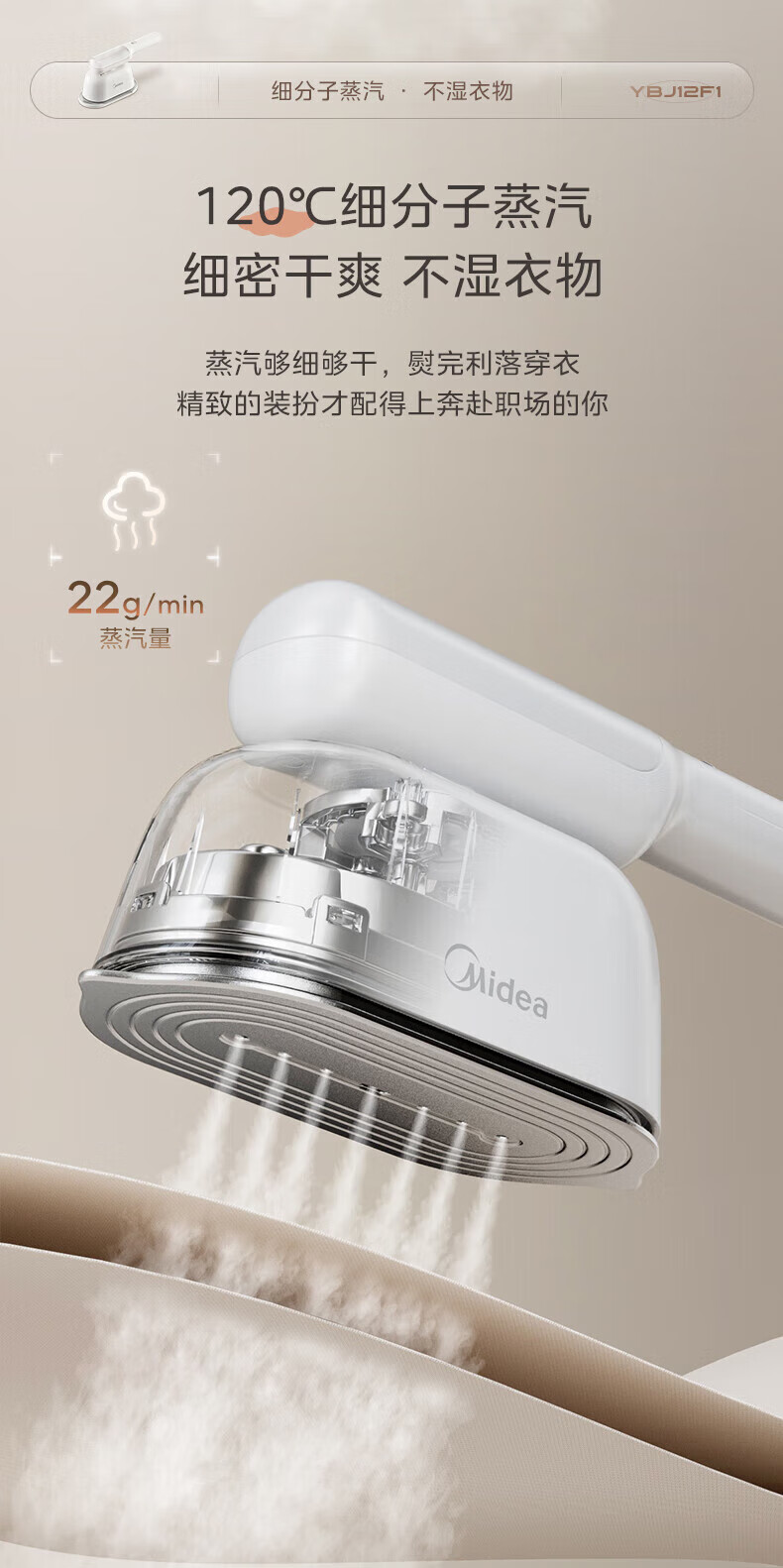 美的(Midea)【高效除菌除螨】手持家用挂烫机 熨烫机迷你烫衣机电熨斗 家用旅行便携式迷你小型熨烫机 【高性价比】可折叠10T1