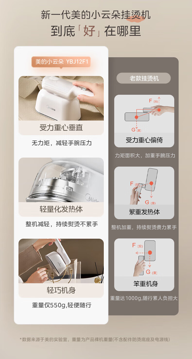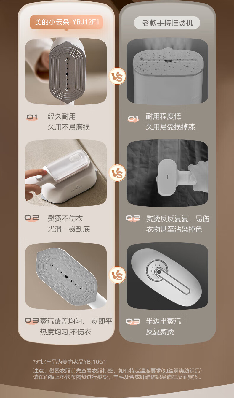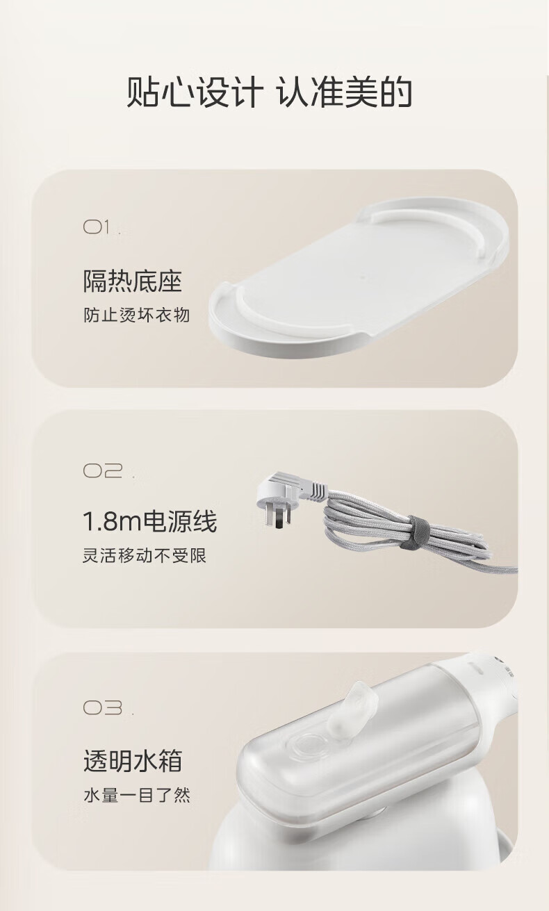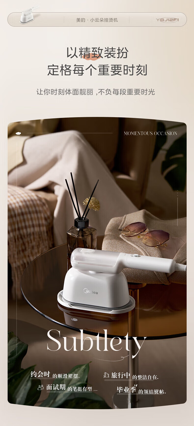 美的(Midea)【高效除菌除螨】手持家用挂烫机 熨烫机迷你烫衣机电熨斗 家用旅行便携式迷你小型熨烫机 【高性价比】可折叠10T1