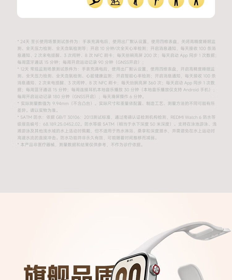 小米(MI)REDMI Watch 6 皎月银 国家补贴 澎湃OS 3 心率血氧监测 蓝牙通话 红米手表6 智能手表 小米汽车