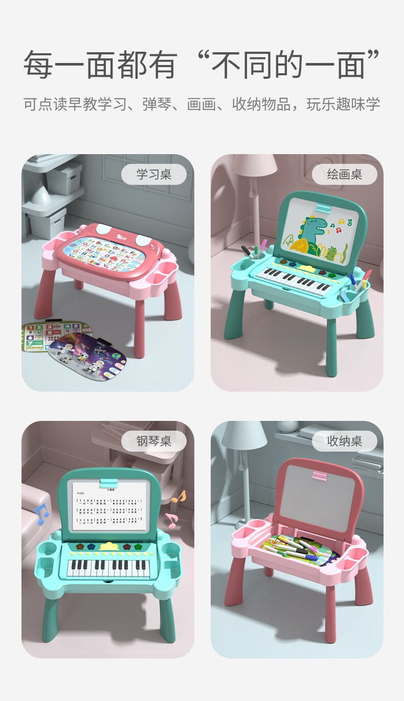 BAOLI儿童游戏桌宝宝多功能点触学习桌玩具电子琴音乐启蒙小孩生日礼物 宝丽多功能点触学习桌(浅蓝)