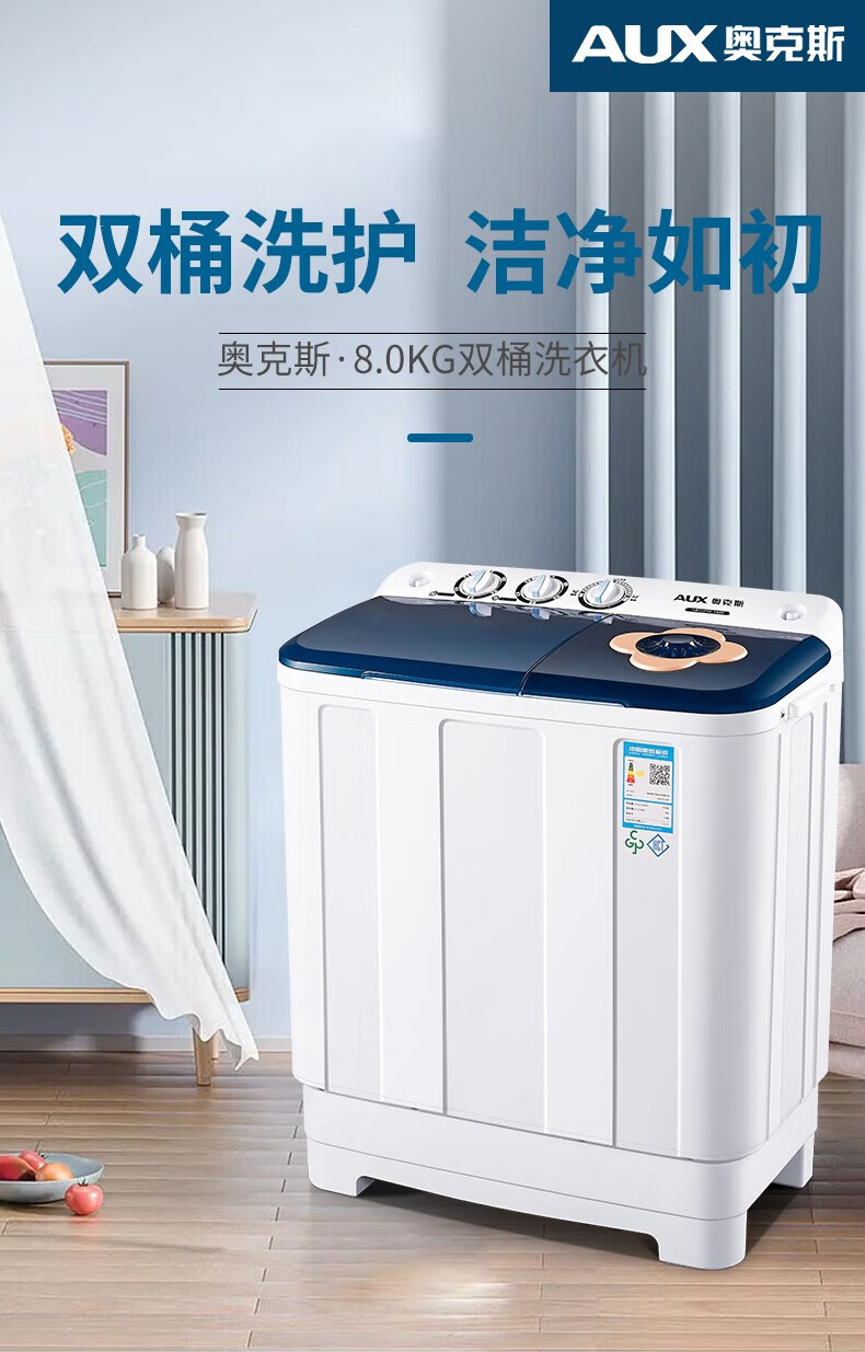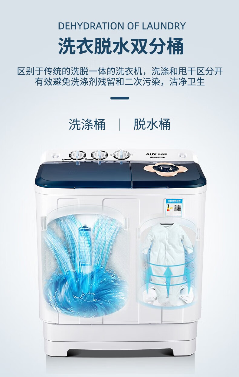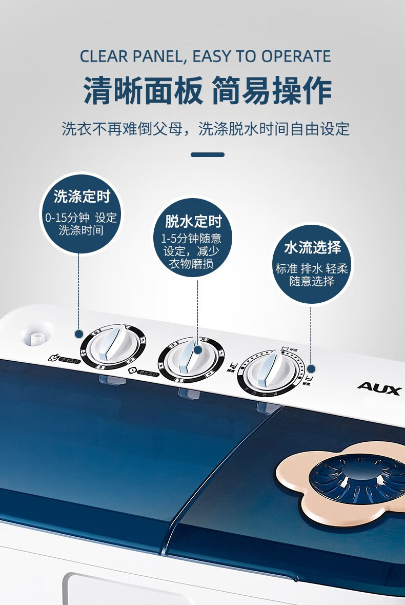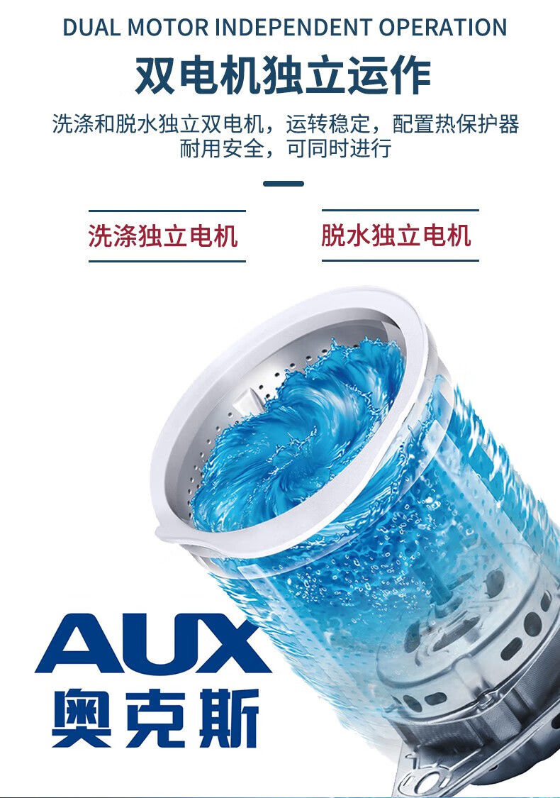 奥克斯(AUX)洗衣机半自动家用双缸双桶大容量小型租房宿舍波轮双杠强力去污省水电 【国补】13公斤【洗8+脱5+终身联保】黑色