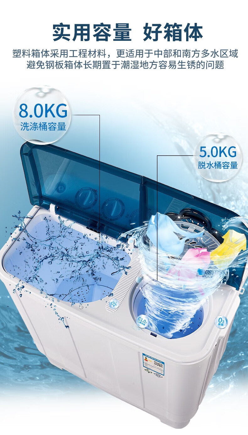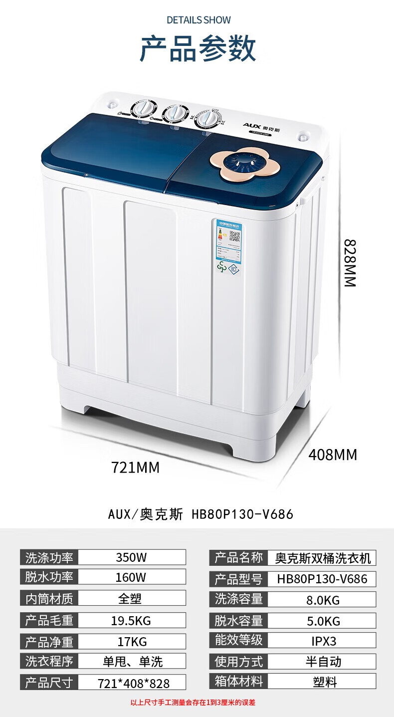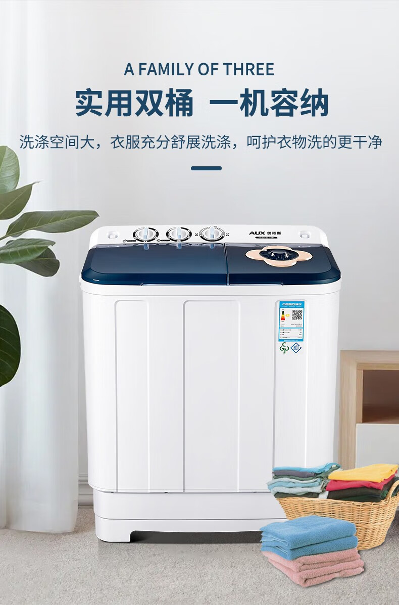 奥克斯(AUX)洗衣机半自动家用双缸双桶大容量小型租房宿舍波轮双杠强力去污省水电 【国补】13公斤【洗8+脱5+终身联保】黑色