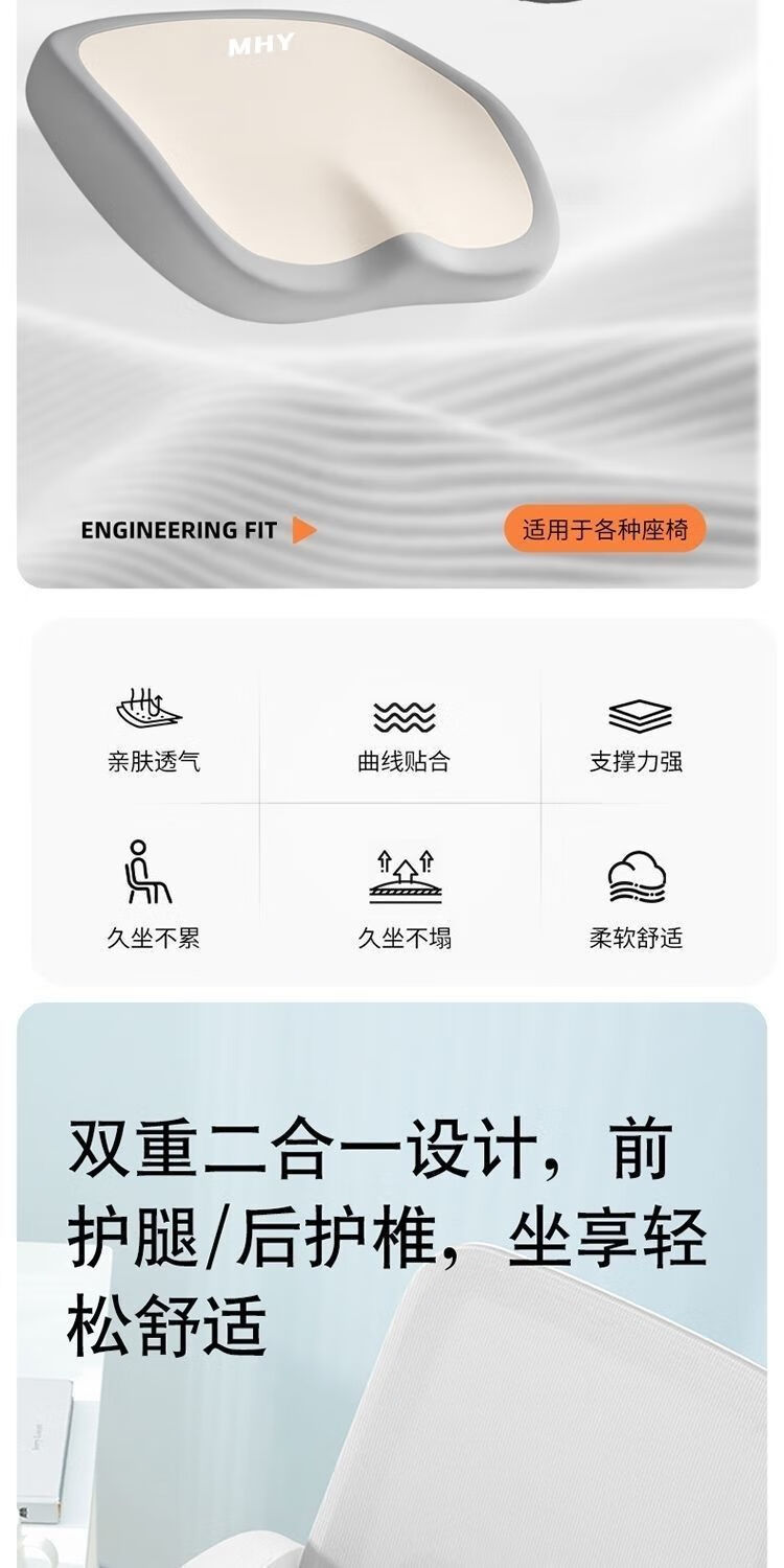 坐垫办公室椅子椅垫夏季久坐神器学生凳子记忆棉护腰屁垫美臀座垫 【颜色随机】1个装