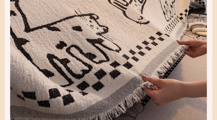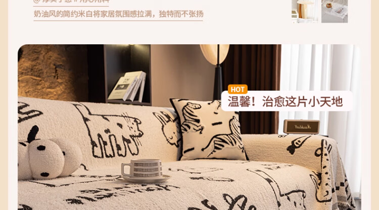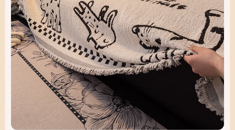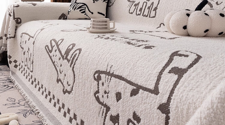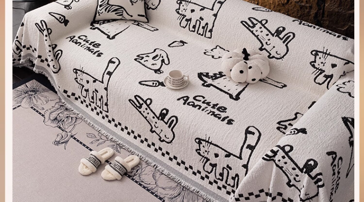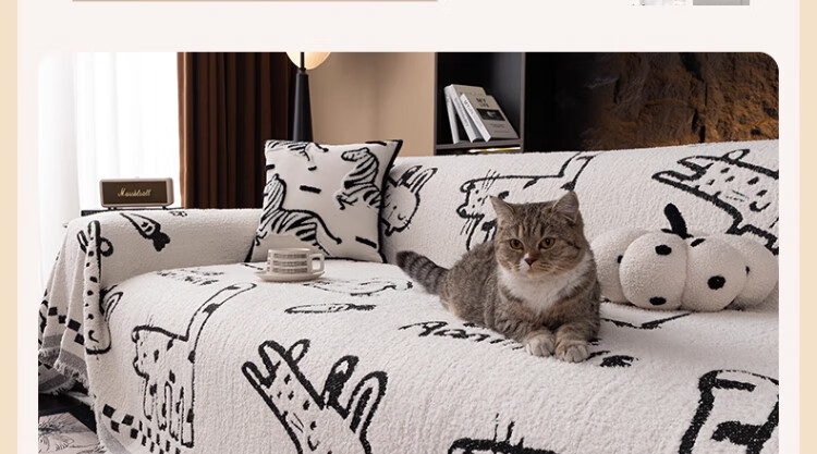 无印良品沙发巾沙发盖布巾全盖2025新款四季通用防滑沙发套罩盖垫遮盖布 童趣猫-黑色【优质面料 健康所选】 180*130cm 【适合小单人位】