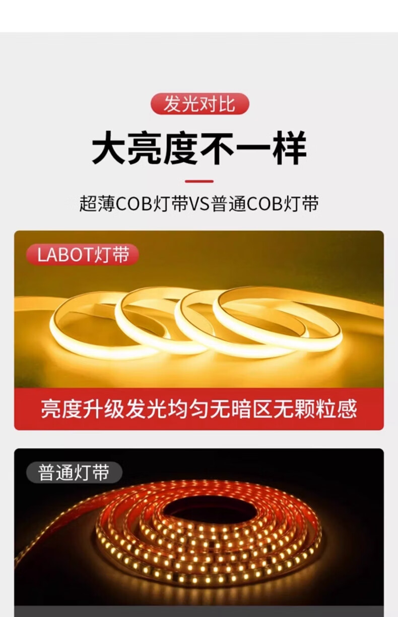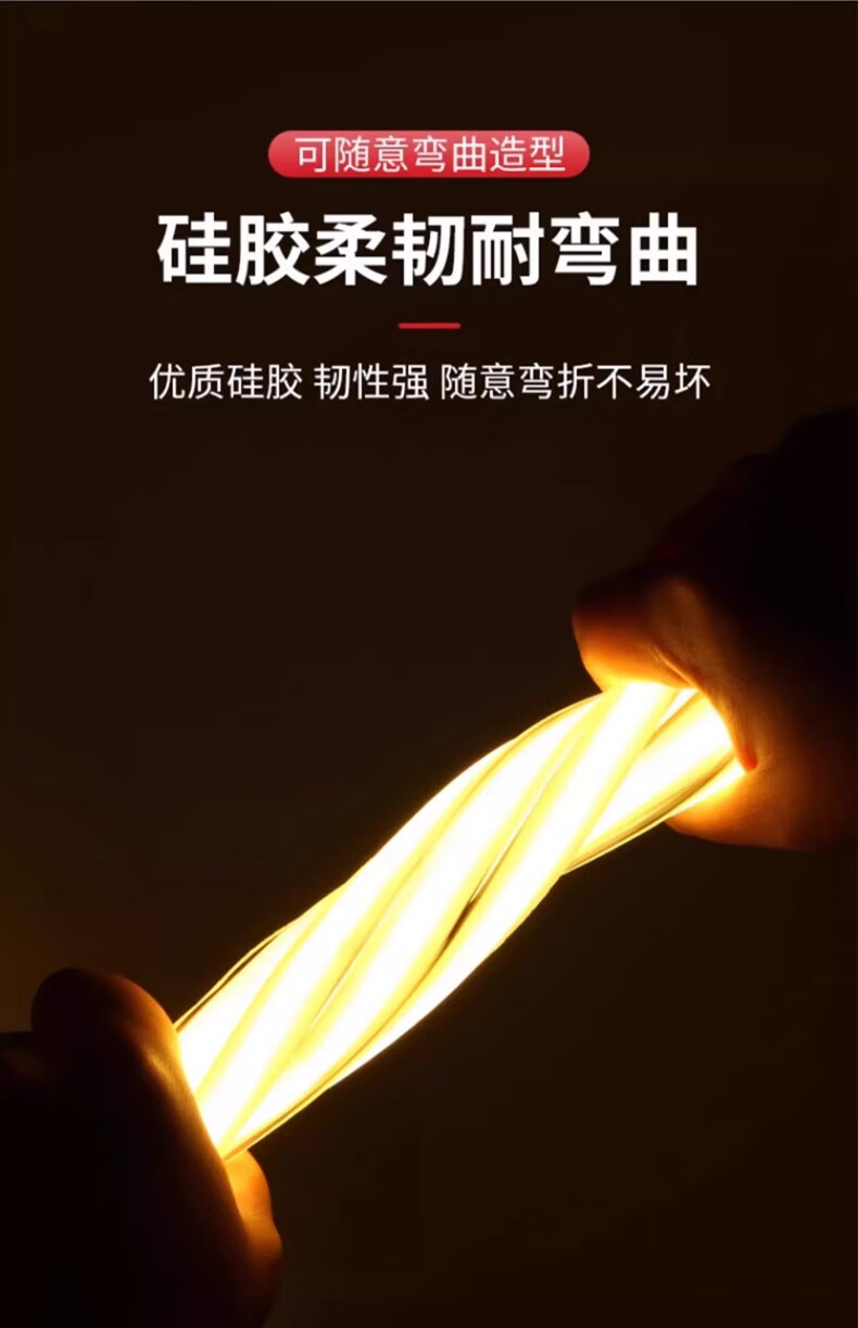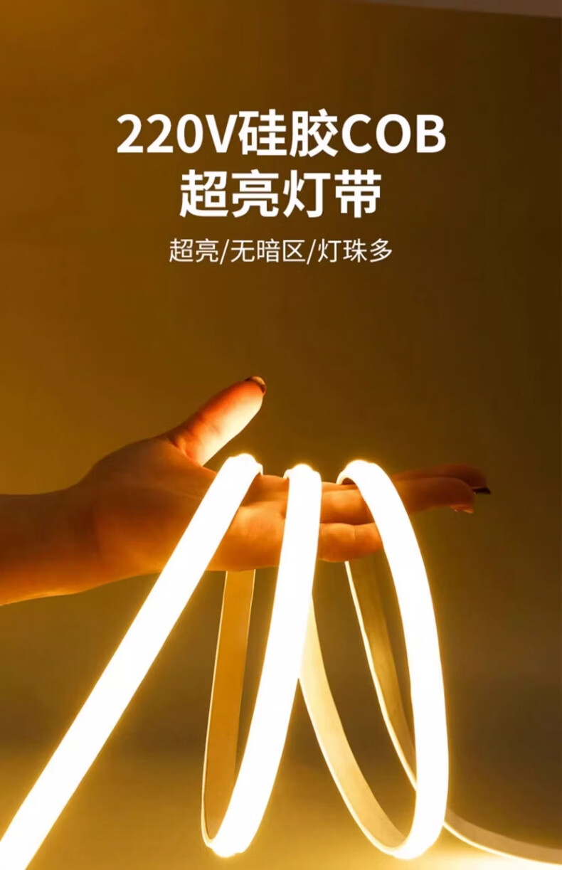 拉伯塔超薄COB灯带220v自粘线形灯槽家用客厅吊顶led户外软灯条防水超亮 COB【暖光】插头+背胶+尾塞 【10米】10cm剪裁