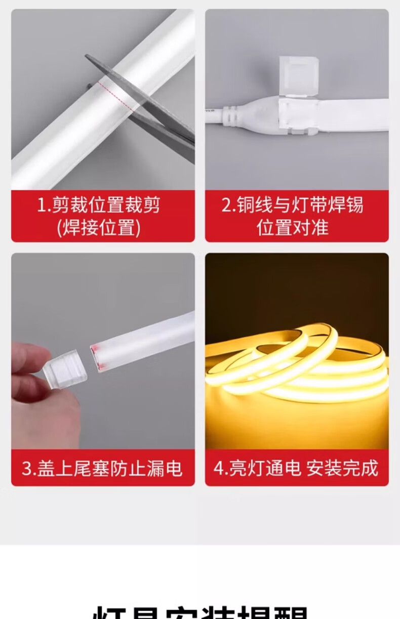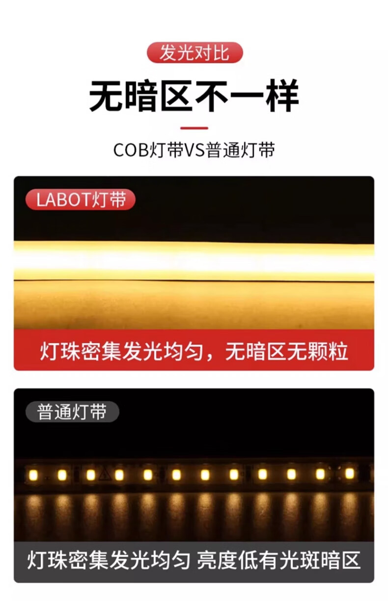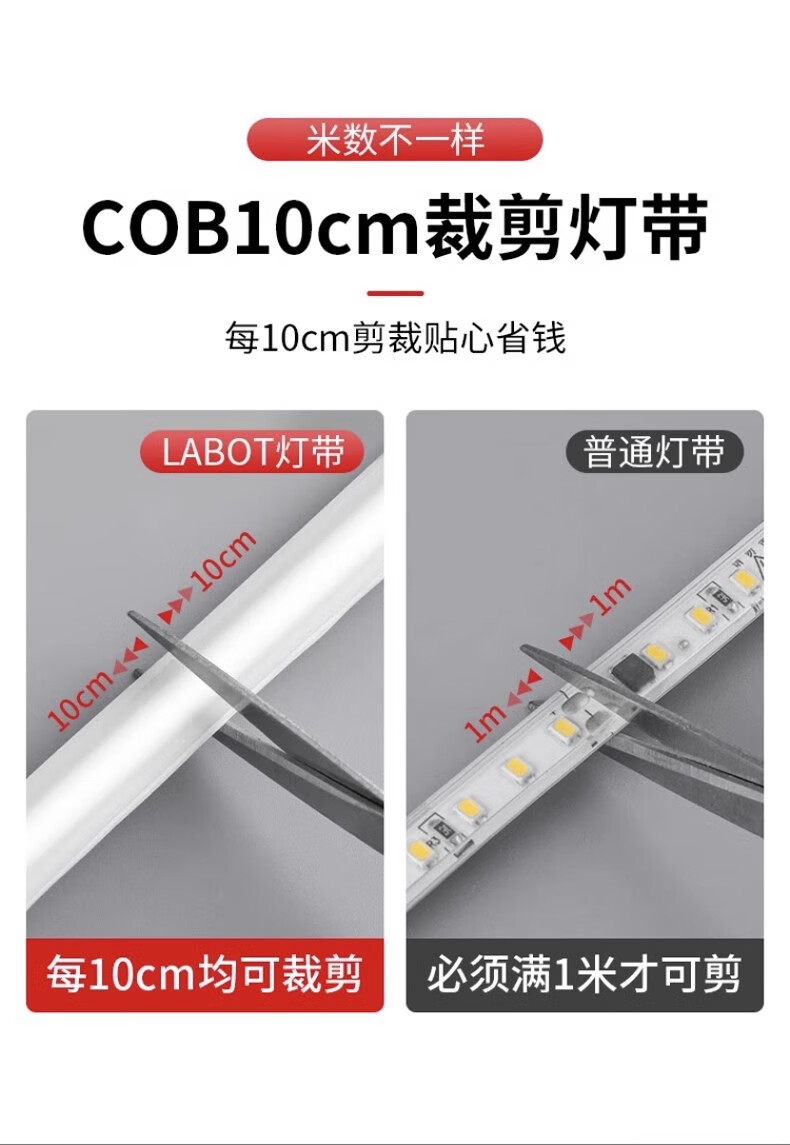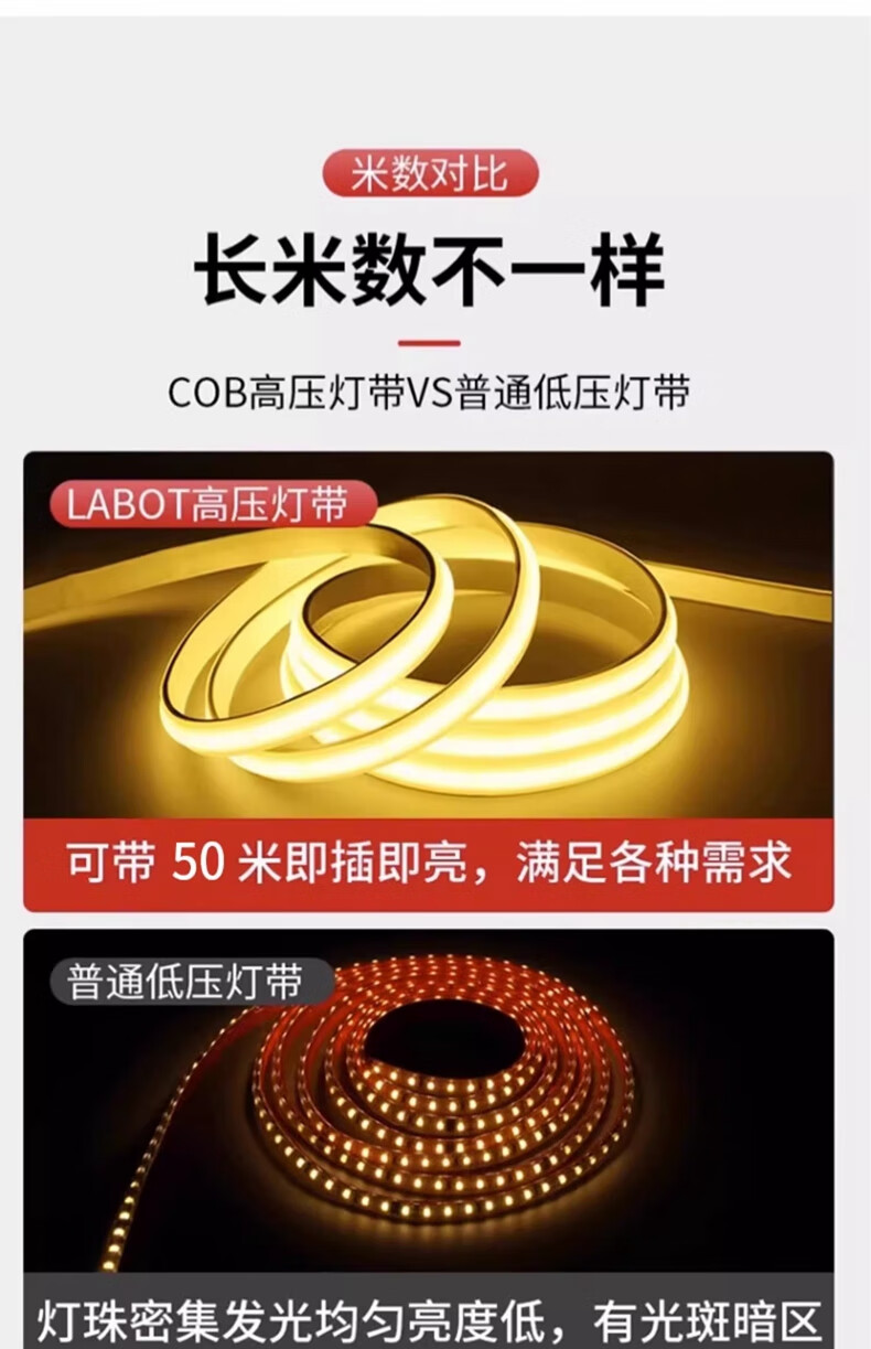 拉伯塔超薄COB灯带220v自粘线形灯槽家用客厅吊顶led户外软灯条防水超亮 COB【暖光】插头+背胶+尾塞 【10米】10cm剪裁