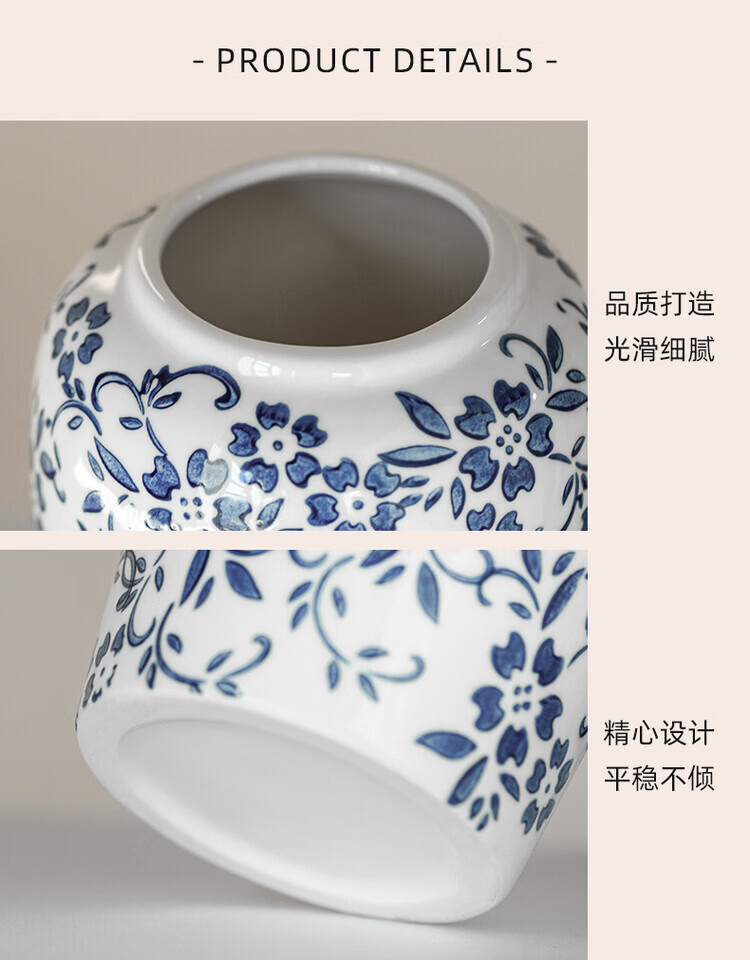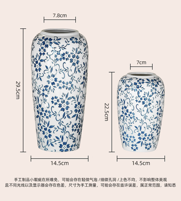 OYKTN中式复古陶瓷花瓶插花摆件高级感小众景德镇青花瓷花瓶陶瓷花器 中式青花瓷小号