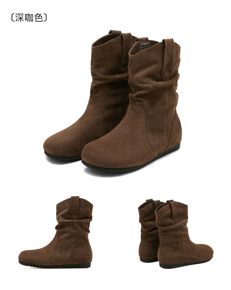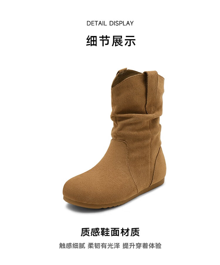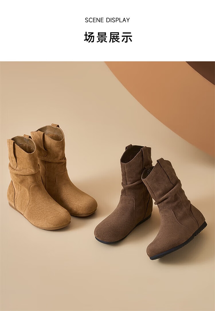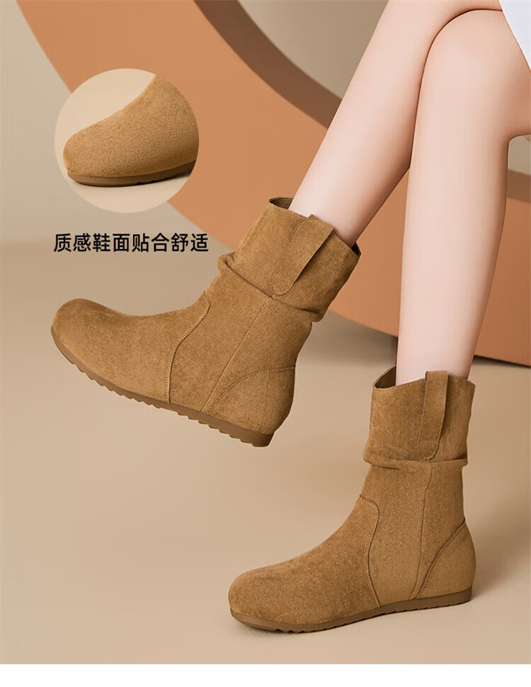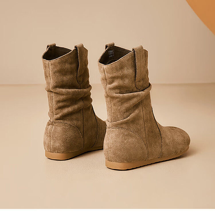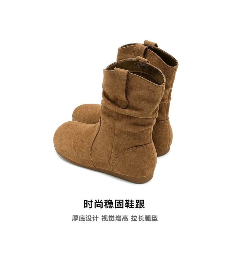 星期六短筒靴女2025年新款爆款秋冬复古时尚瘦瘦靴舒适百搭马丁靴堆堆靴 驼色 38