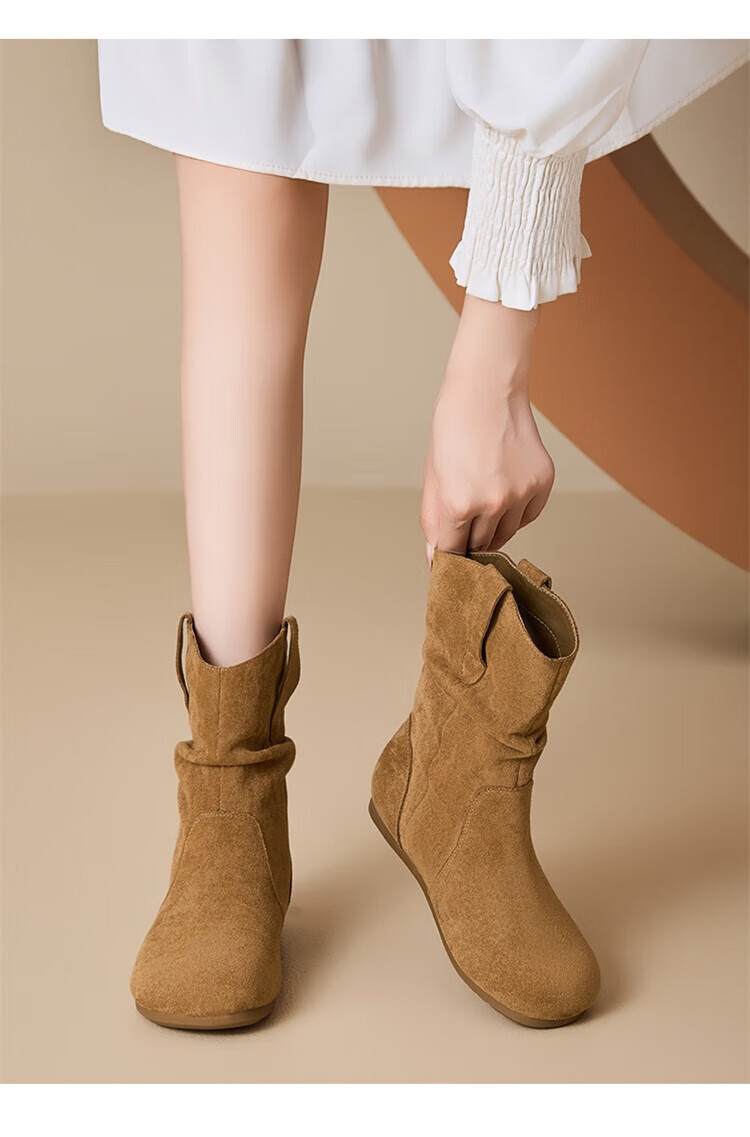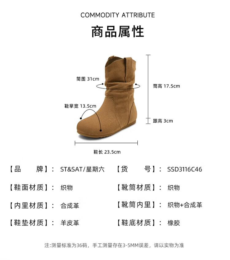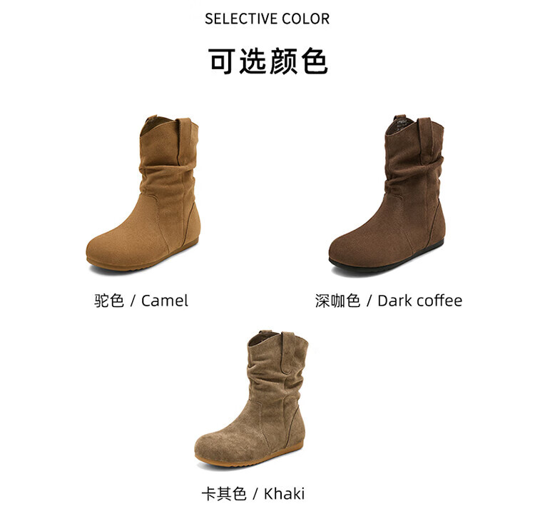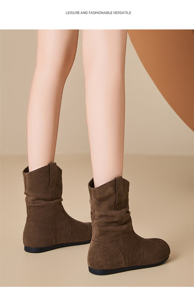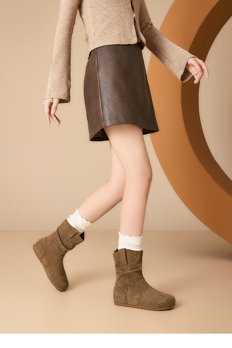 星期六短筒靴女2025年新款爆款秋冬复古时尚瘦瘦靴舒适百搭马丁靴堆堆靴 驼色 38