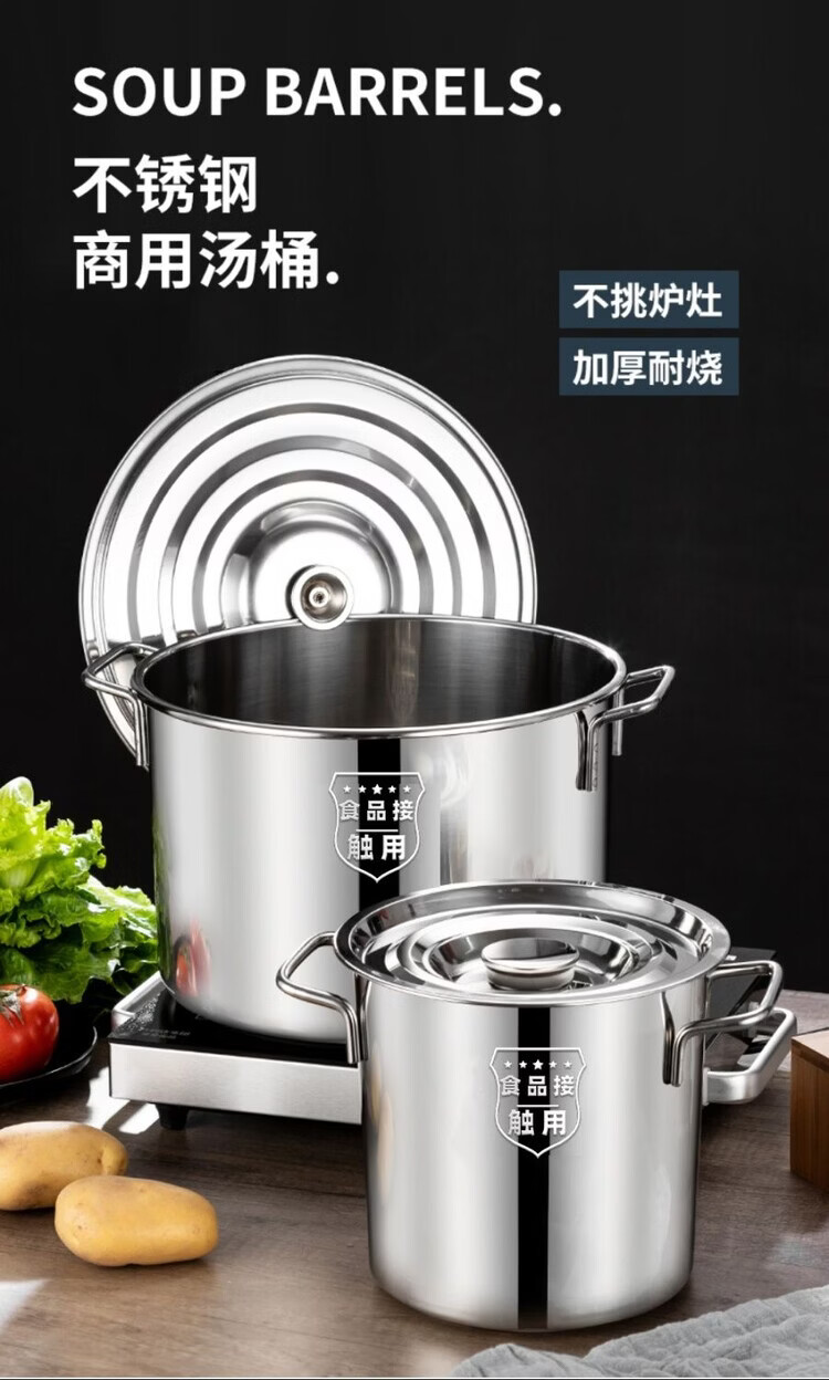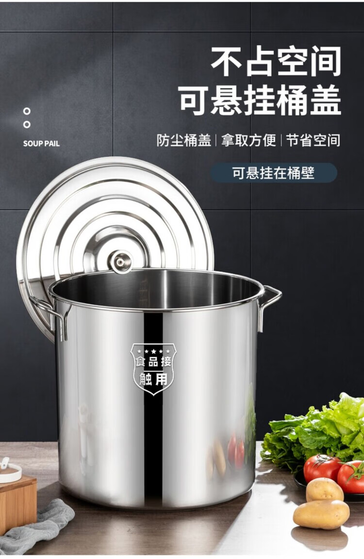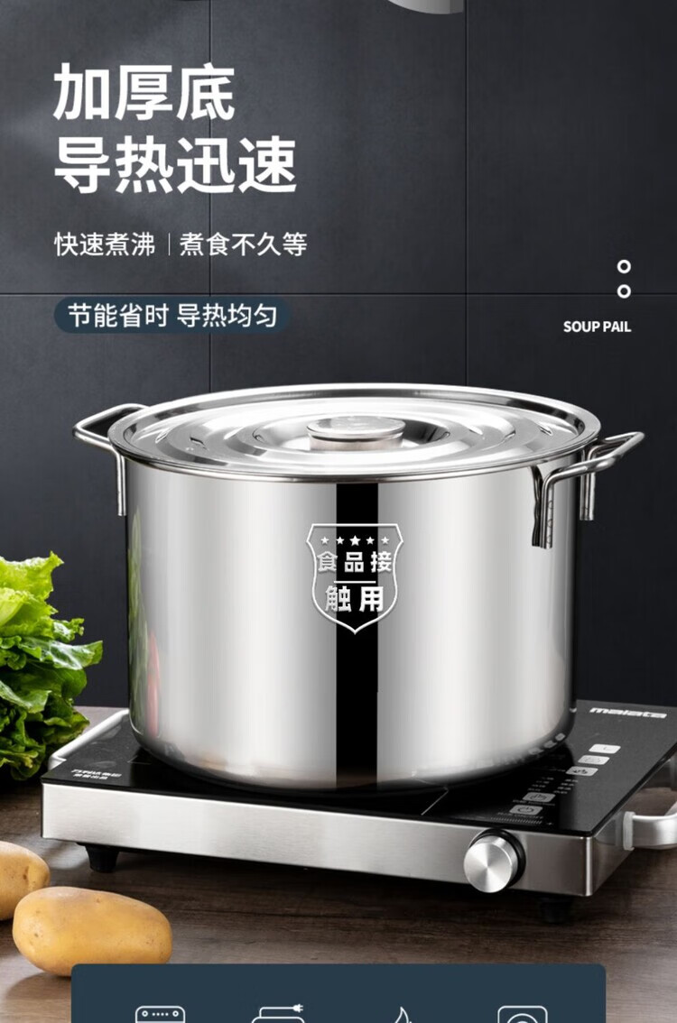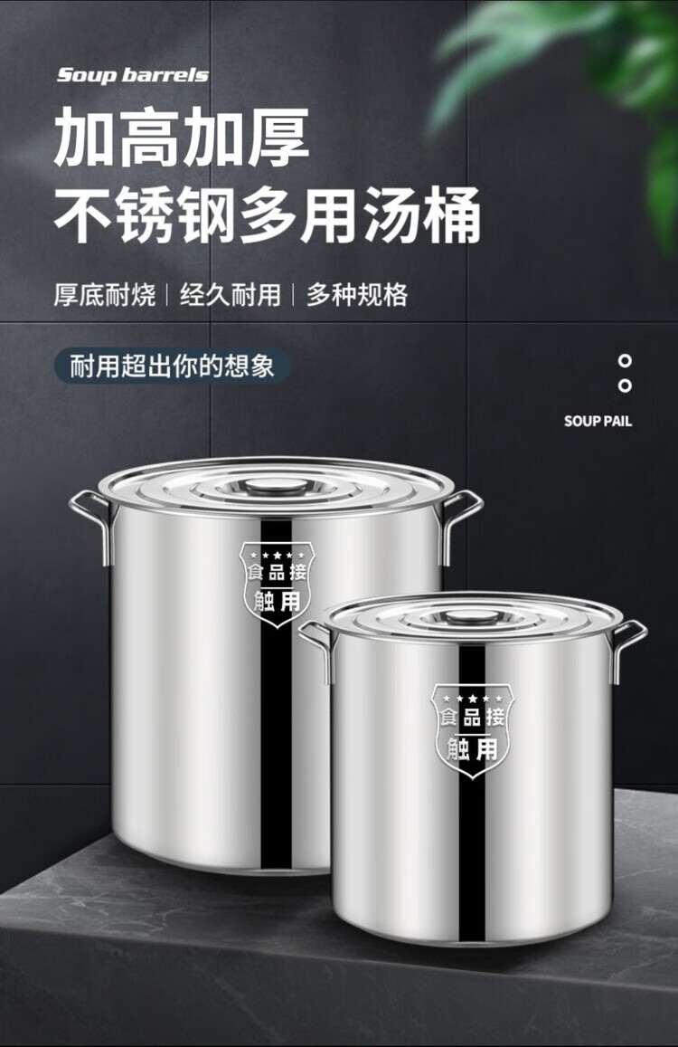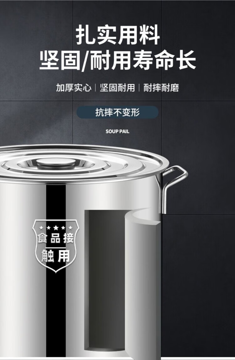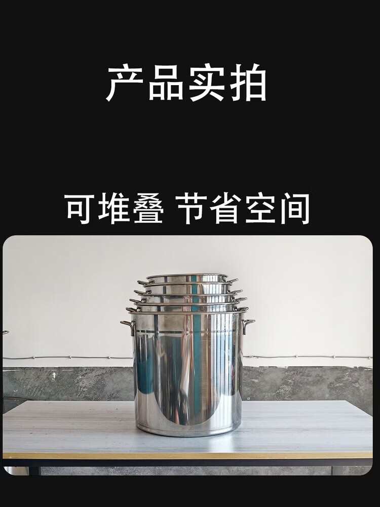 简漾不锈钢桶圆桶带盖汤锅商用汤桶加厚家用卤水桶油桶大容量锅不锈钢 无耳无盖【直径18高9】