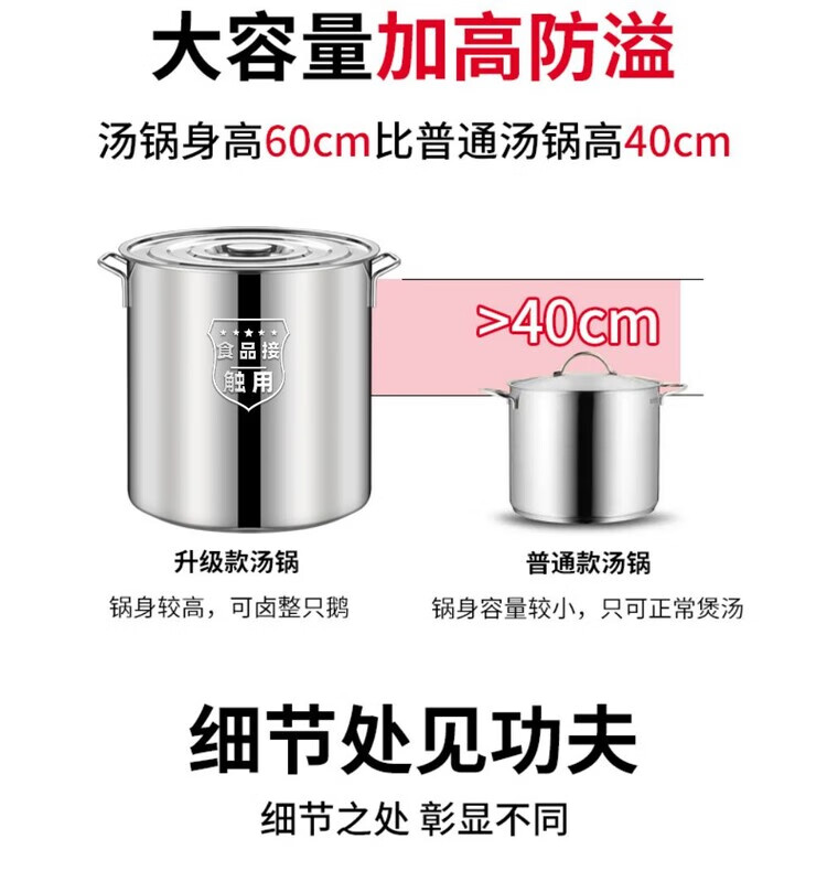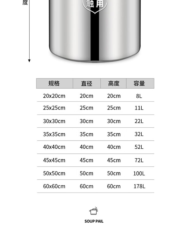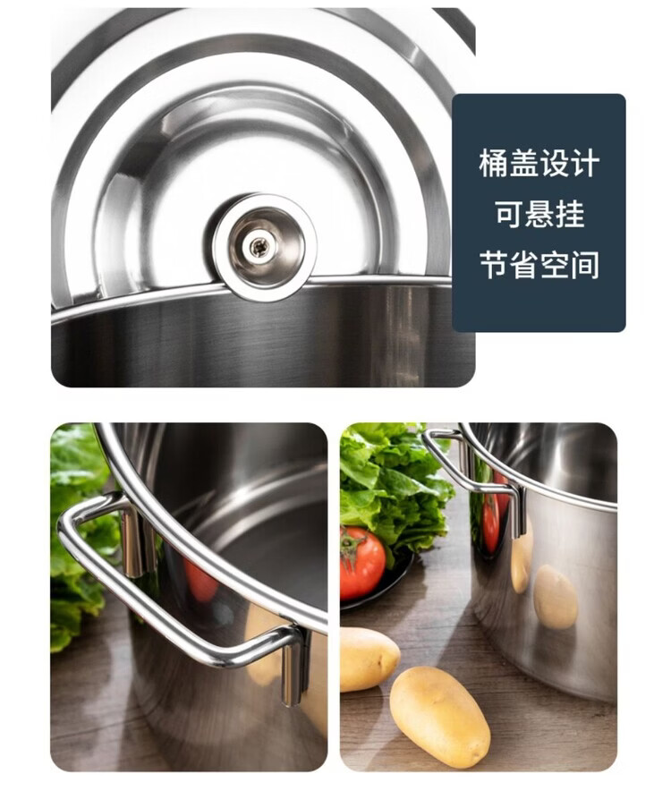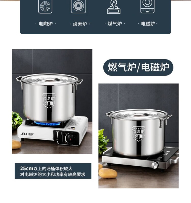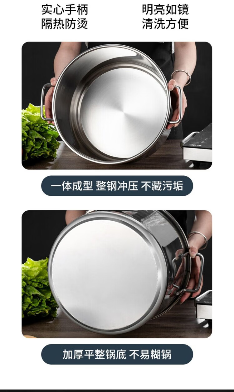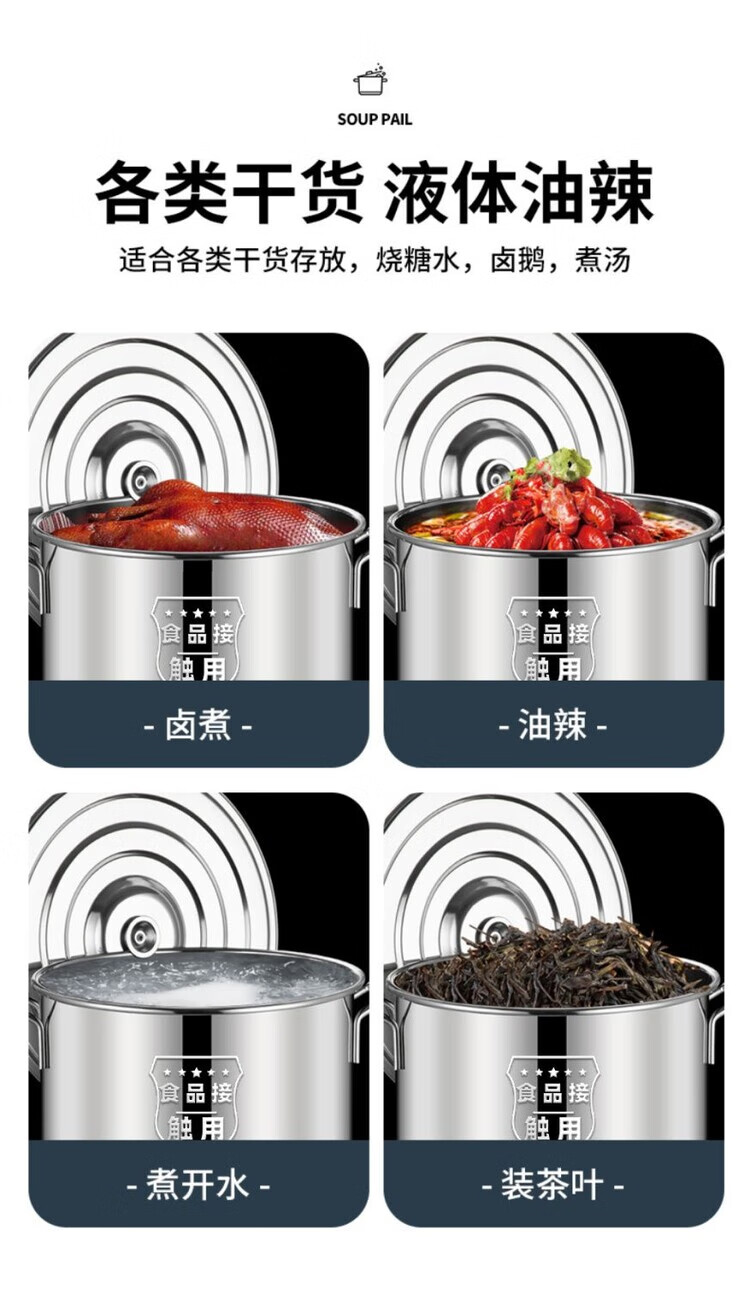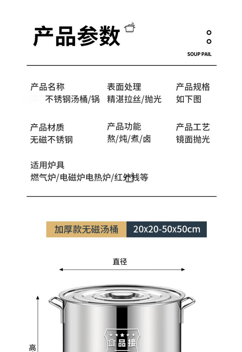 简漾不锈钢桶圆桶带盖汤锅商用汤桶加厚家用卤水桶油桶大容量锅不锈钢 无耳无盖【直径18高9】