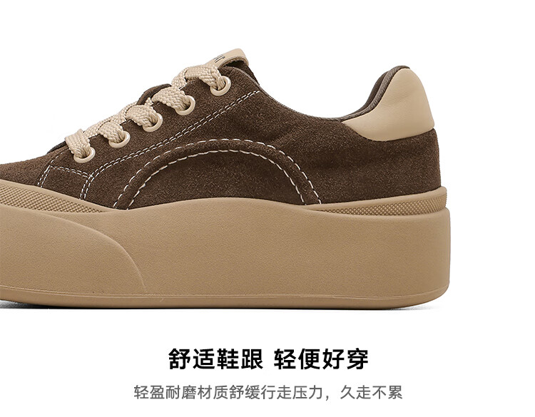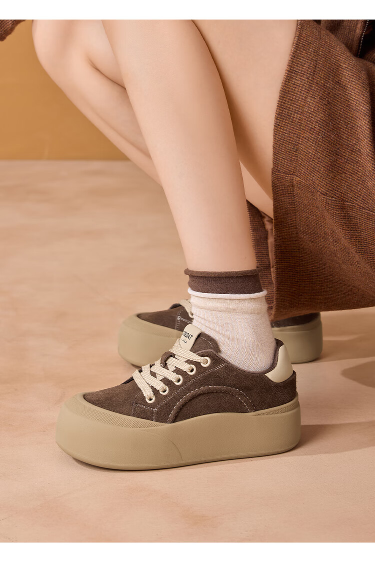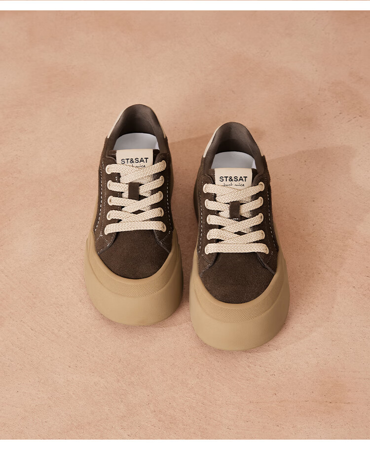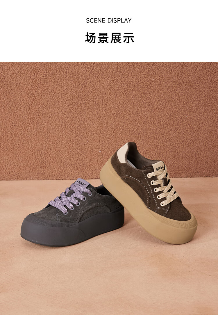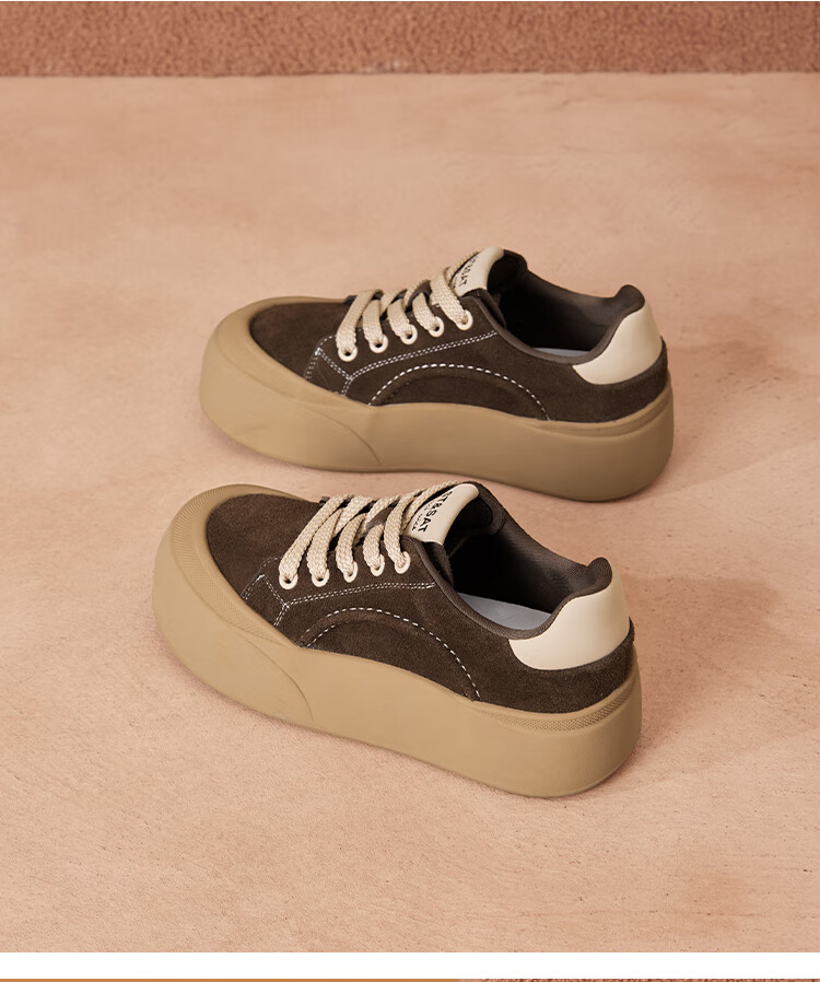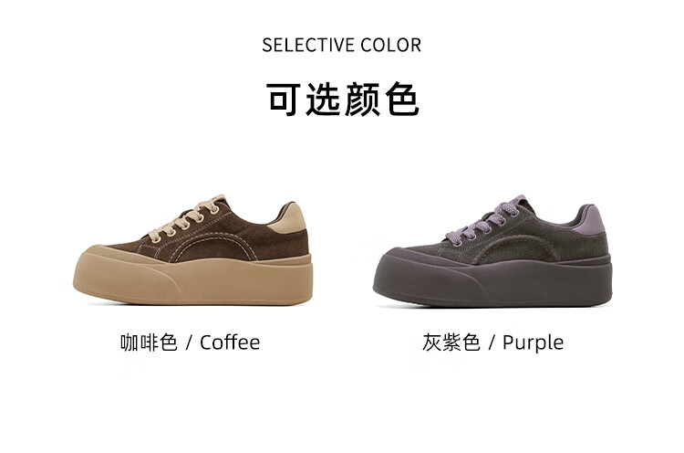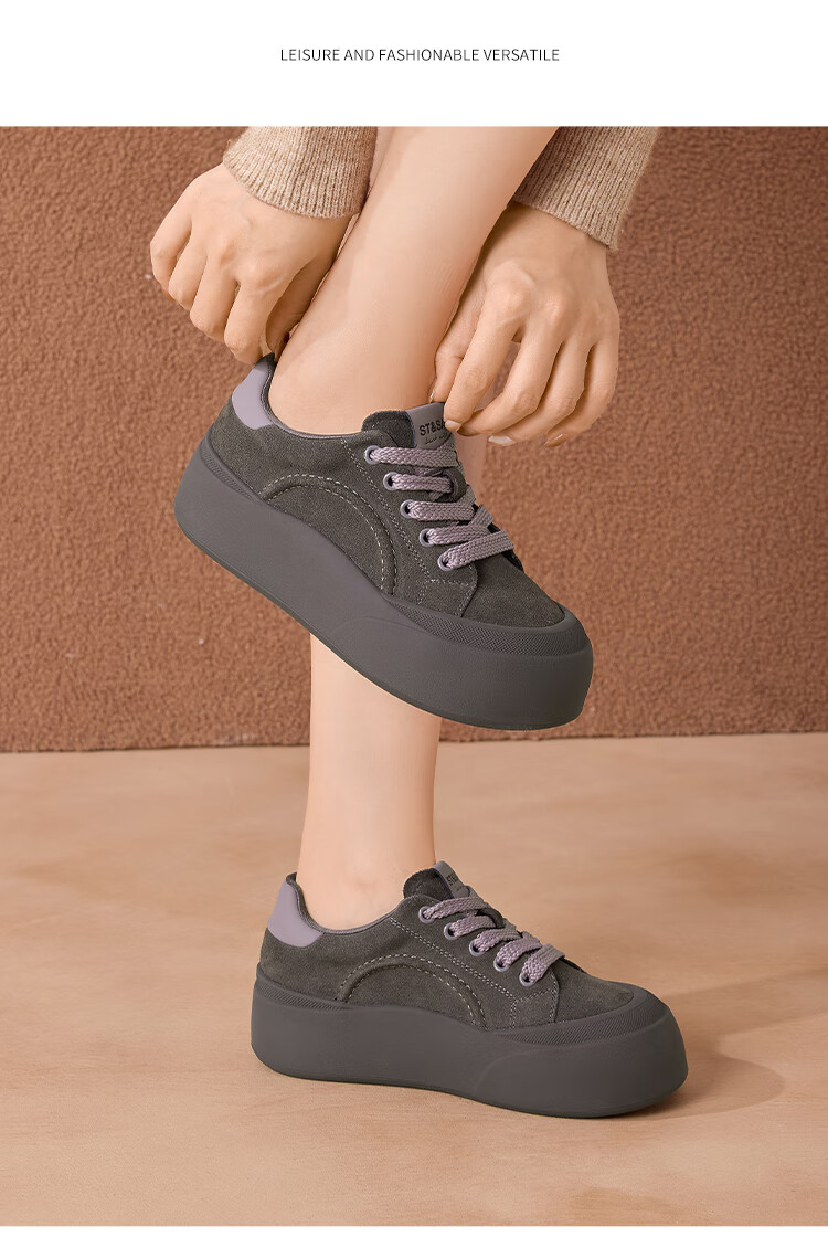 星期六真皮厚底板鞋女款2025新款女鞋冬季复古大头德训运动休闲鞋 灰紫色 37