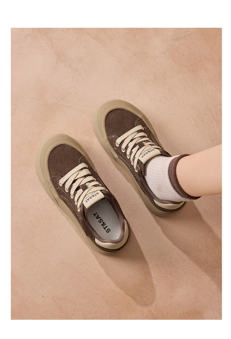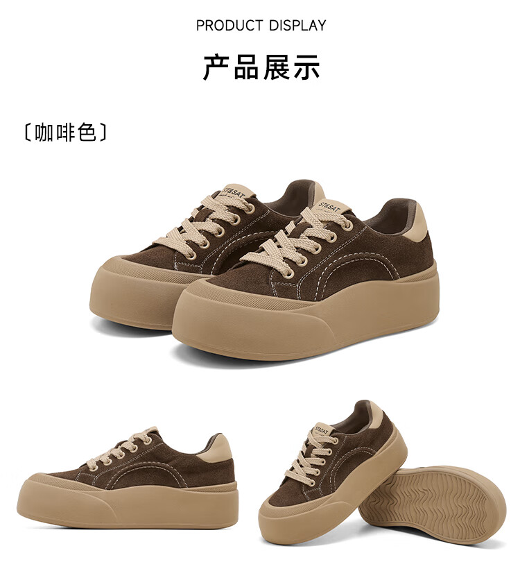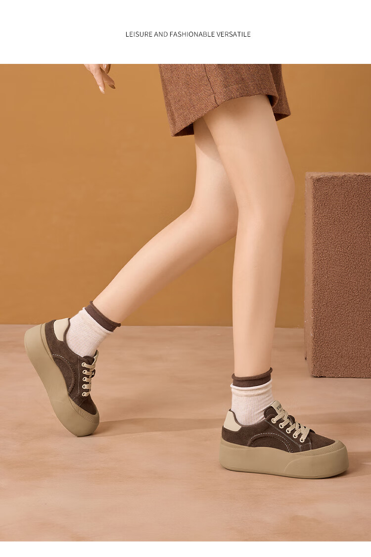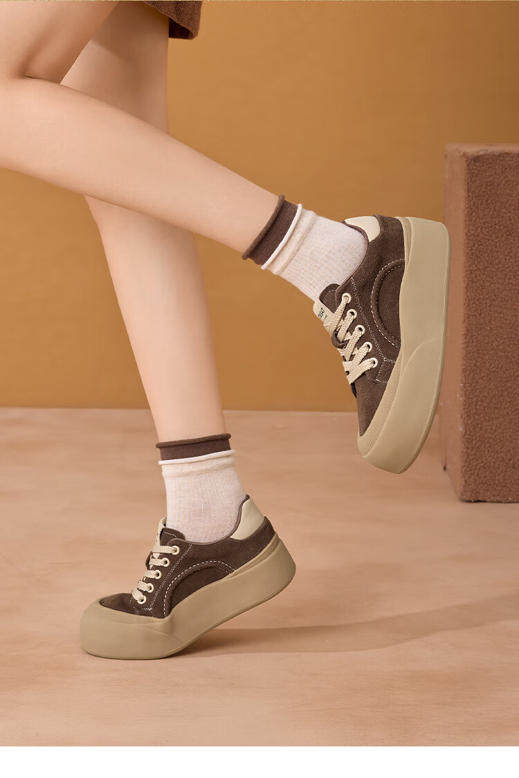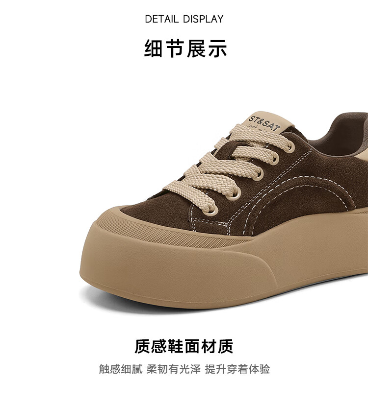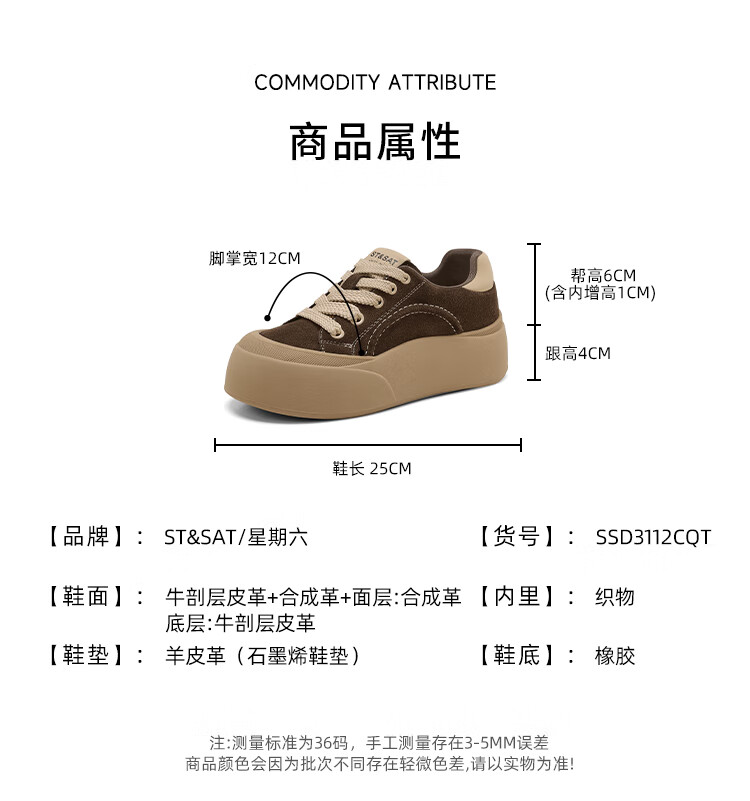 星期六真皮厚底板鞋女款2025新款女鞋冬季复古大头德训运动休闲鞋 灰紫色 37