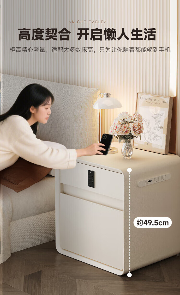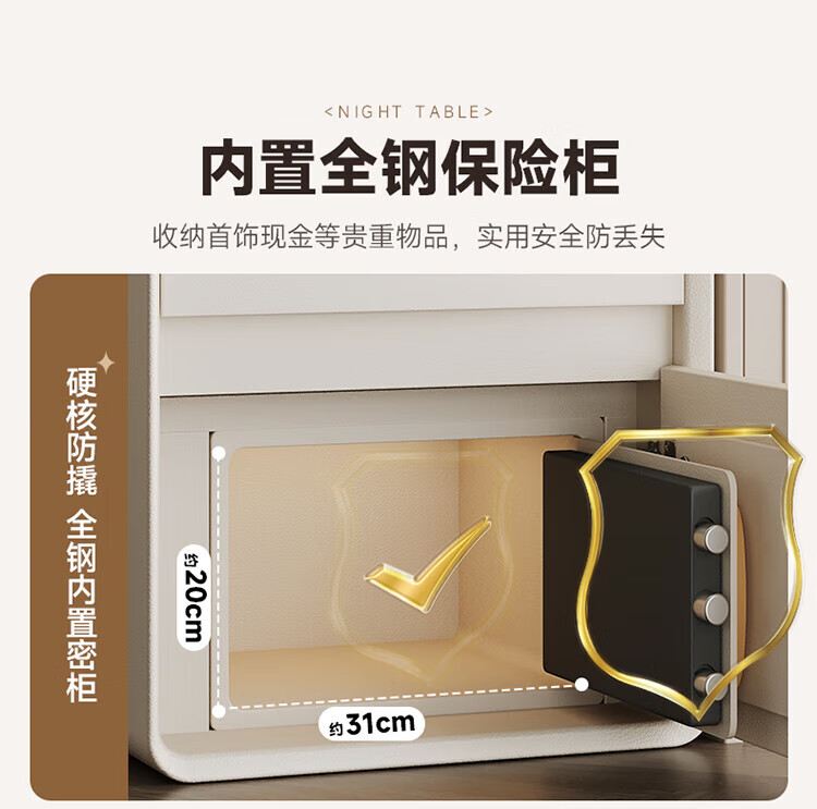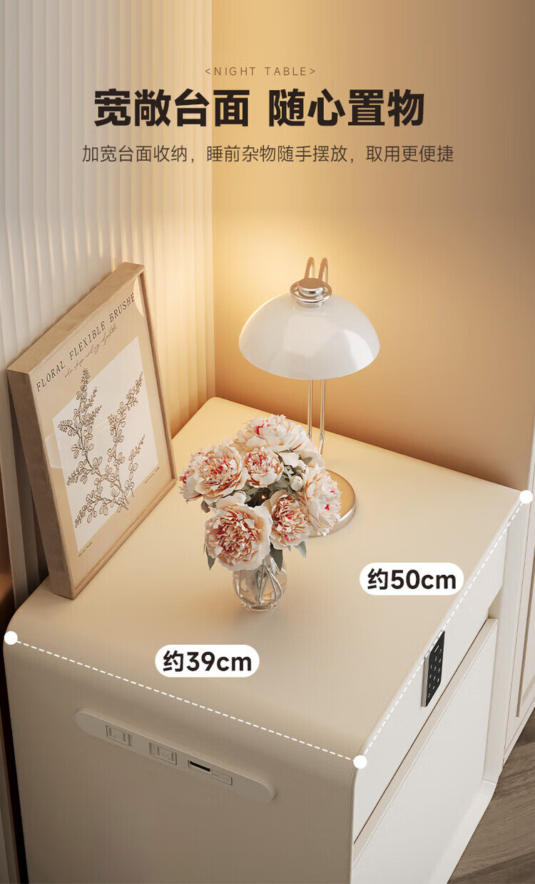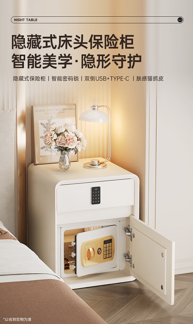 耐禾床头柜保险箱一体家用卧室2025爆款轻奢高级感带锁小型储物收纳柜 米白色【保险柜】密码锁+耐磨猫抓皮 全实木长50*宽40*高50