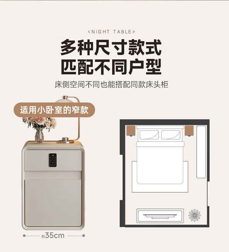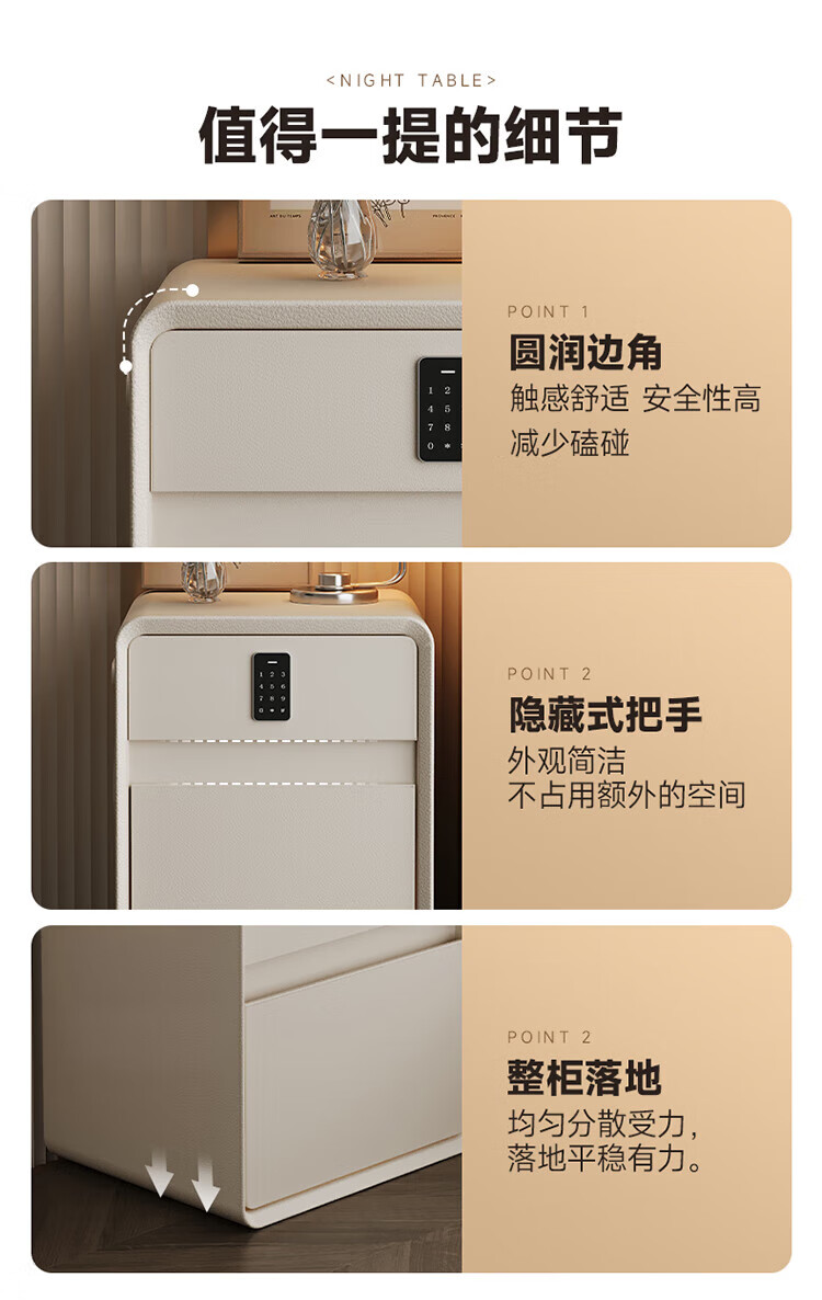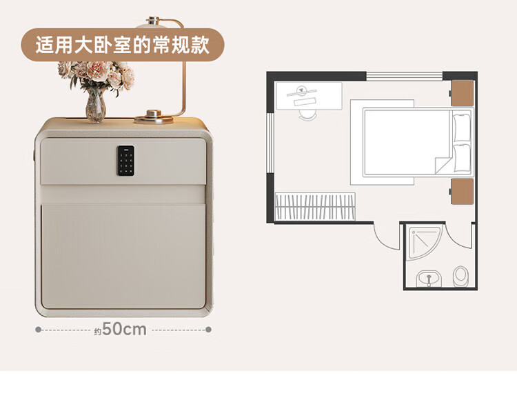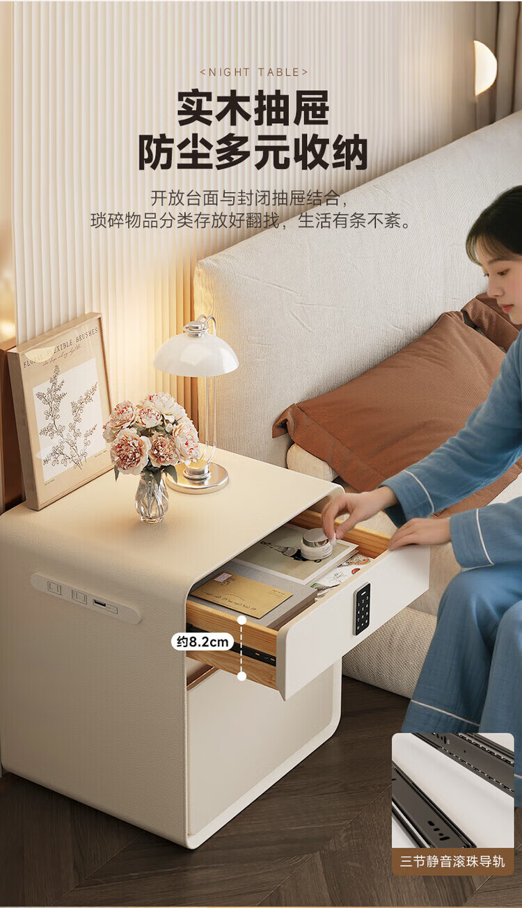 耐禾床头柜保险箱一体家用卧室2025爆款轻奢高级感带锁小型储物收纳柜 米白色【保险柜】密码锁+耐磨猫抓皮 全实木长50*宽40*高50