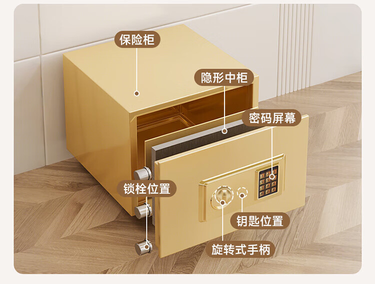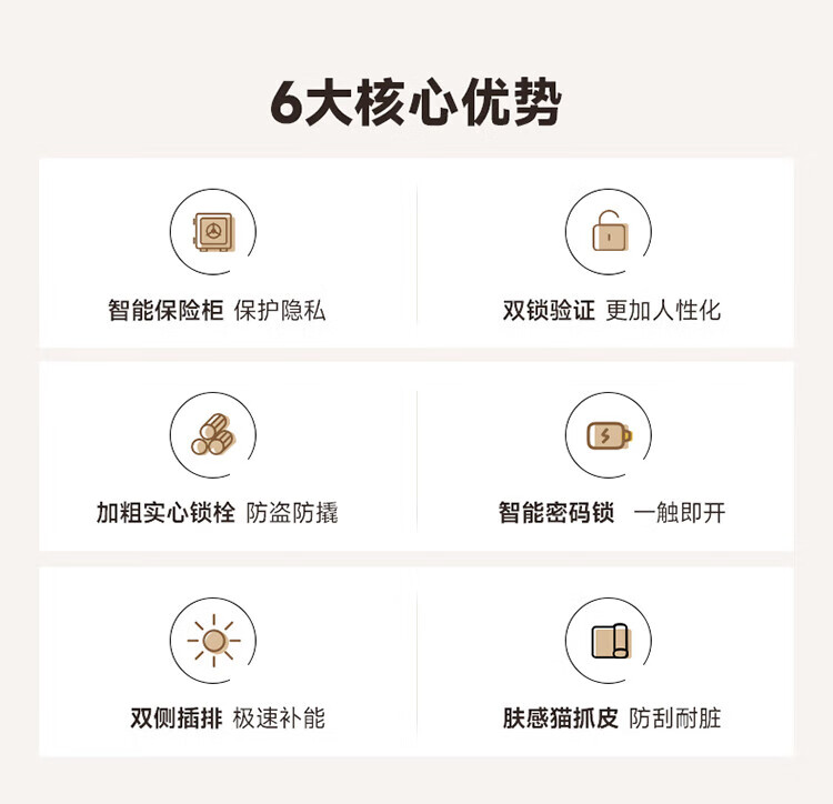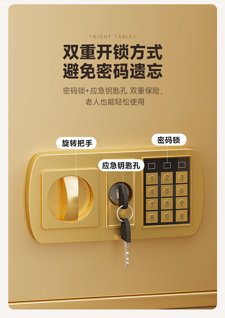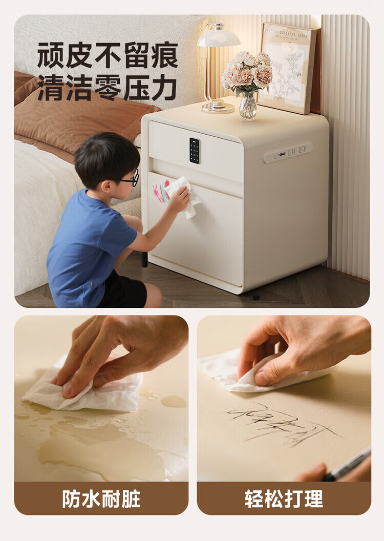 豪利邦智能床头柜保险柜现代家用一体收纳保险箱多功能简约无线充电卧室 卡其双抽+智能【无线充电+三色可调灯】 40*40*48