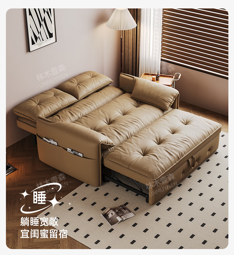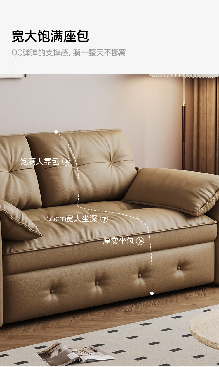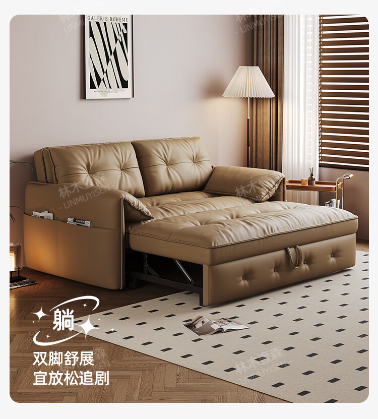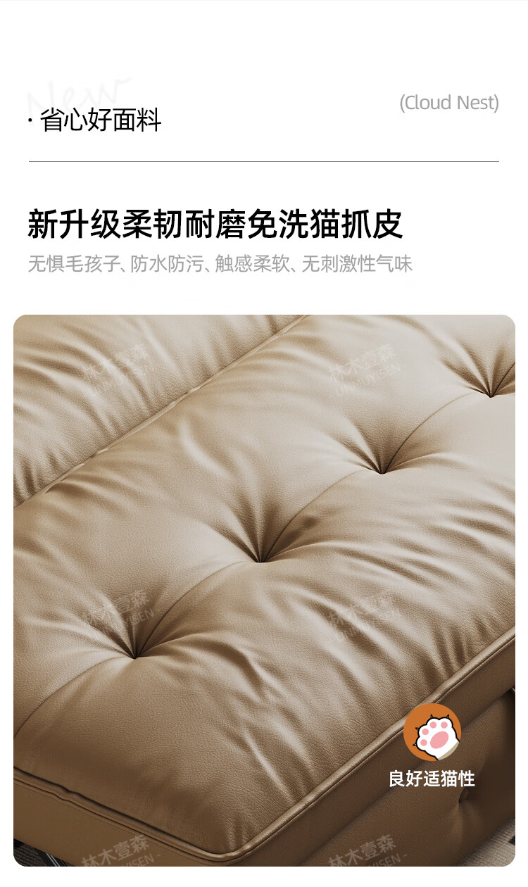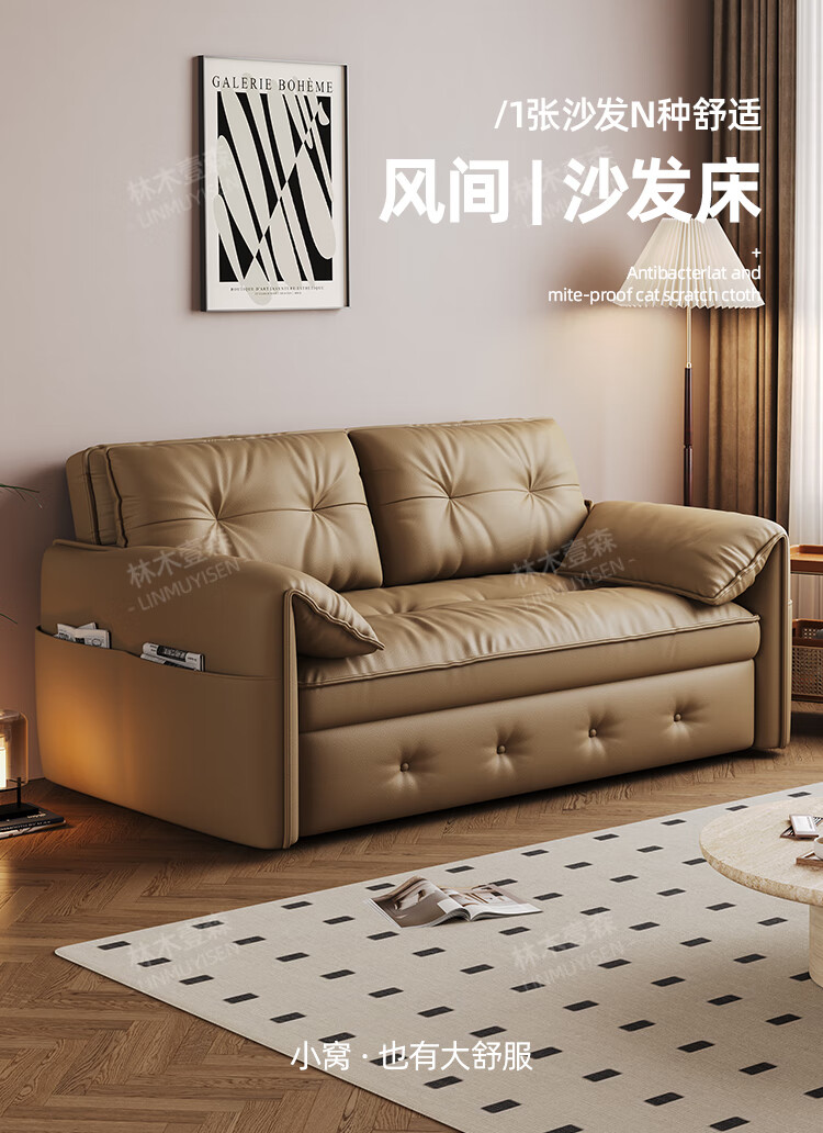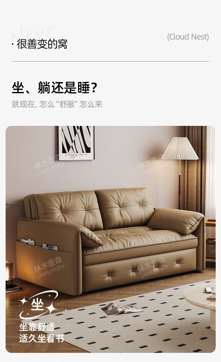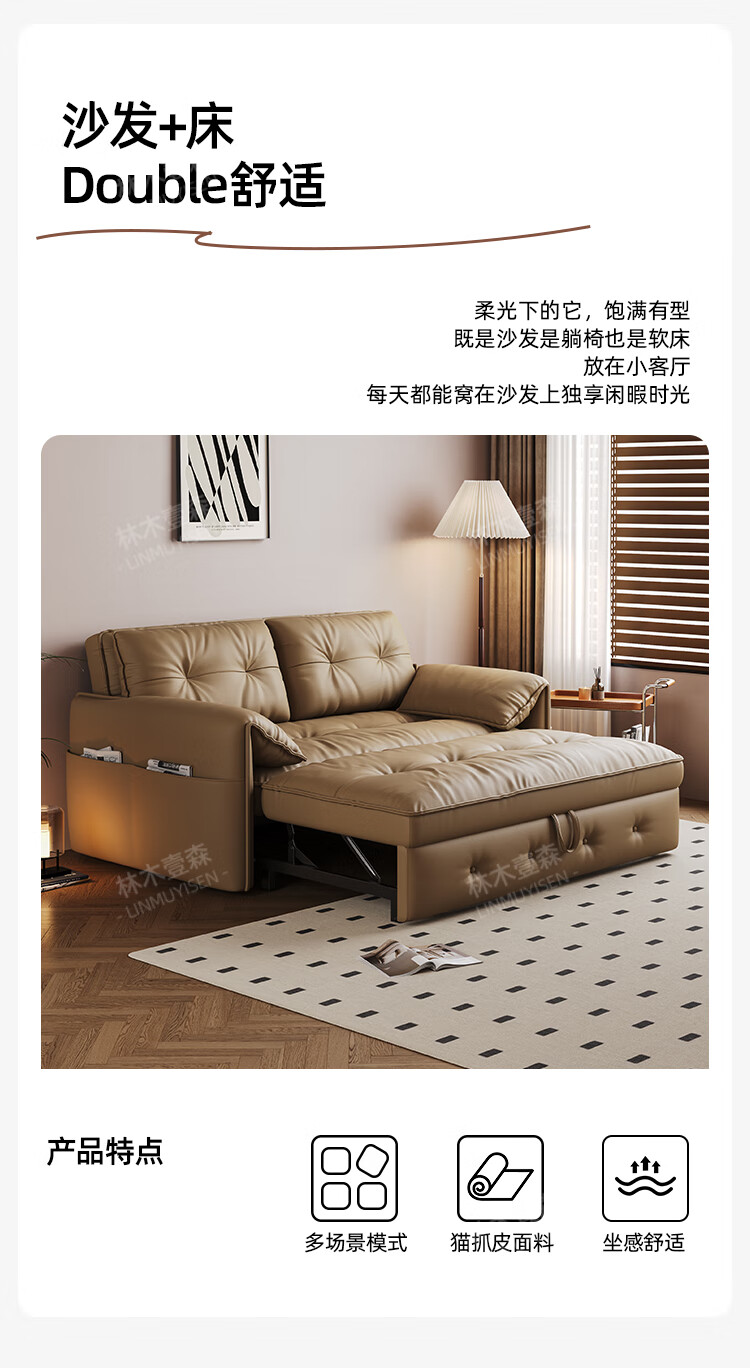 林木壹森大象耳朵沙发床家用坐卧两用小户型客厅卧室新款多功能单双人沙发 外径1.7米 手动款 海绵款+猫抓皮