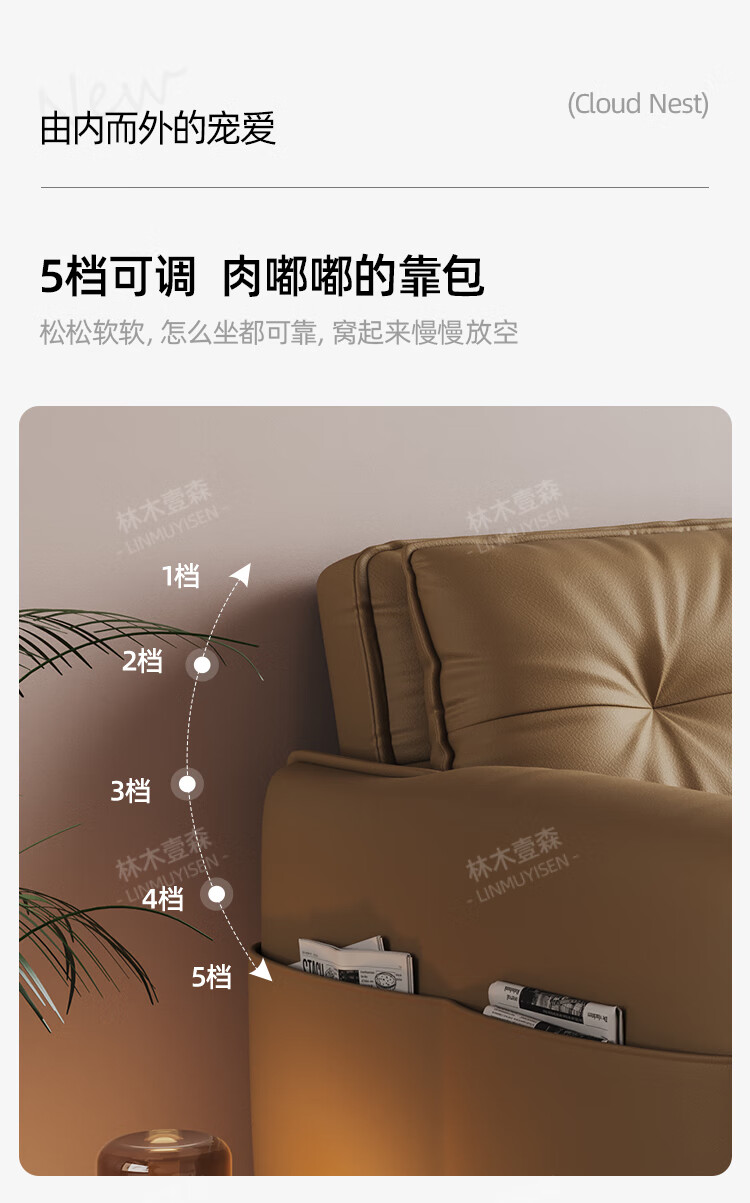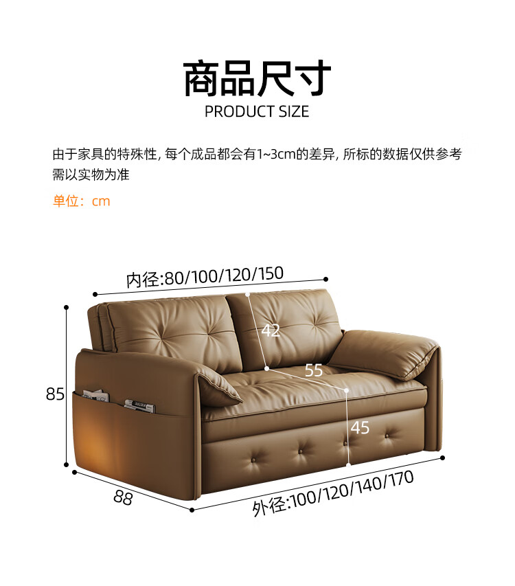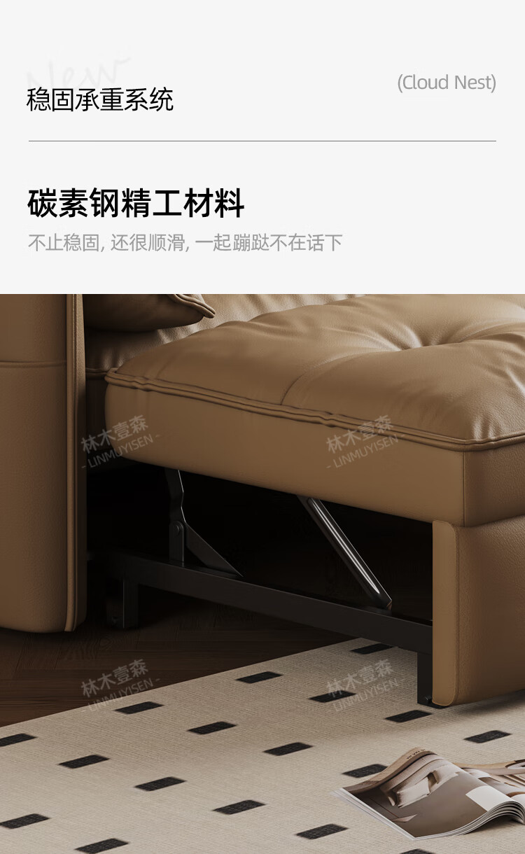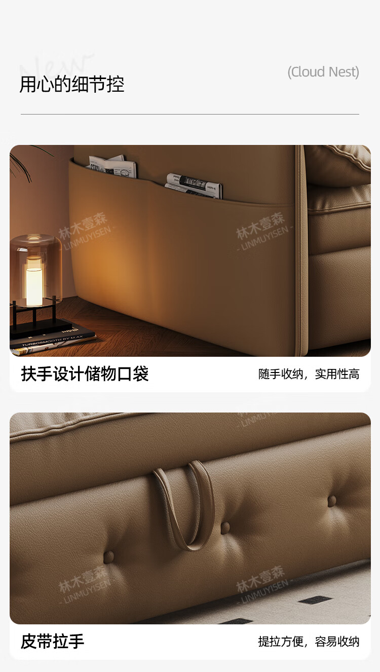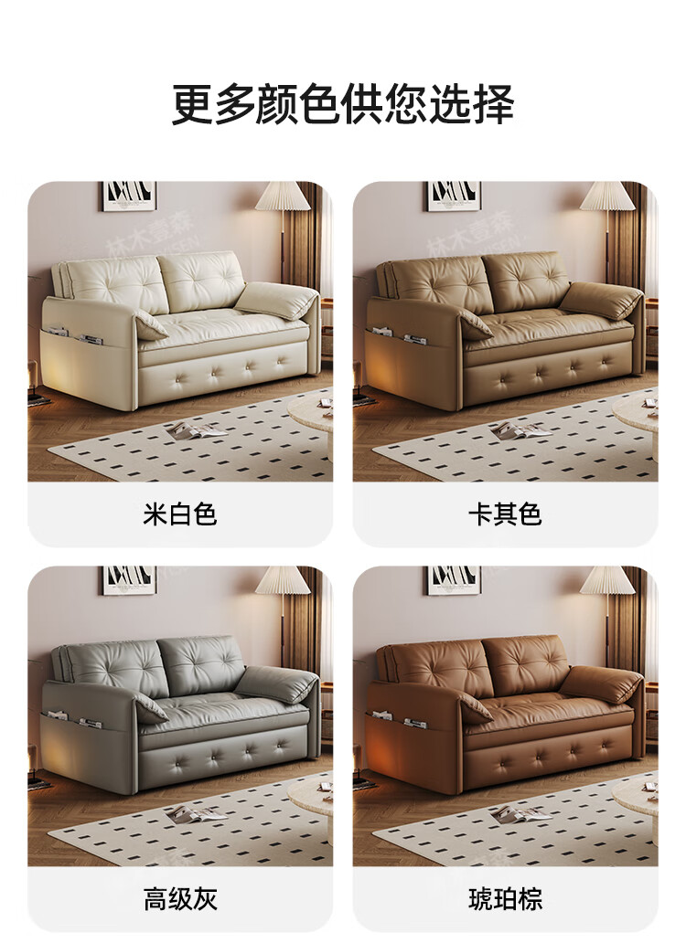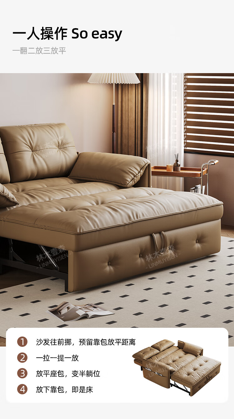 林木壹森大象耳朵沙发床家用坐卧两用小户型客厅卧室新款多功能单双人沙发 外径1.7米 手动款 海绵款+猫抓皮