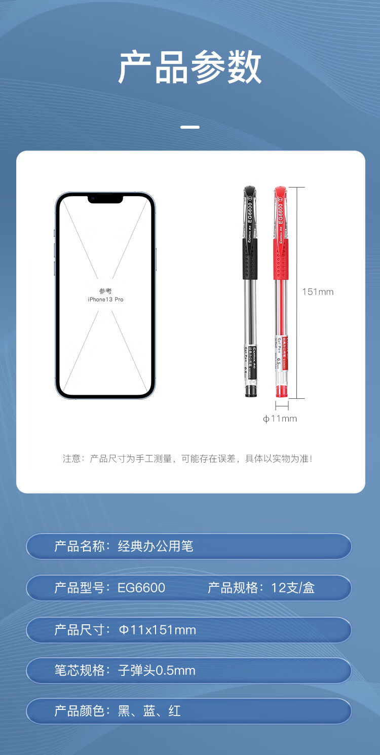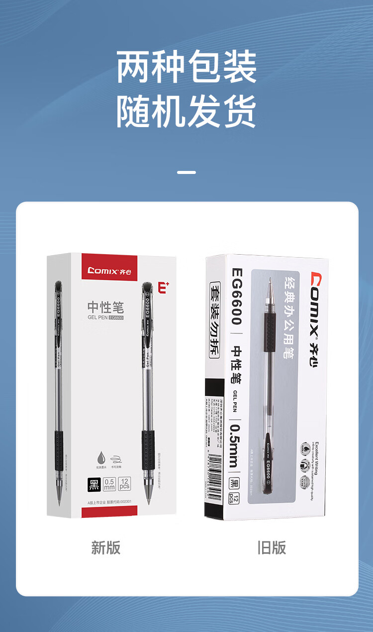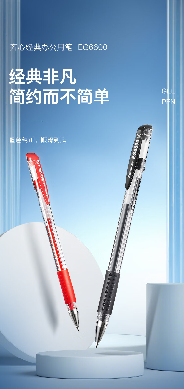 齐心(Comix)【热门商品】经典办公子弹头拔帽中性笔/水笔/0.5mm会议签字笔12支/盒黑色 工具 EG6600