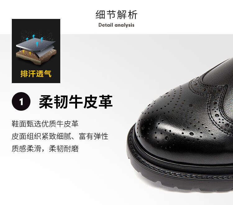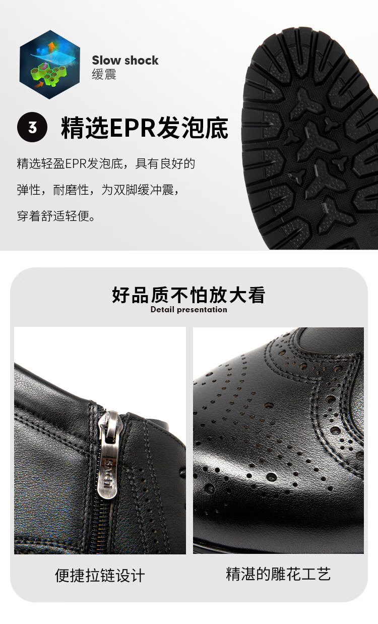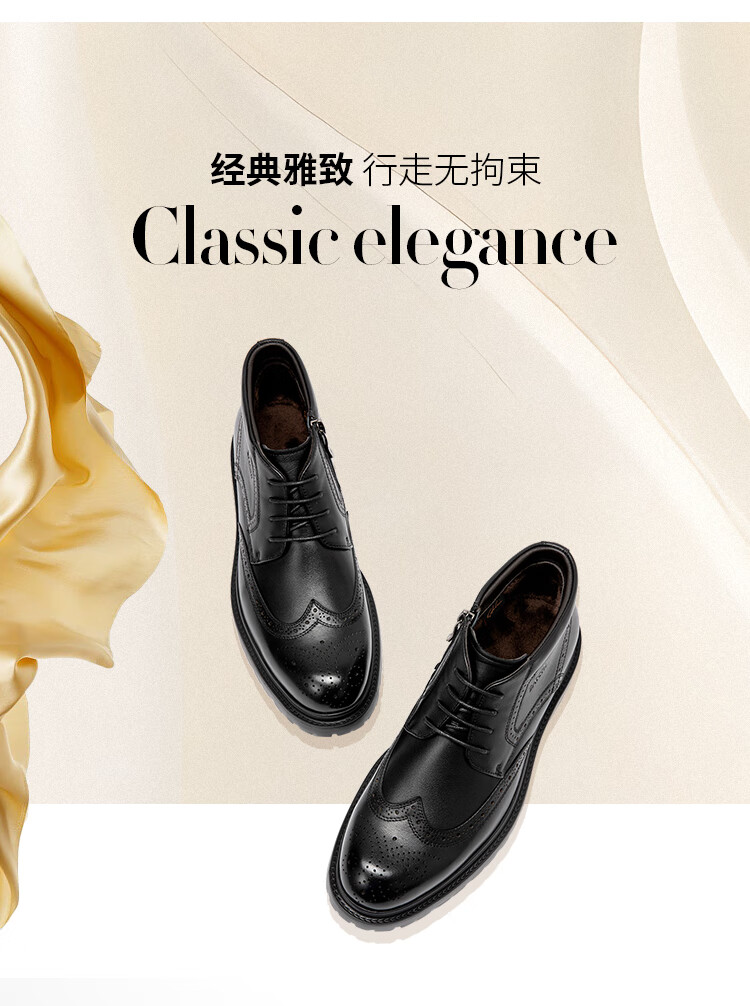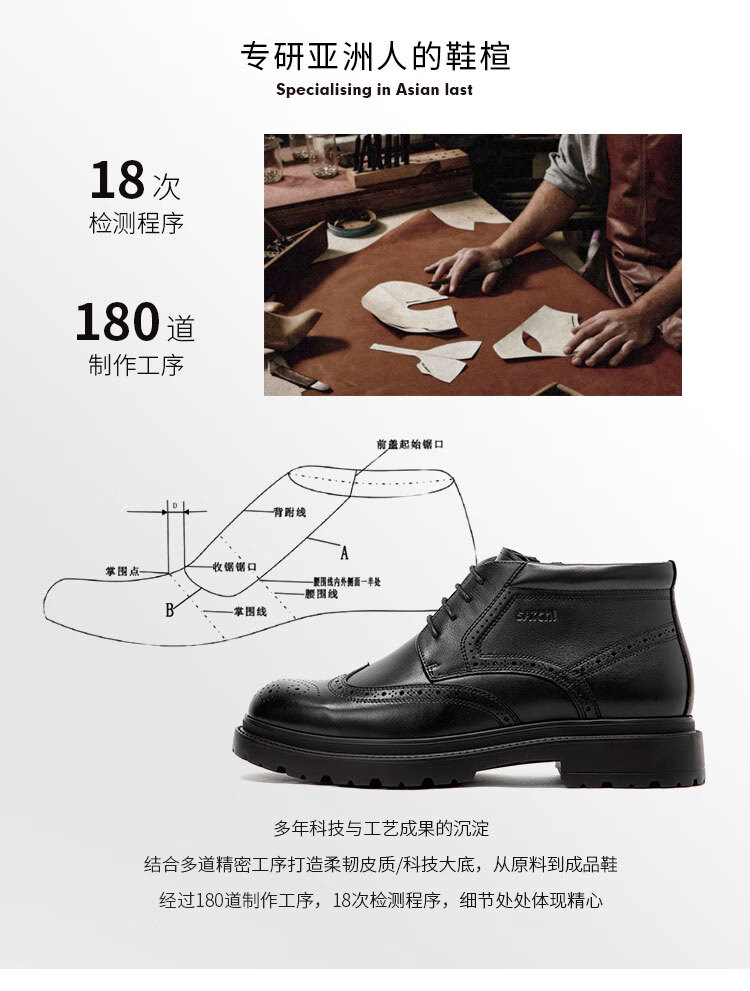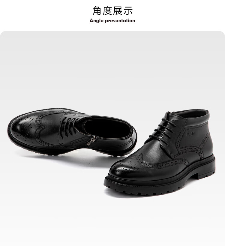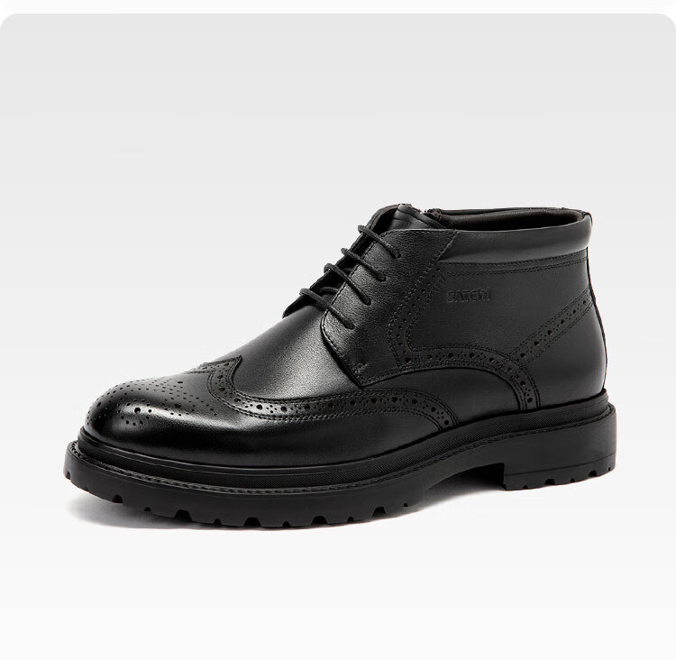 沙驰(SATCHI)男鞋【加绒】牛皮帅气商务皮靴英伦布洛克雕花冬季保暖防寒棉鞋 黑色(49VKF4153) 41 欧码(选小一码)