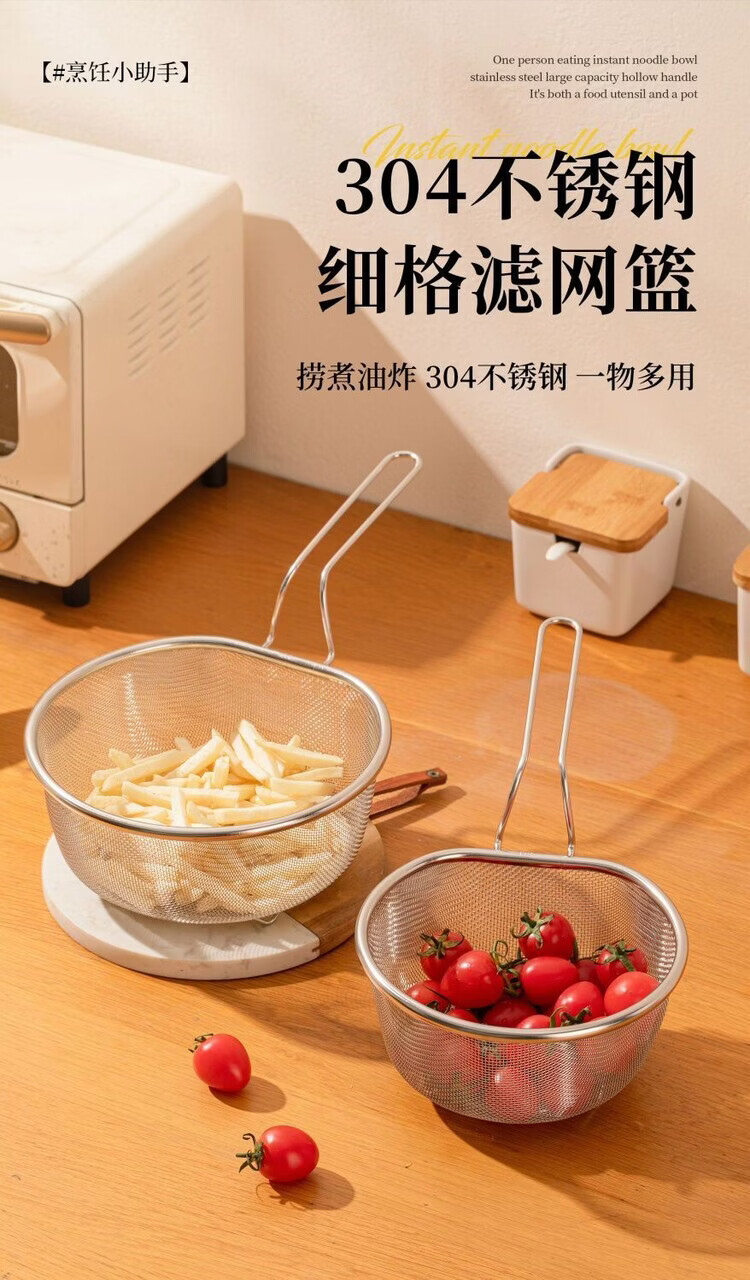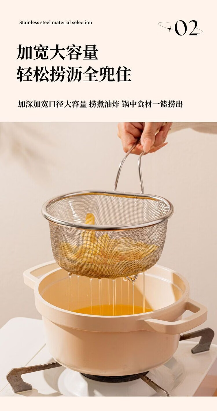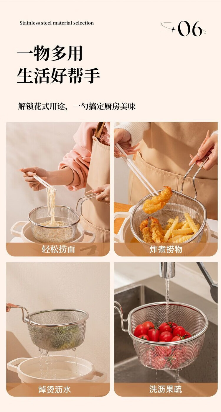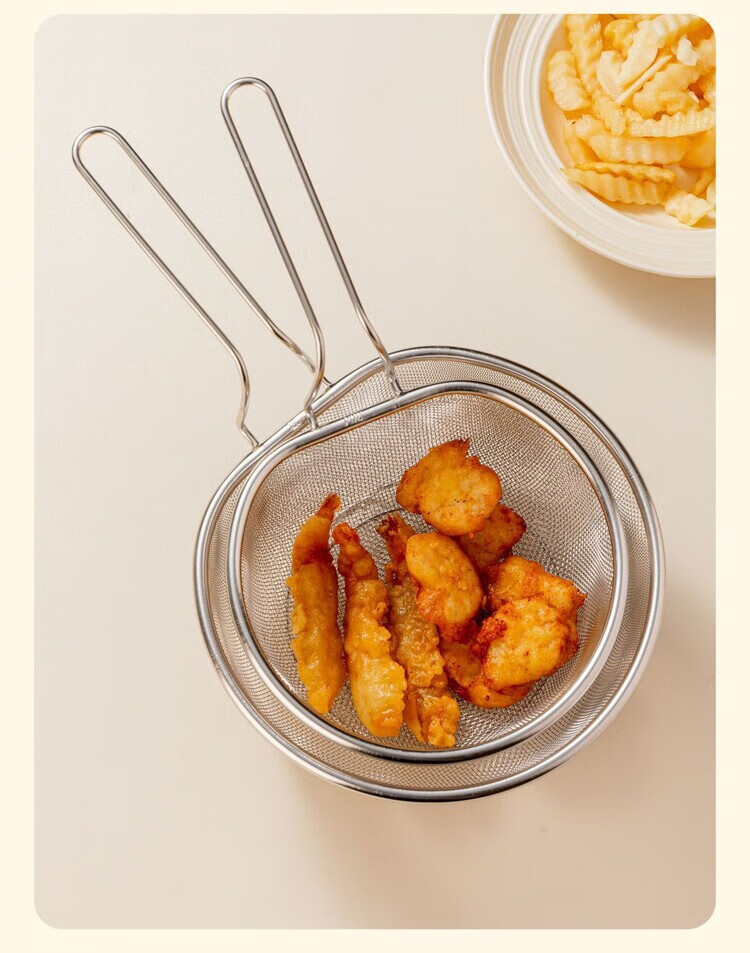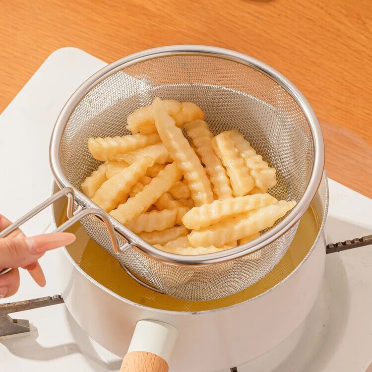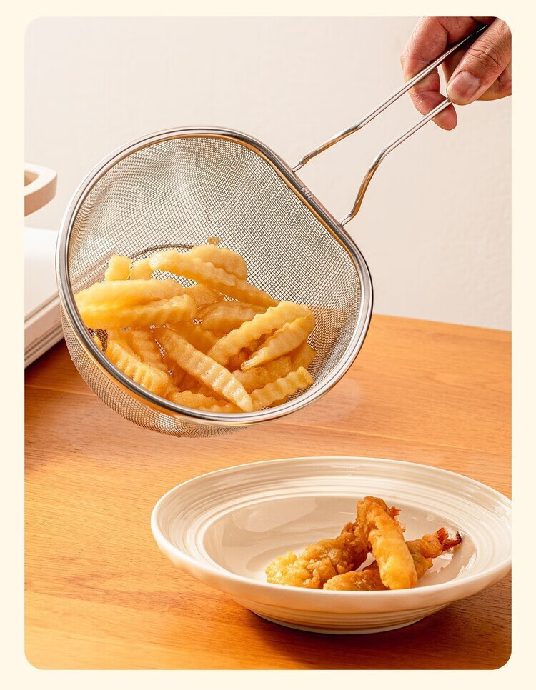 简漾油炸捞面勺304不锈钢漏勺细网厨房家用网筛火锅漏勺耐用 【带手柄防烫】细网漏勺