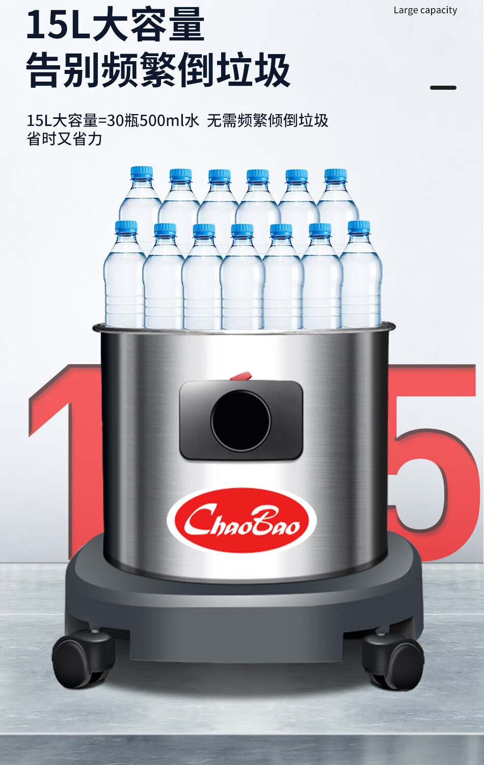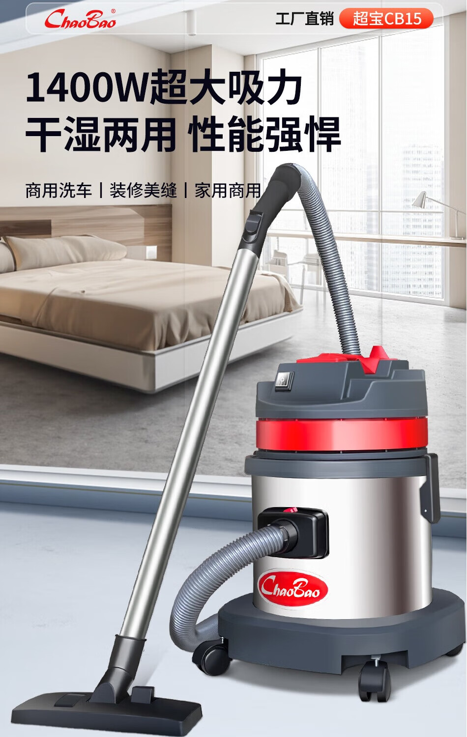 白云超宝清洁15升小型商用吸尘器强力大功率1400W装修美缝开荒大吸力汽车店干湿两用吸水机器CB15 超宝CB15官标配【7配件】