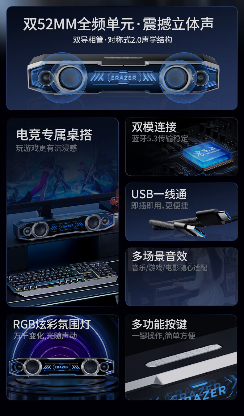 联想生态品牌异能者有线深渊灯光音响桌面蓝牙音箱隐藏麦台式机笔记本游戏三角洲行动电竞低音炮礼物