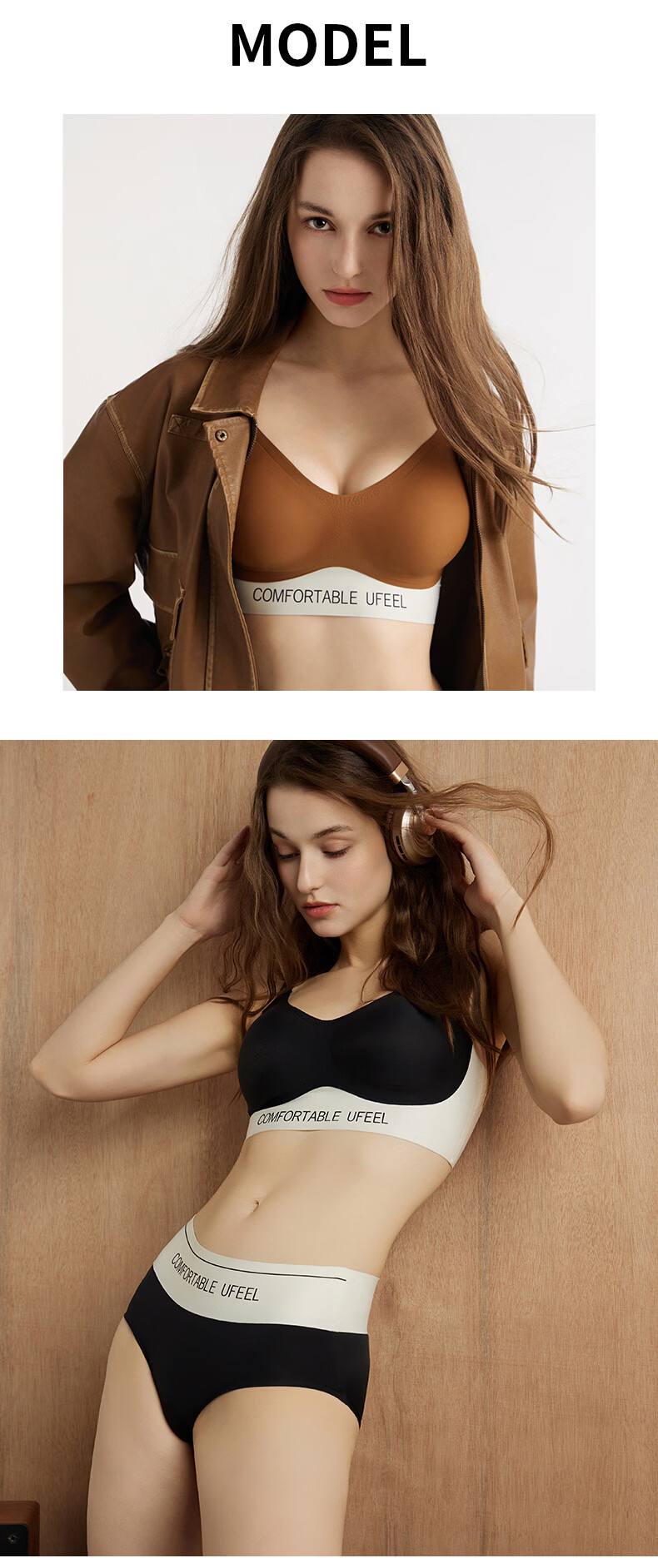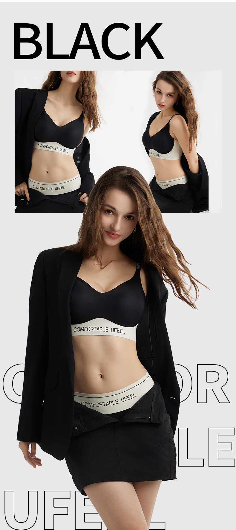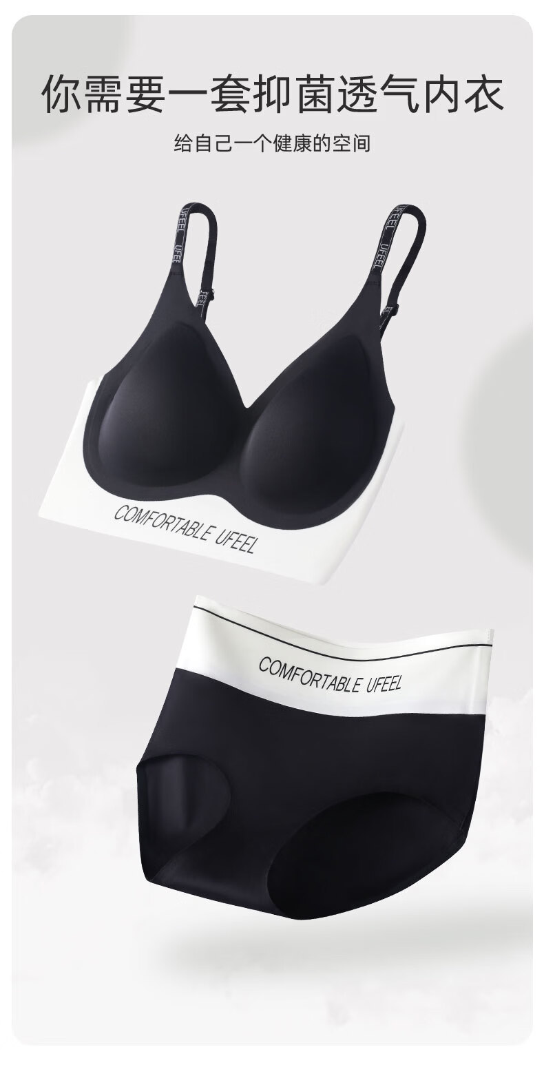 UFEEL【破价清仓】内衣女士无痕透气摩登系运动内衣显瘦无钢圈文胸8668 黑白色颜色随机 M 80-100斤
