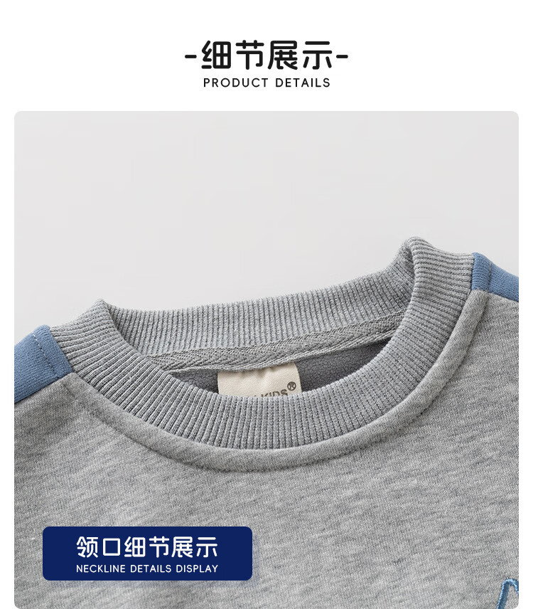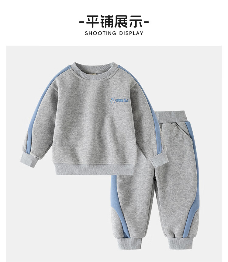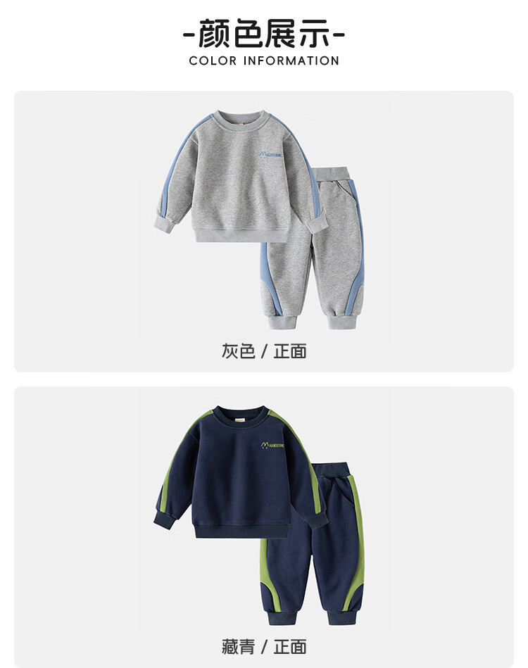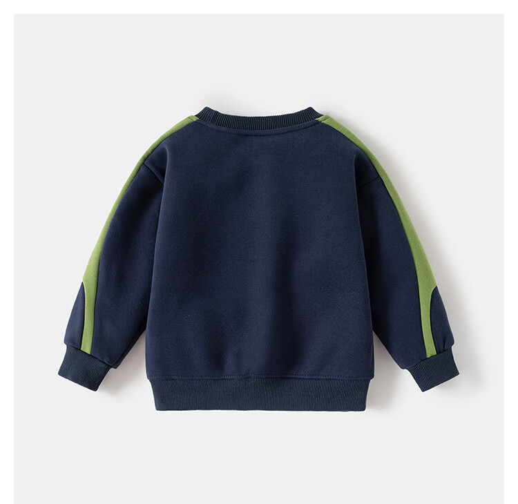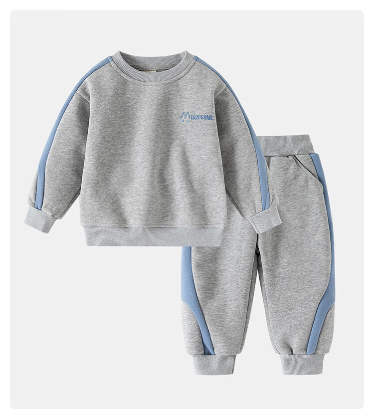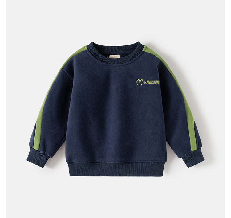 WELLKIDS男童2025新款儿童韩版运动加绒套装中小童宽松卫衣休闲长裤两件套 藏青 90