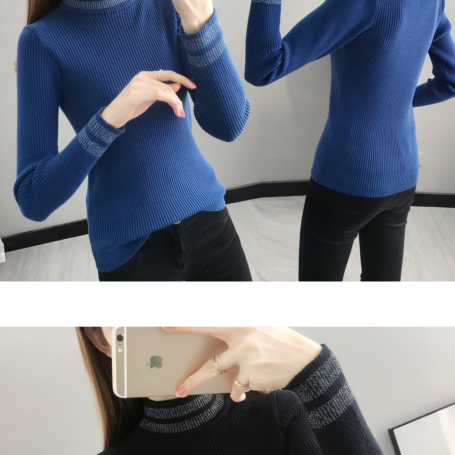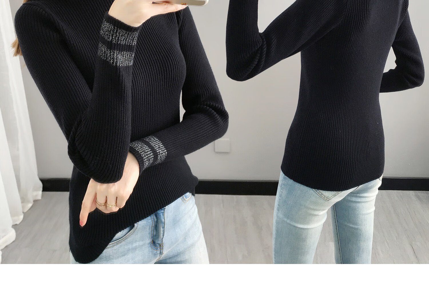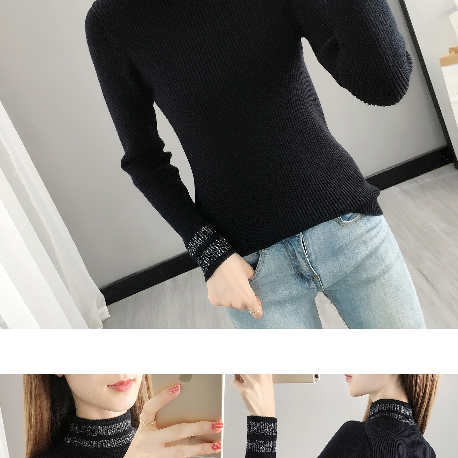 香影纯黑色打底衫女秋冬新款亮丝针织衫长袖内搭上衣修身短款半高领毛衣 黑色 3XL (建议135-150斤)