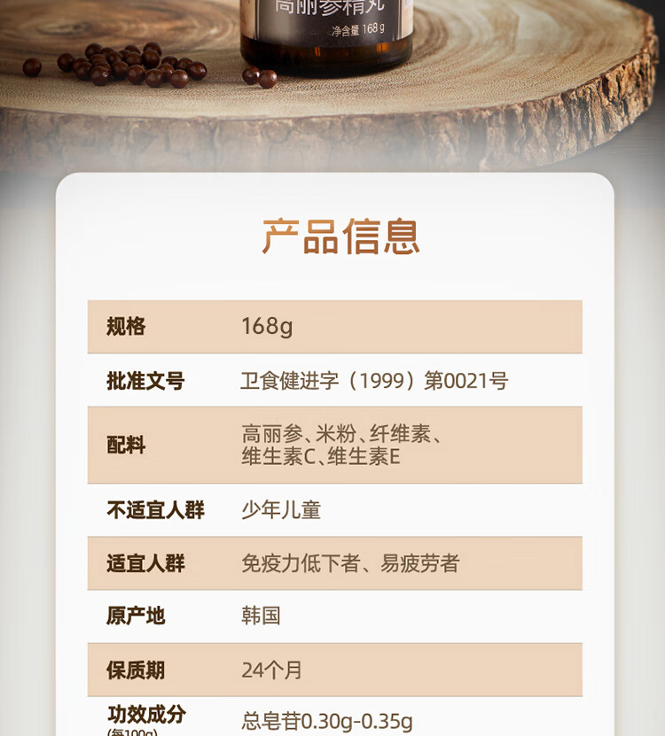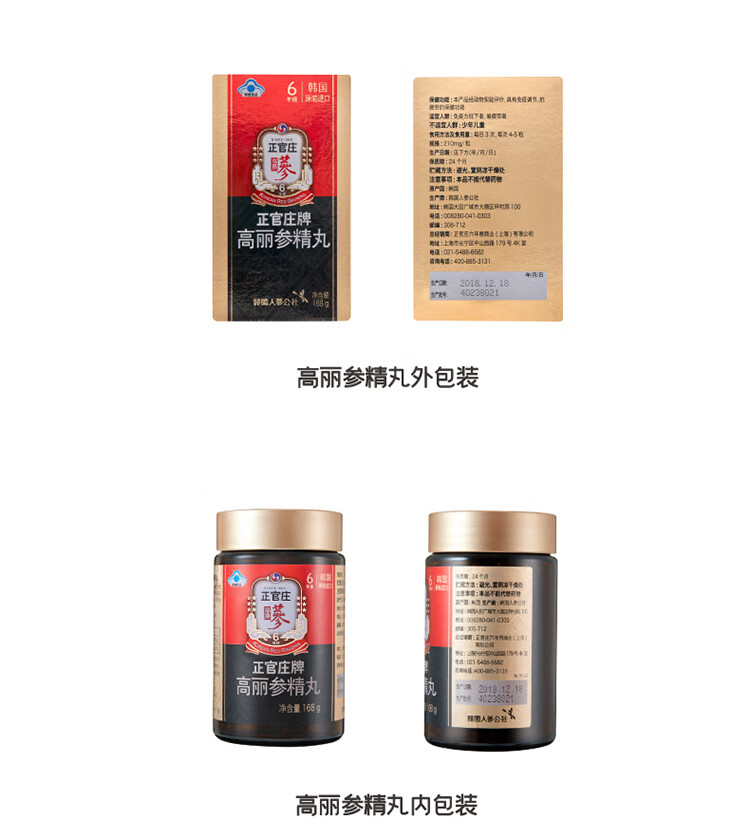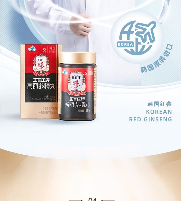 正官庄人参高丽参精丸168g 保健食品 免疫调节原装进口 168g