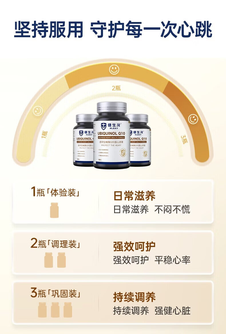 健生湾Hlbay泛醇还原型辅酶Q10胶囊 老人护心丸中老年保护心脏保健品 【效期26年7月】50mg* 180粒*1瓶