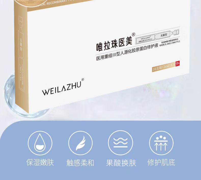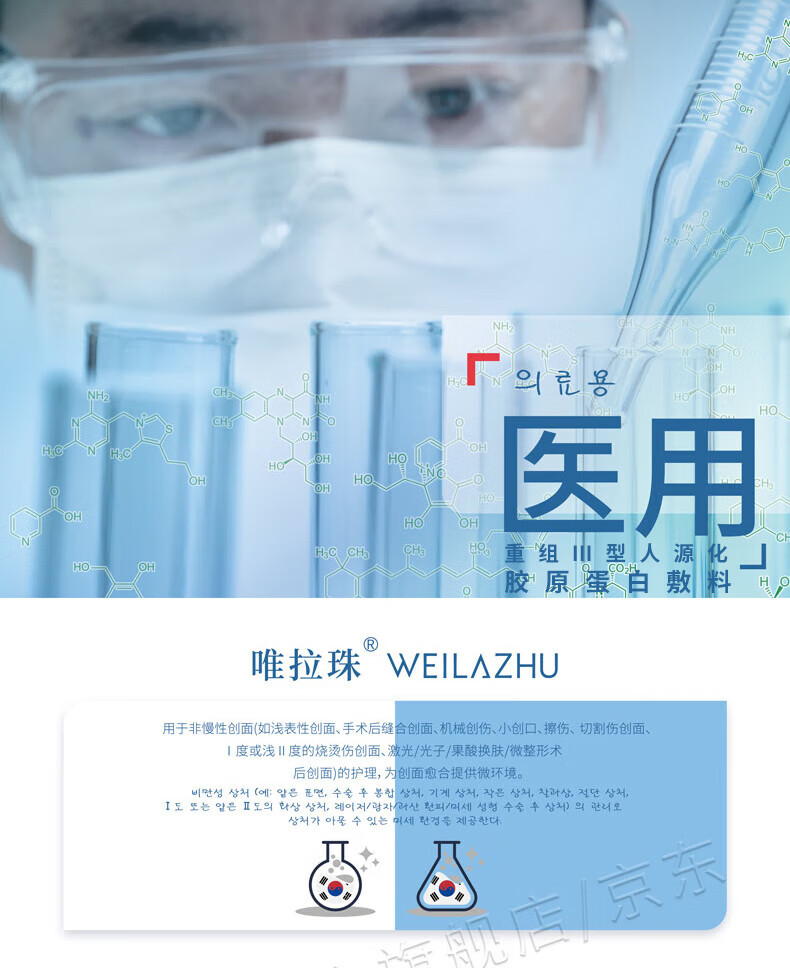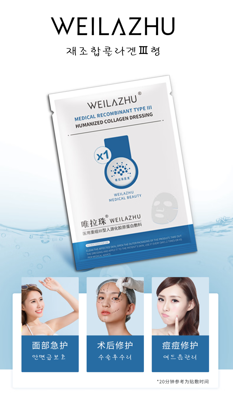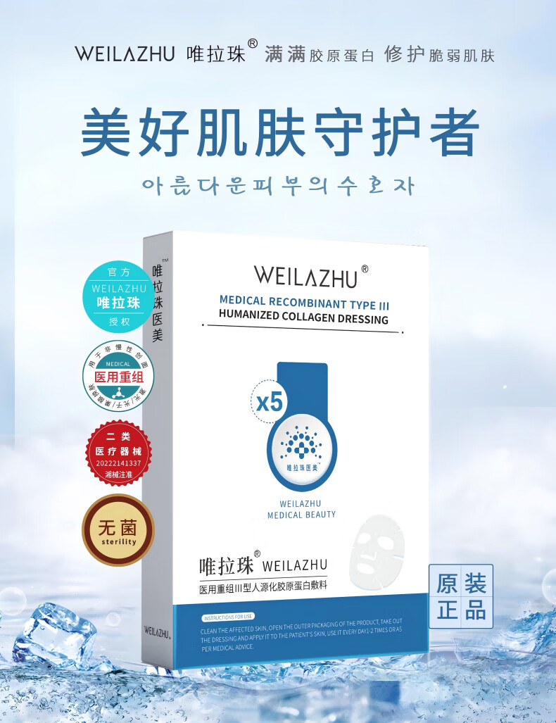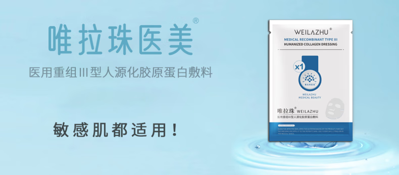 唯拉珠重组医用次抛型胶原蛋白激光术后修复敏感肌保湿补水面械膜字号 胶原蛋白敷料二盒(10片面膜状)