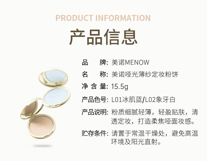 美诺粉饼蜜粉饼定妆粉干皮控油持久养肤散粉大白饼 L01冰肌蓝15.5g