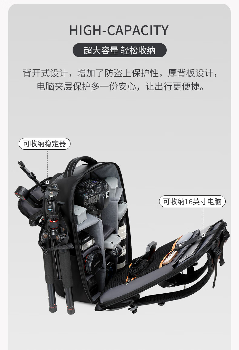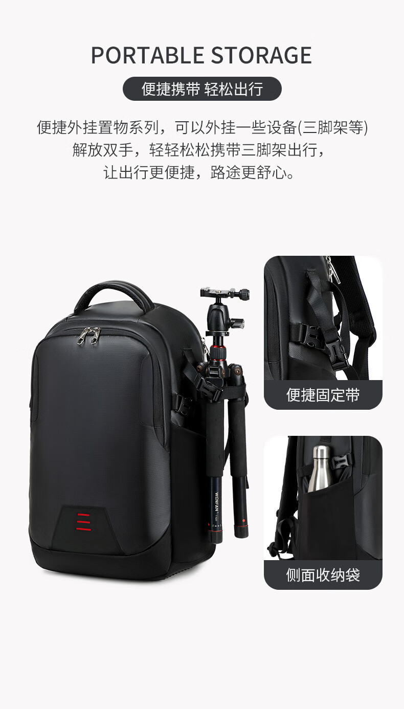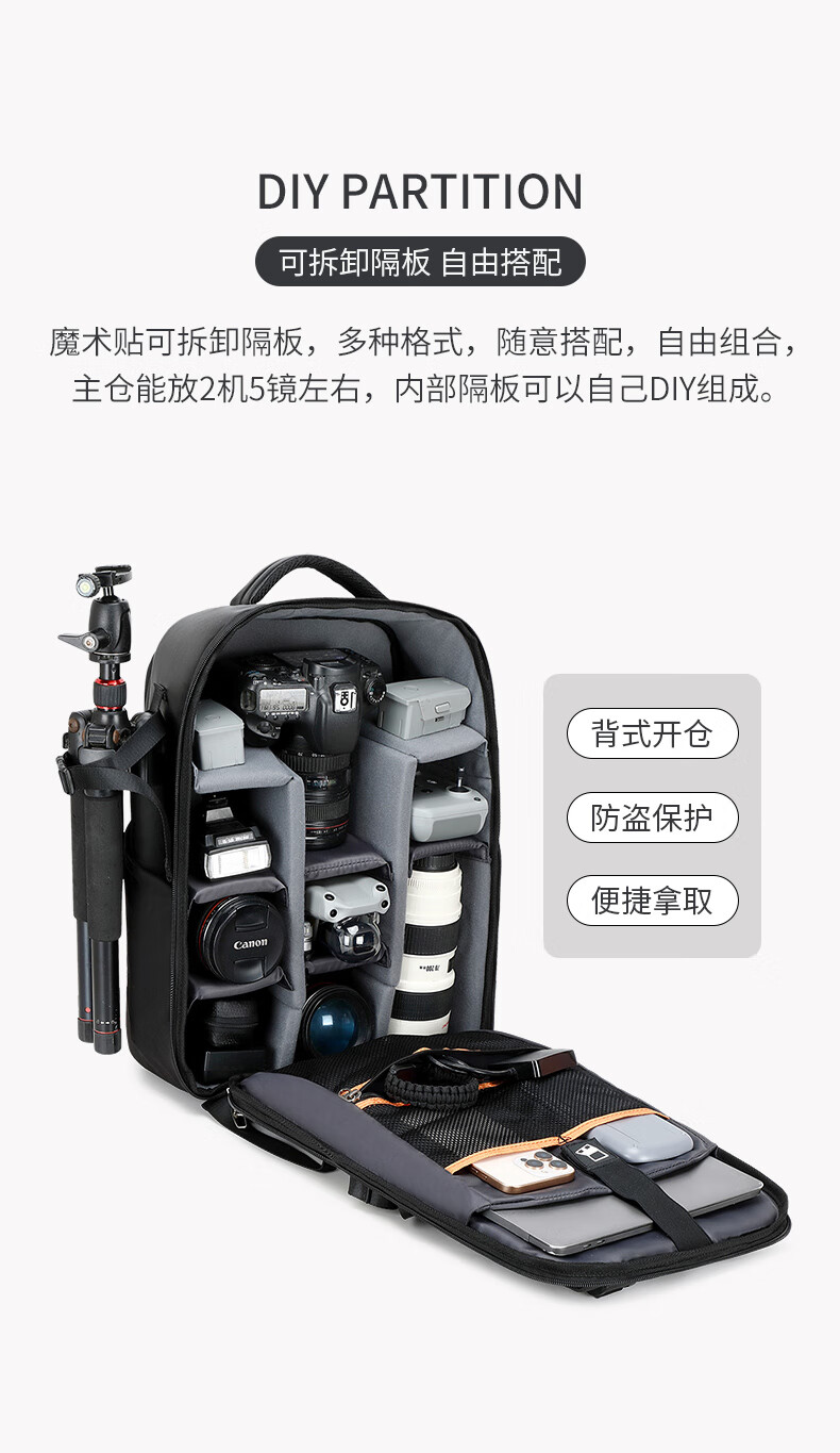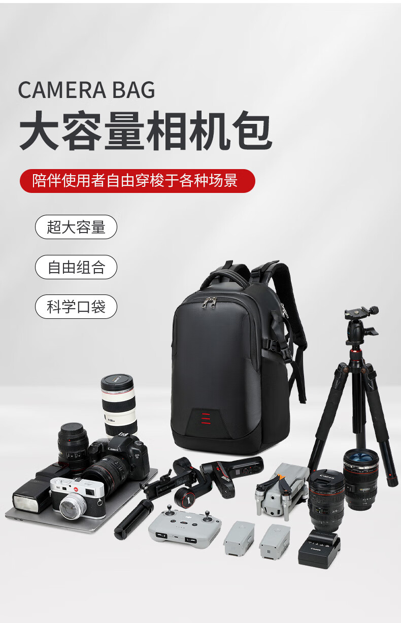 双肩多功能摄影包防水大容量专业单反相机包稳定器电脑无人机背包 黑色