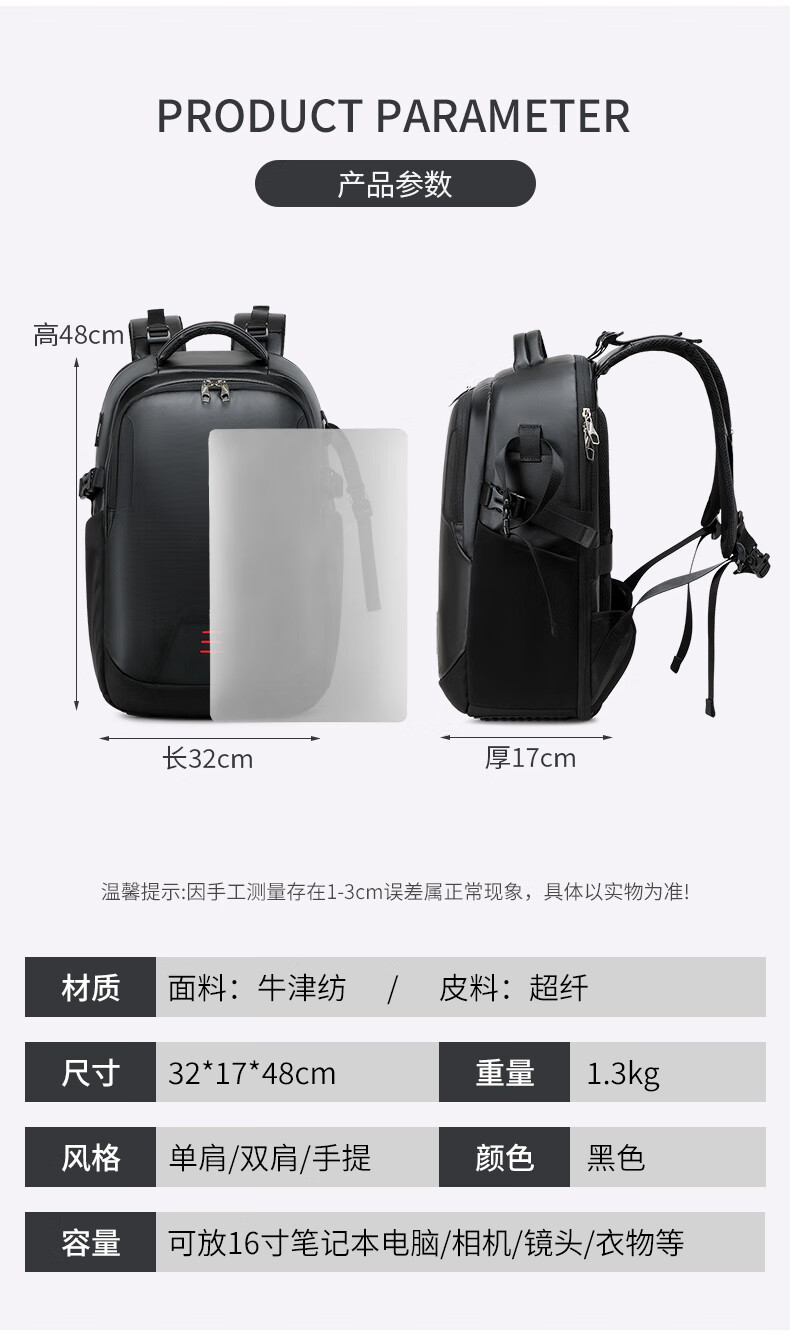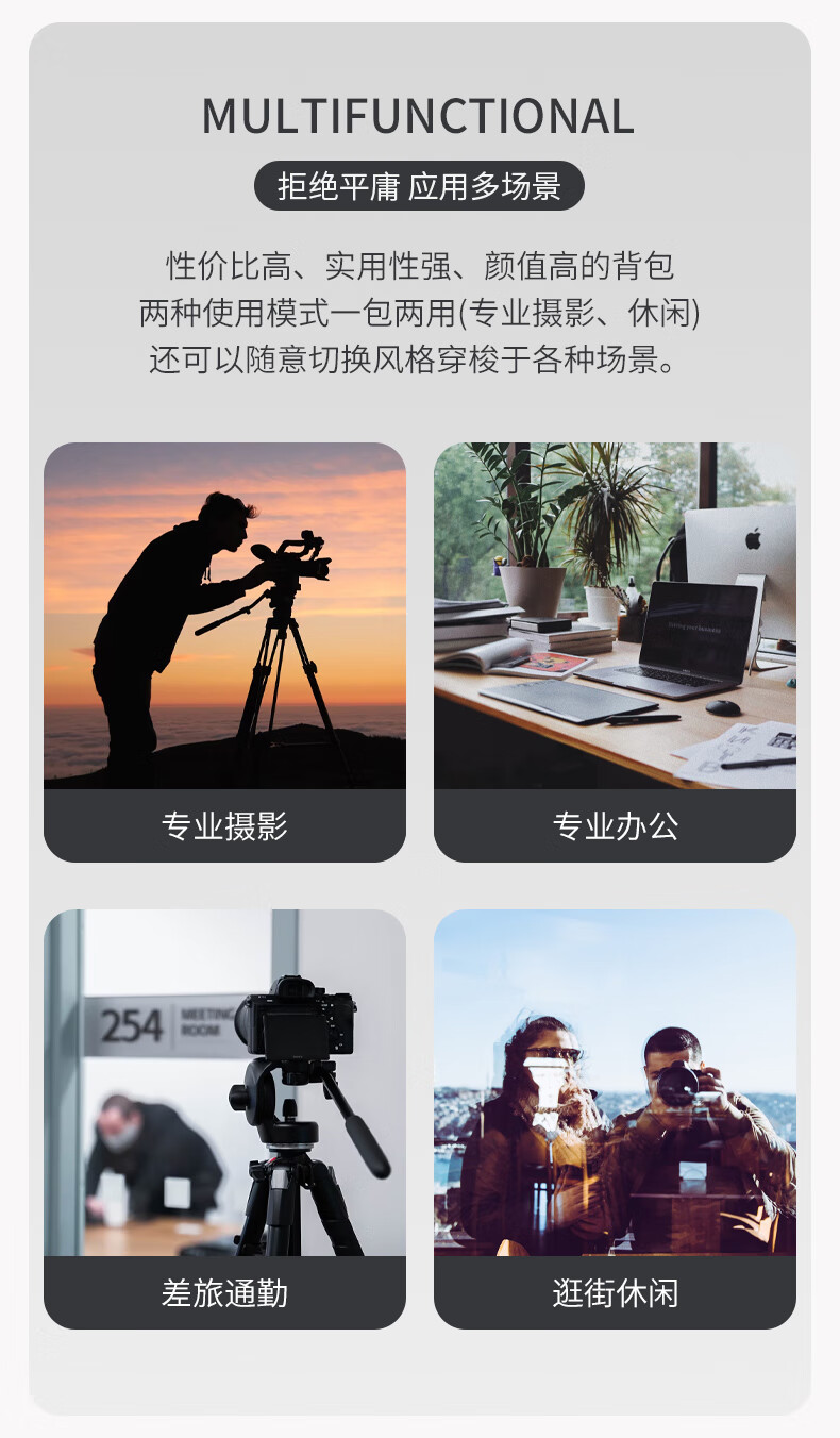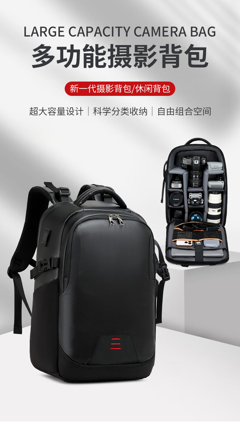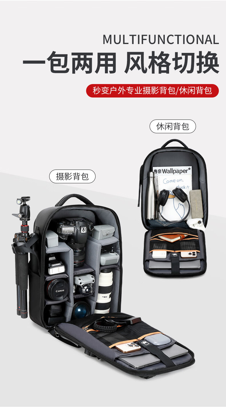 双肩多功能摄影包防水大容量专业单反相机包稳定器电脑无人机背包 黑色