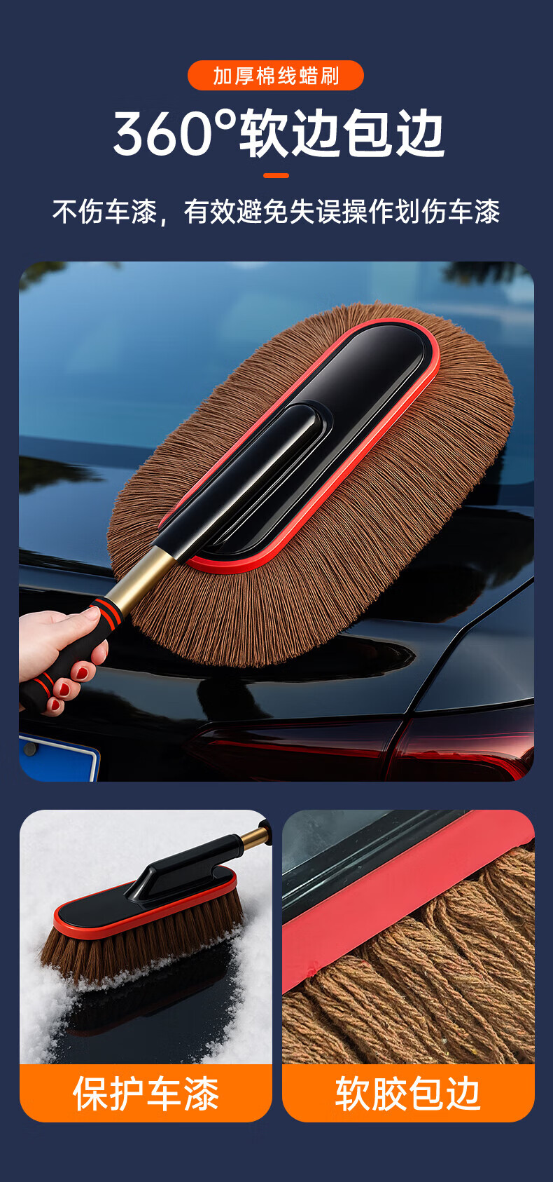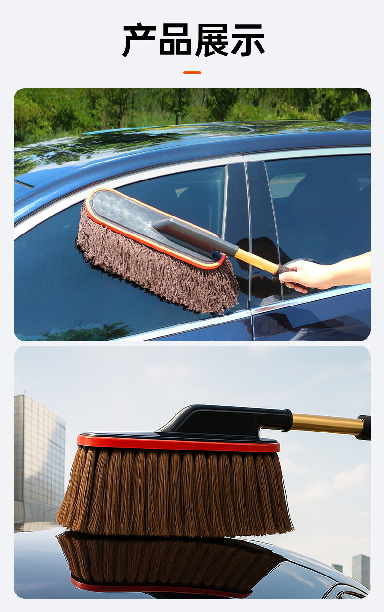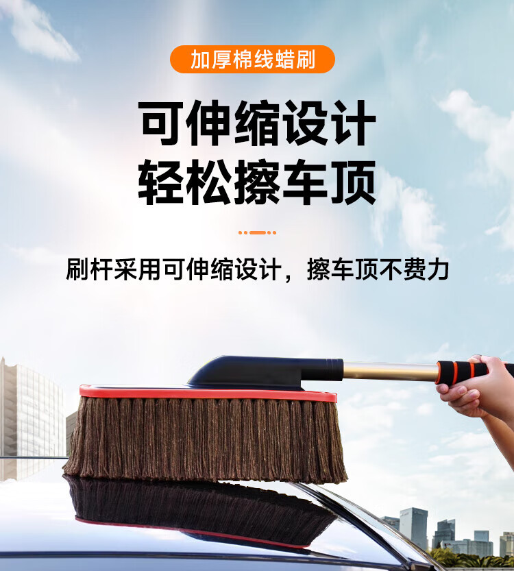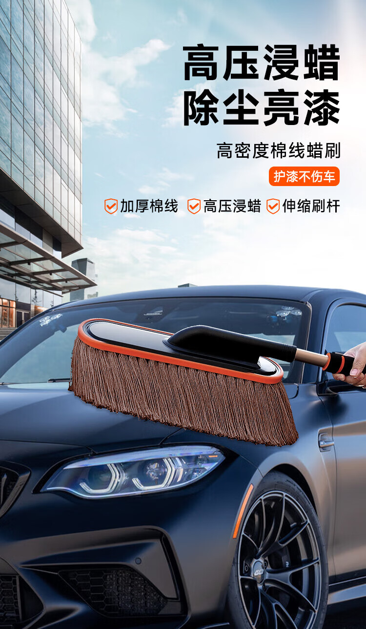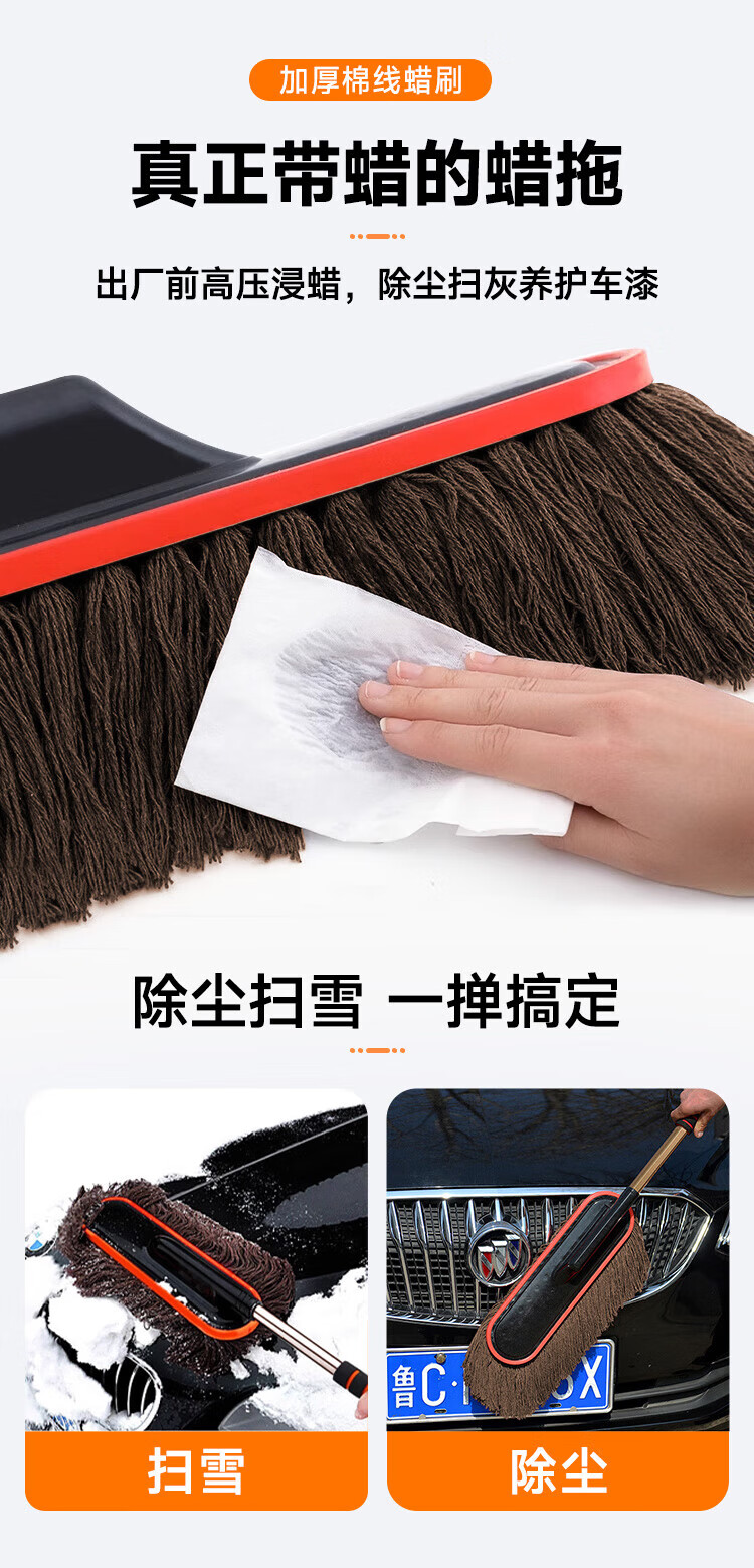 飒望德国汽车除尘掸子蜡拖扫灰尘刷车蜡刷棉线蜡拖不伤漆带收纳盒家用 【养护三件套】伸缩拖把+刷箱+掸子蜡