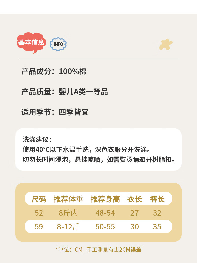 wua·wua【孕妈有礼】新生儿衣服半背衣开裆裤套装婴儿衣服0-1-3月分体52 童趣屋半背衣两件(四季款) 59 (建议1-3月 8-12斤)