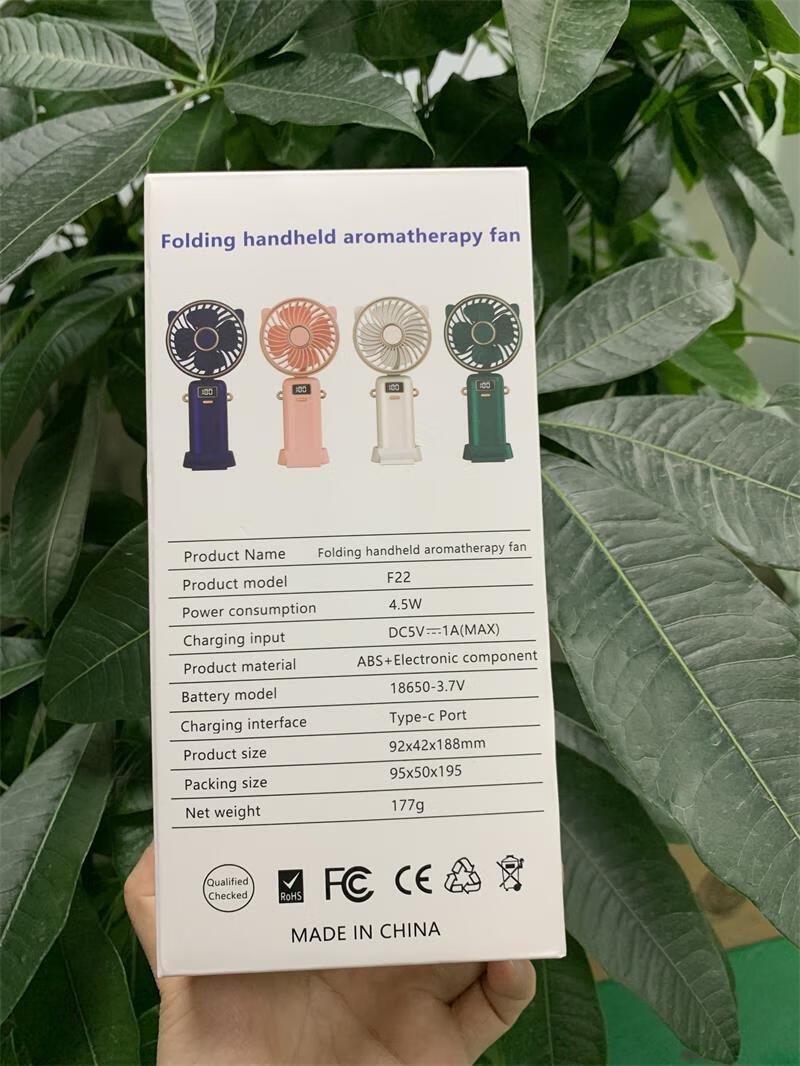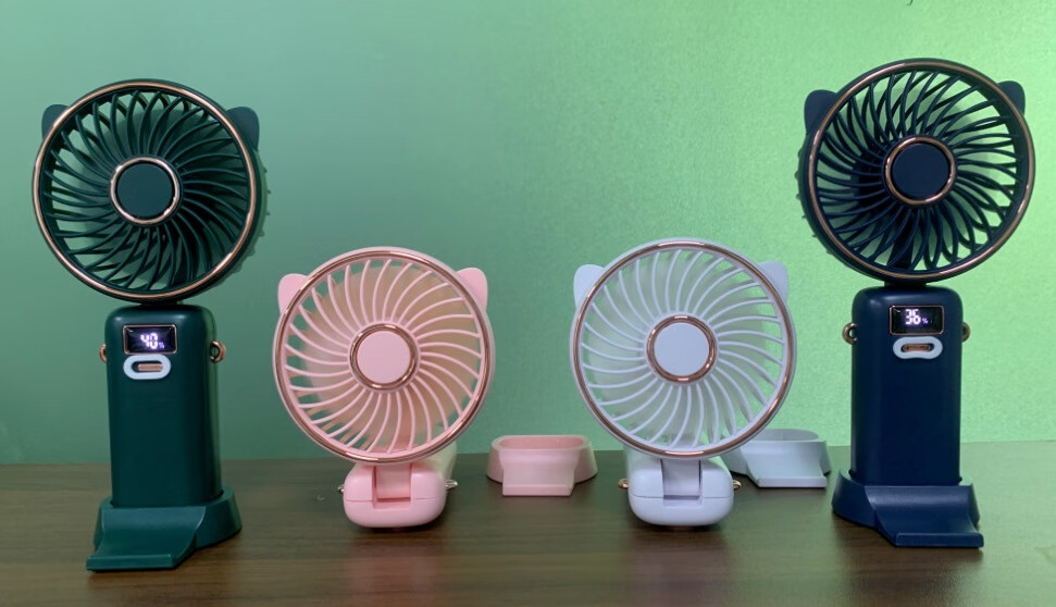 【优选好物】手持小电风扇迷你USB数显长续航轻音学生便携挂脖折 折叠香薰小风扇-白色 标配版5叶3寸