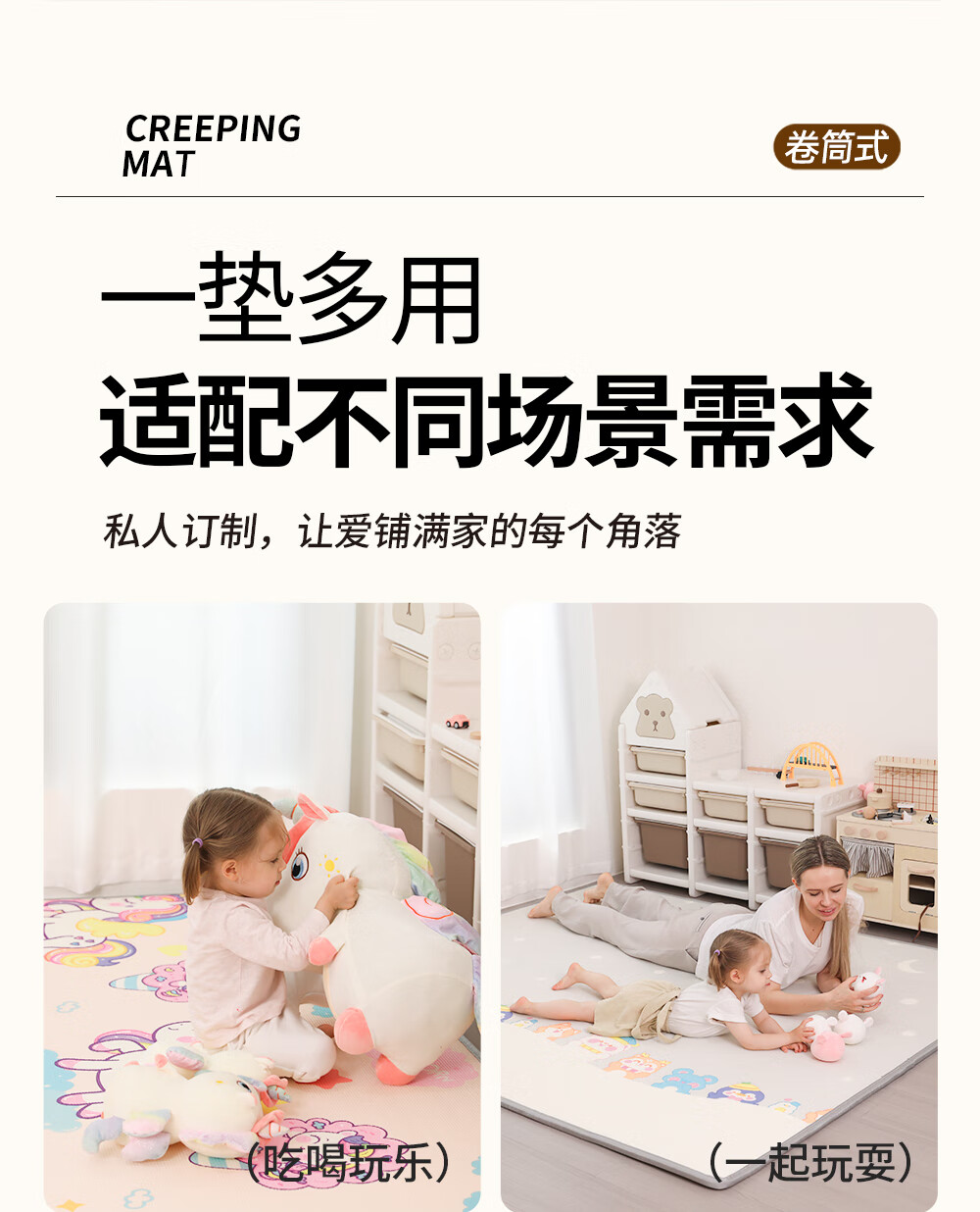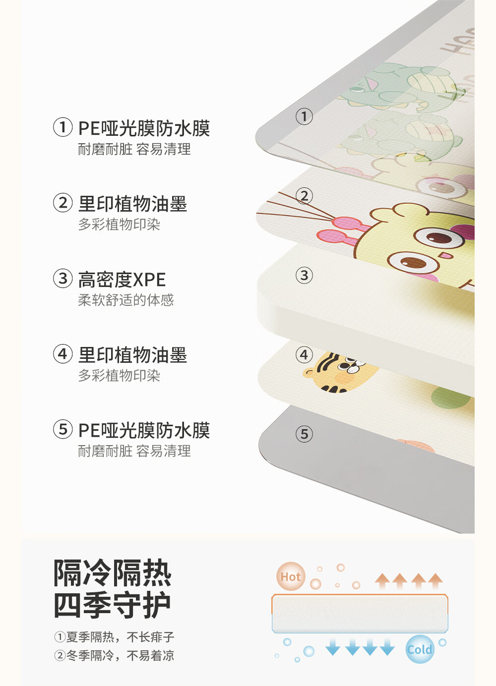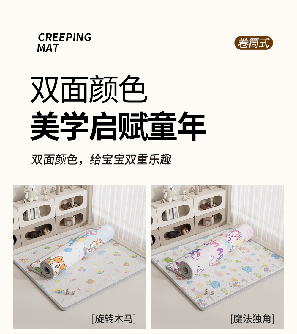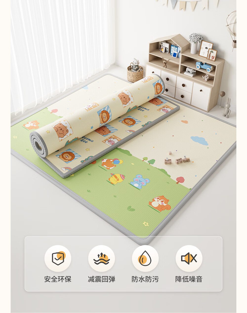 【精选好物】爬爬垫加厚家用无毒无味宝宝儿童防摔地垫PE爬行垫子 防摔无味【180*200cm】厚1.5cm 【双面PE】随机图案发货【3C认证】