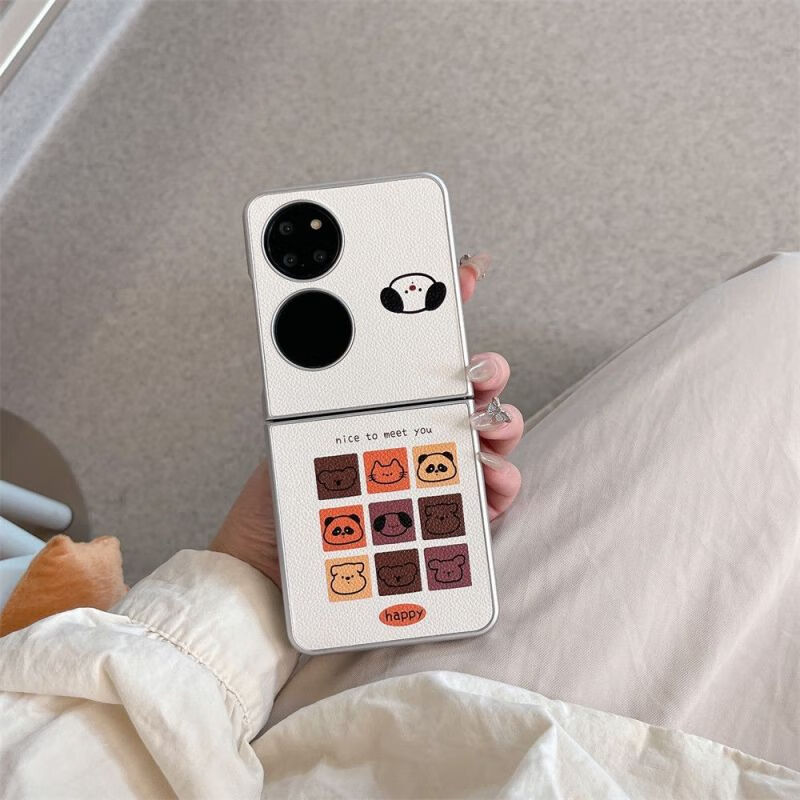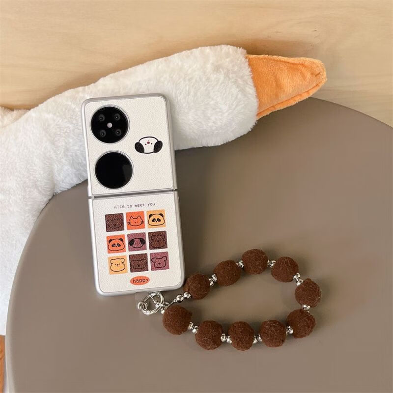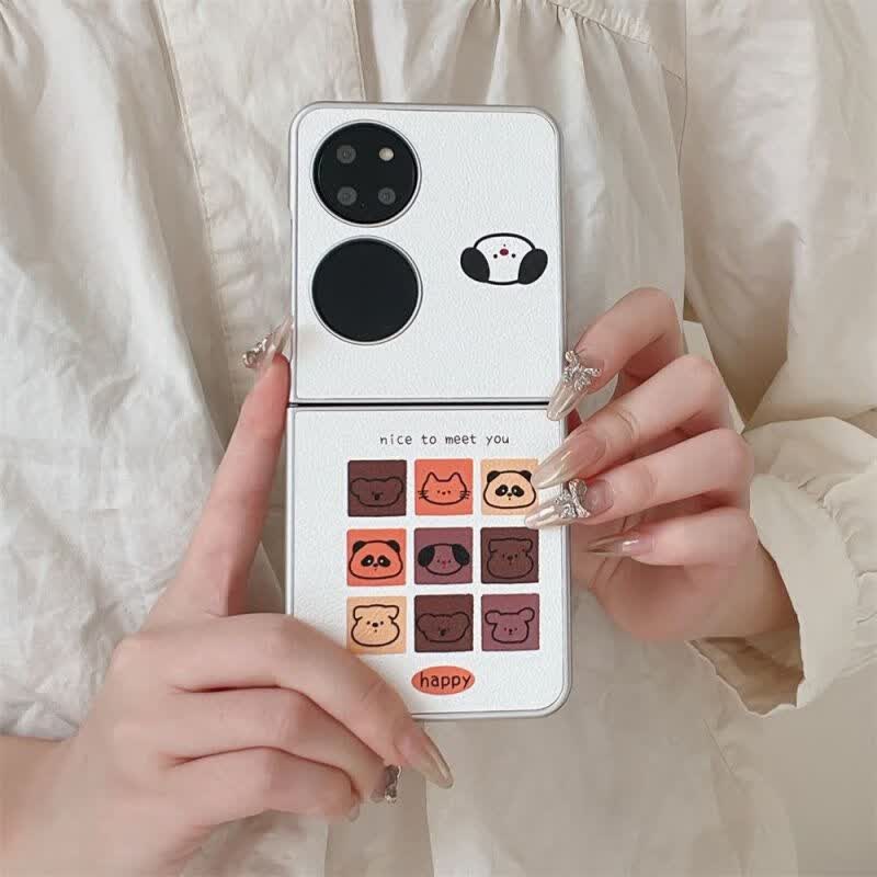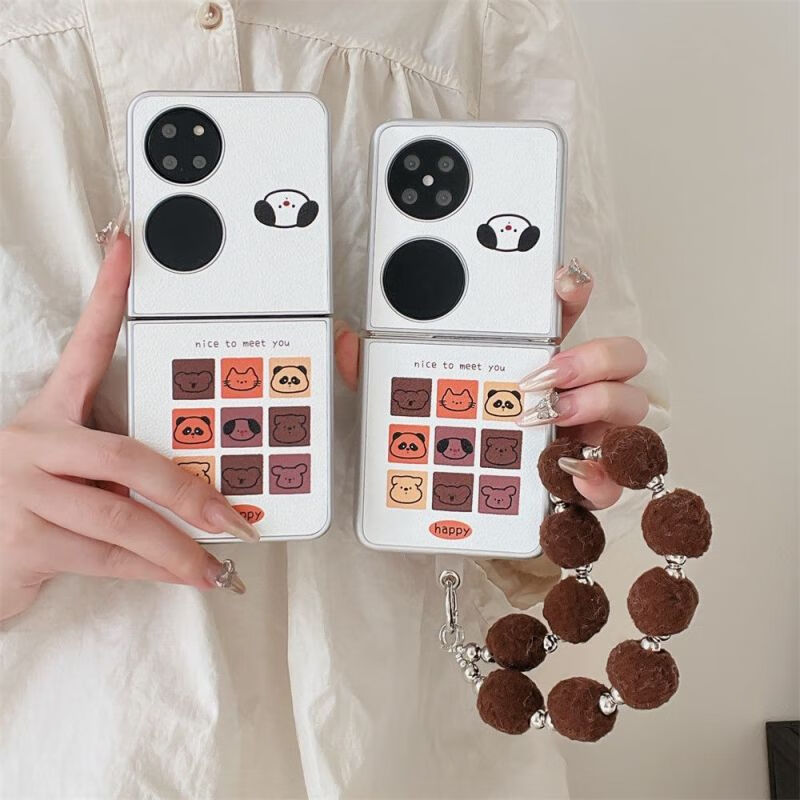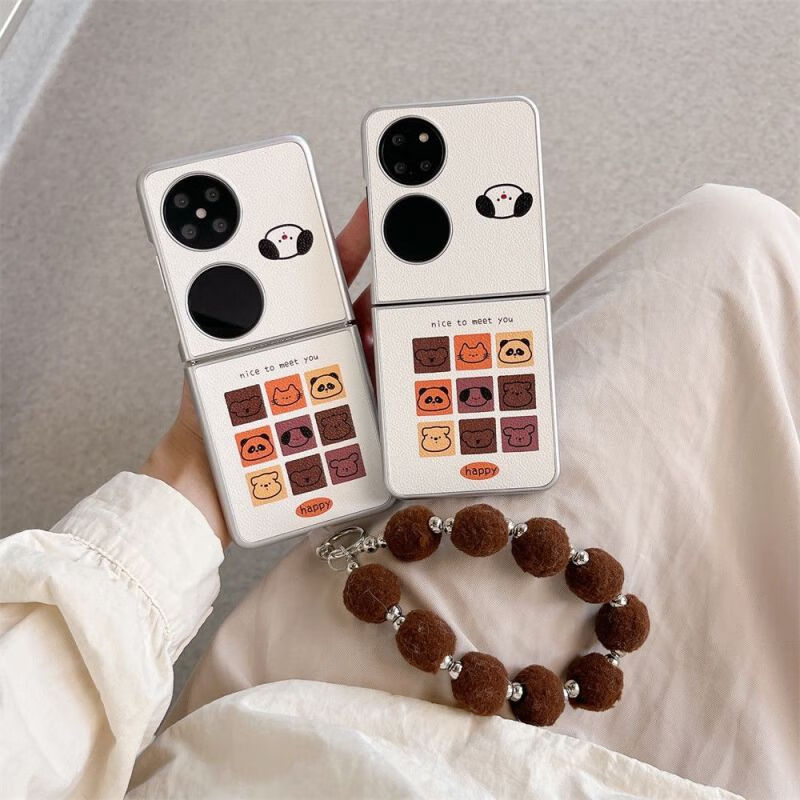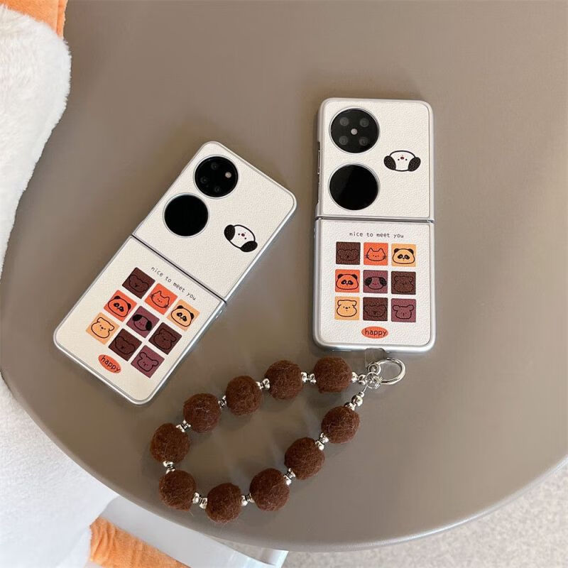 Hnew适用于华为pocket2手机壳新款ins可爱皮纹九宫格小动物P50 Pocket折叠宝盒保护套全包防摔女高级感 手绳款【九宫格小动物 白色皮纹】轻奢肤感 华为Pocket2